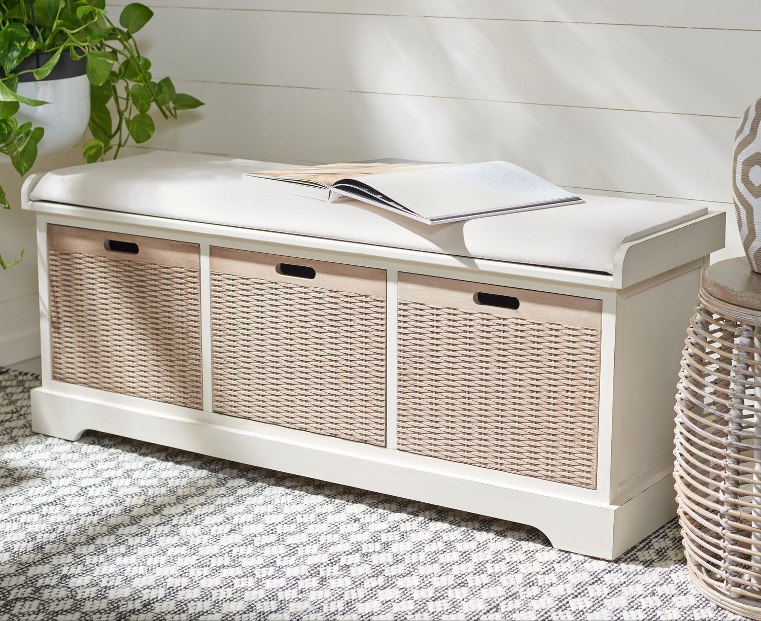 Le banc de rangement à trois tiroirs est un meuble pratique qui allie rangement et assise. Polyvalent et soigneusement conçu, il optimise l'espace dans n'importe quelle pièce tout en apportant une touche d'élégance moderne à votre décoration. Il est idéal pour ranger vos accessoires dans une entrée, une chambre ou un bureau.