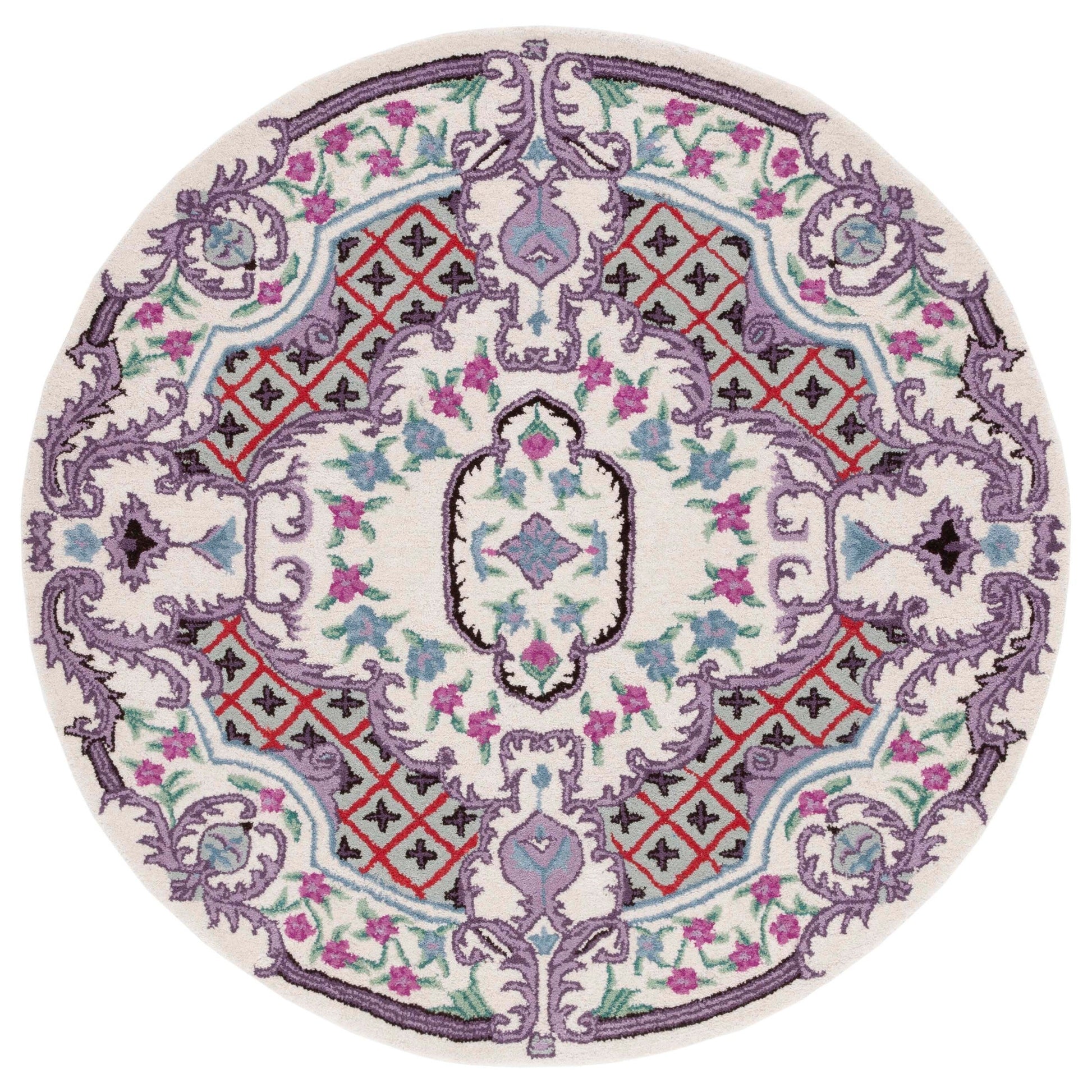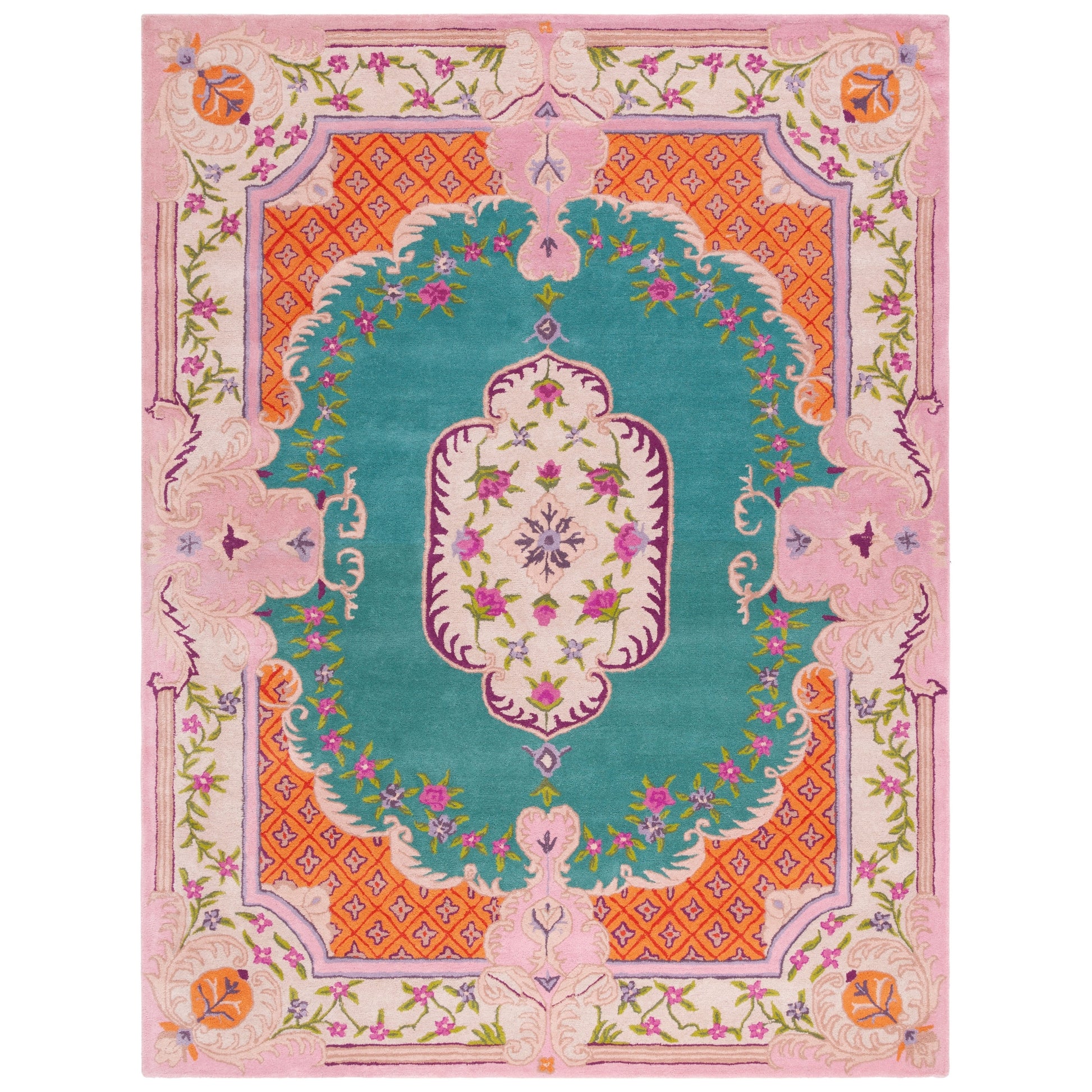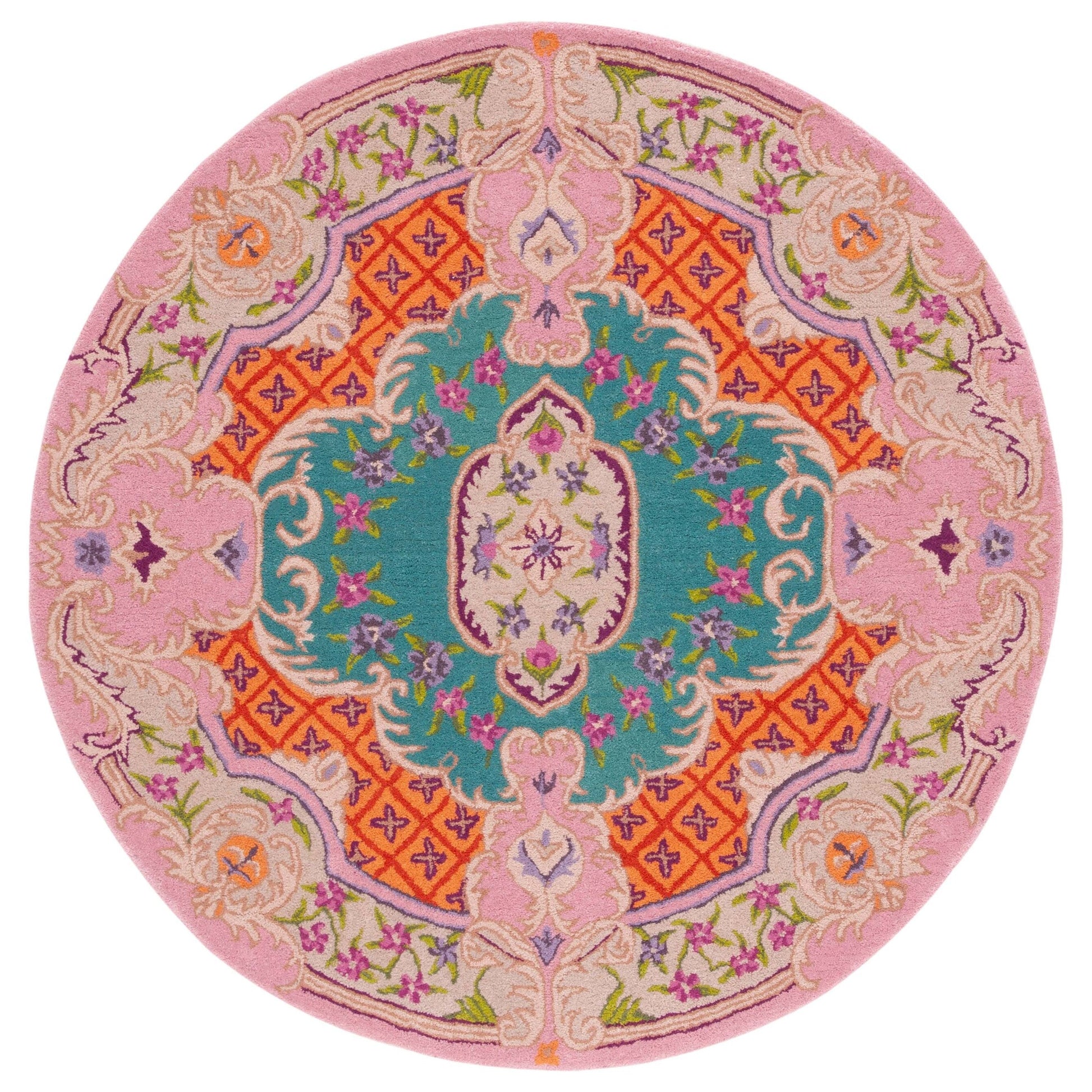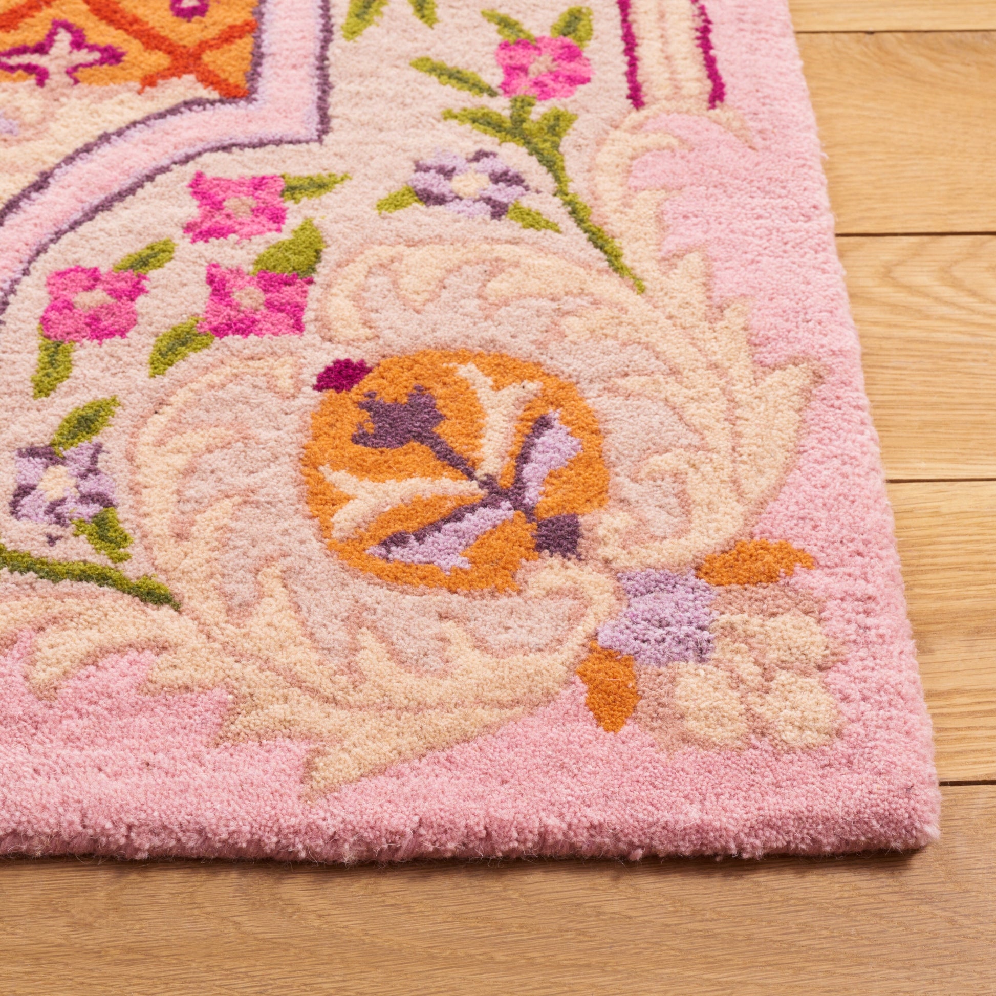 Découvrez notre somptueux tapis d'appoint de 60 x 90 cm, confectionné dans un luxueux mélange de teintes ivoire et rose délicat qui insuffle chaleur et élégance à votre intérieur. Ce tapis au design raffiné est entièrement réalisé à la main par des artisans indiens, garantissant ainsi son caractère unique. Avec une hauteur de velours confortable de 1 cm, notre tapis en laine est non seulement visuellement époustouflant, mais aussi agréablement moelleux sous les pieds, offrant un confort douillet aux espaces intimes de votre maison. La technique de tuftage à la main, méticuleuse, témoigne de sa qualité et de sa durabilité, faisant de ce tapis un atout précieux pour votre décoration. Son design, alliant tradition et modernité, arbore un motif d'une beauté symétrique rayonnante. Il présente des détails ornementaux et un motif central captivant, entouré de bordures travaillées qui encadrent le dessin avec élégance. L'harmonie des couleurs est rehaussée de touches florales, lui conférant un charme classique revisité. Apportez une touche de luxe à votre salon, votre chambre ou votre bureau avec ce trésor capitonné à la main, venu d'Inde, qui sublimera votre intérieur par son raffinement et son attrait intemporel.