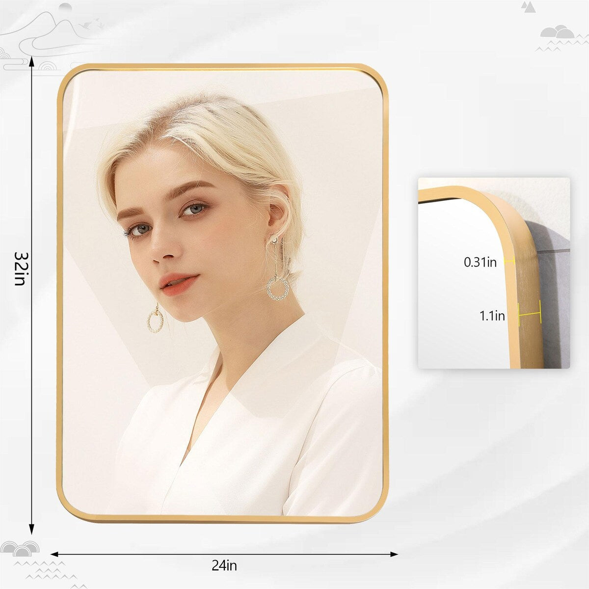 Upgrade your home decor with this modern and stylish Wall Mounted Bathroom Mirror with Round Corner. Made with high-quality aluminum alloy and float glass, this mirror is not only functional but also adds aesthetic appeal to your living space. The ultra-thin frame and round corners make it suitable for any area in your home, from the bathroom to the bedroom. With multiple size options available, you can easily find the perfect fit for your needs.