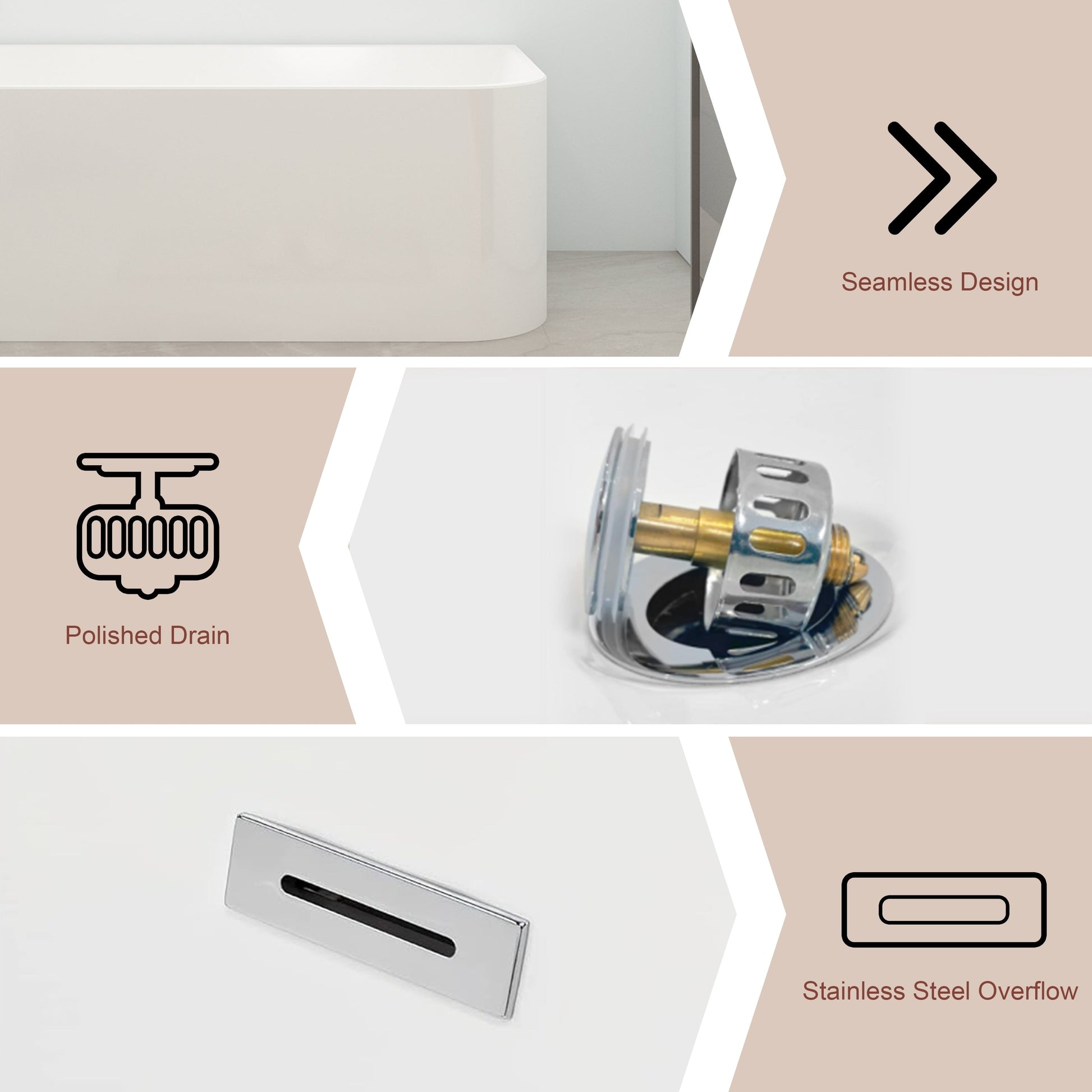 Baignoires autoportantes en acrylique CB HOME 59''/67'', baignoires simples contre le mur, trop-plein gauche/droite