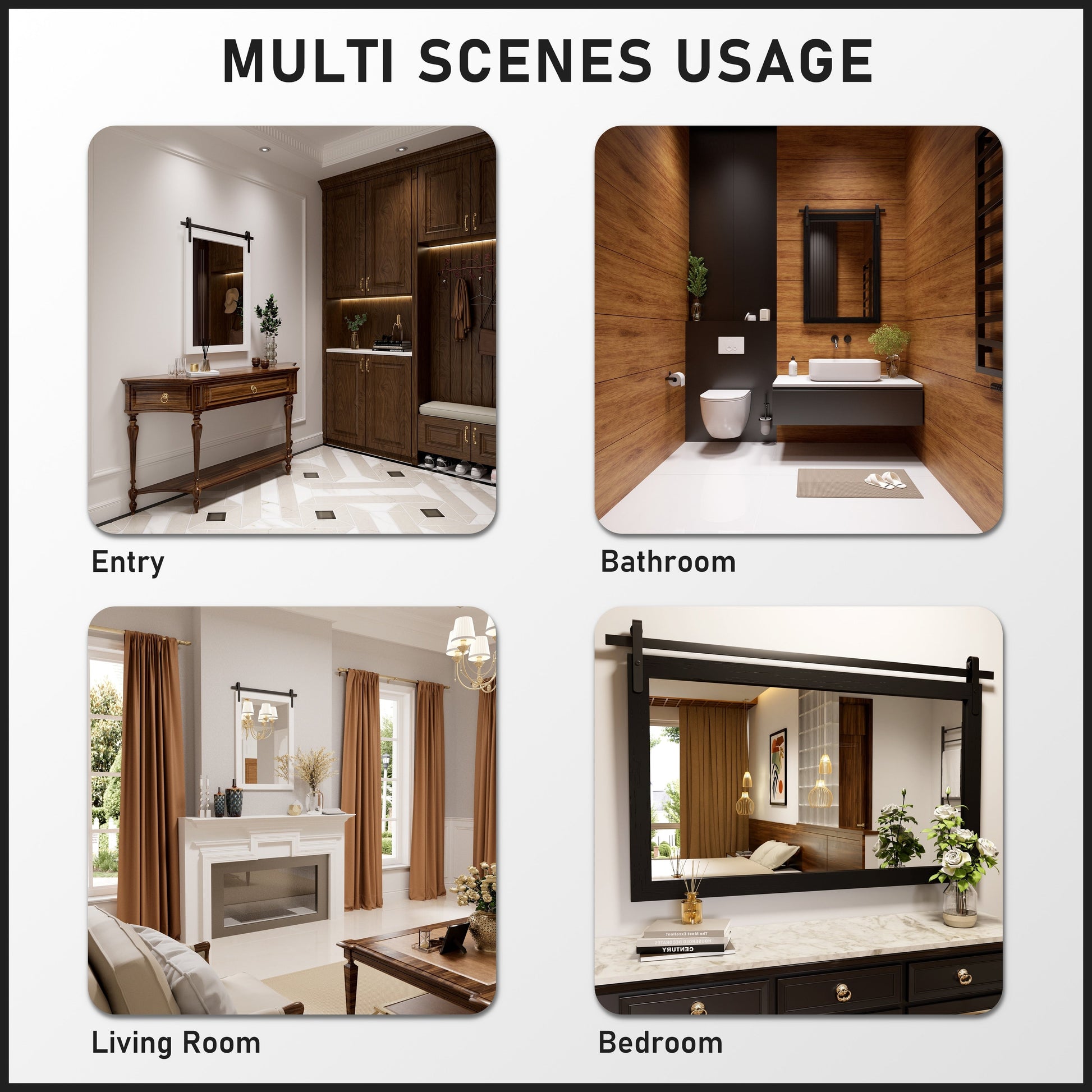 - Farm Style: The natural wood finish on the frame gives the bathroom mirror a rustic look. Create the focal point you want in bathrooms, living rooms, hallways, kitchens, entryways, private spaces!