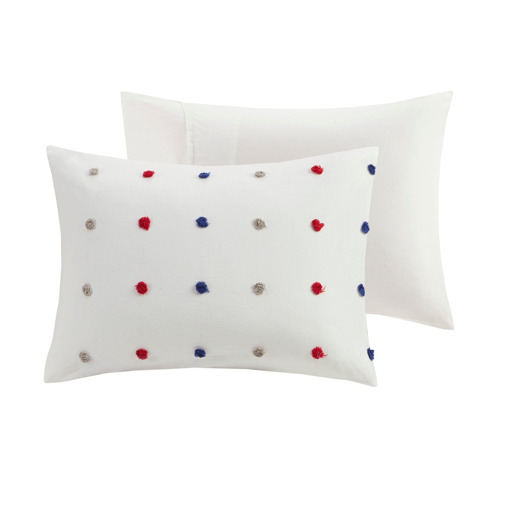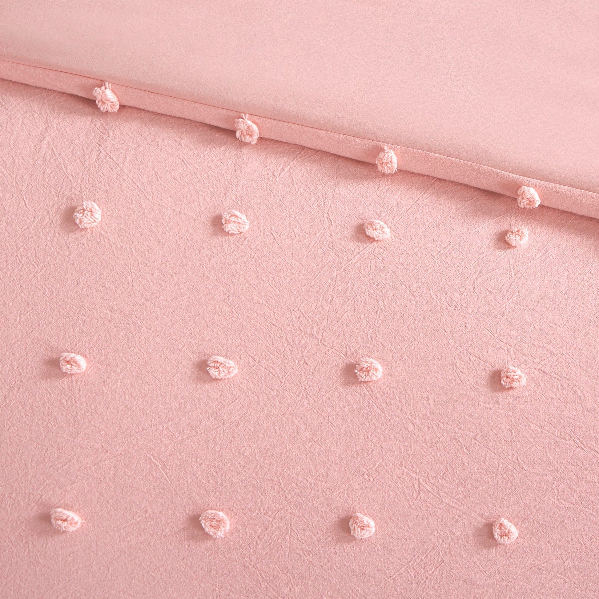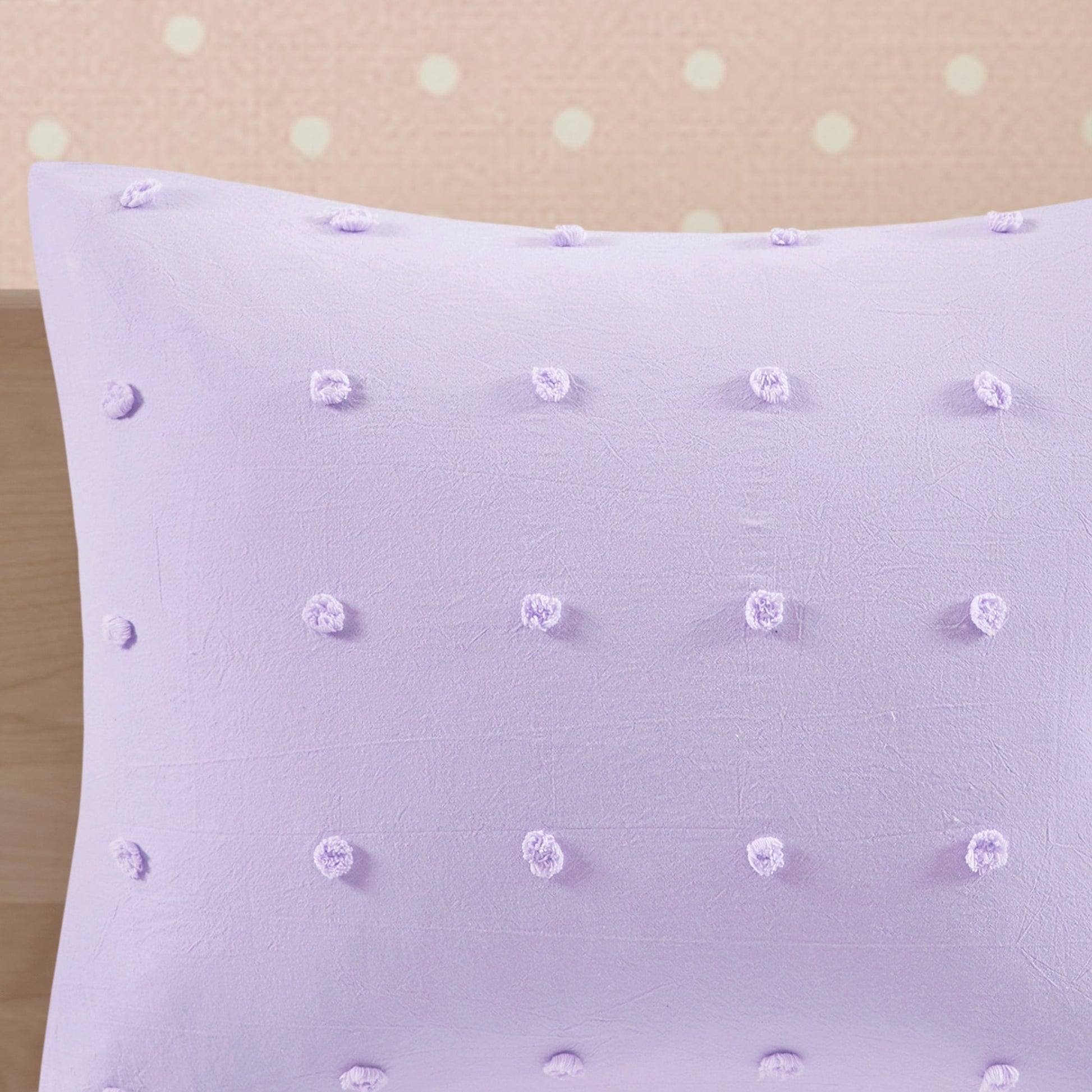 Create a cute and cozy look in your child's bedroom with the Intelligent Design Kids Ensley Cotton Jacquard Pom Pom Comforter Set. This cotton comforter features an all-over jacquard pom pom design that adds texture, for a shabby chic look. Matching shams (1 for Twin Sizes) pair perfectly with the comforter, while a square and an oblong decorative pillow complete this adorable kid's comforter set. Machine washable, this bedding set is also OEKO-TEX certified, meaning it does not contain any harmful substances or chemicals, and uses an antimicrobial treatment that provides built-in freshness protection, reducing the growth of odor causing bacteria to keep fabric lasting longer.