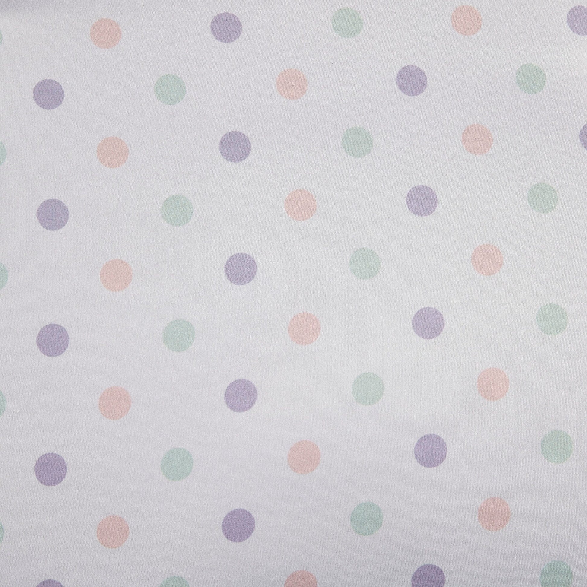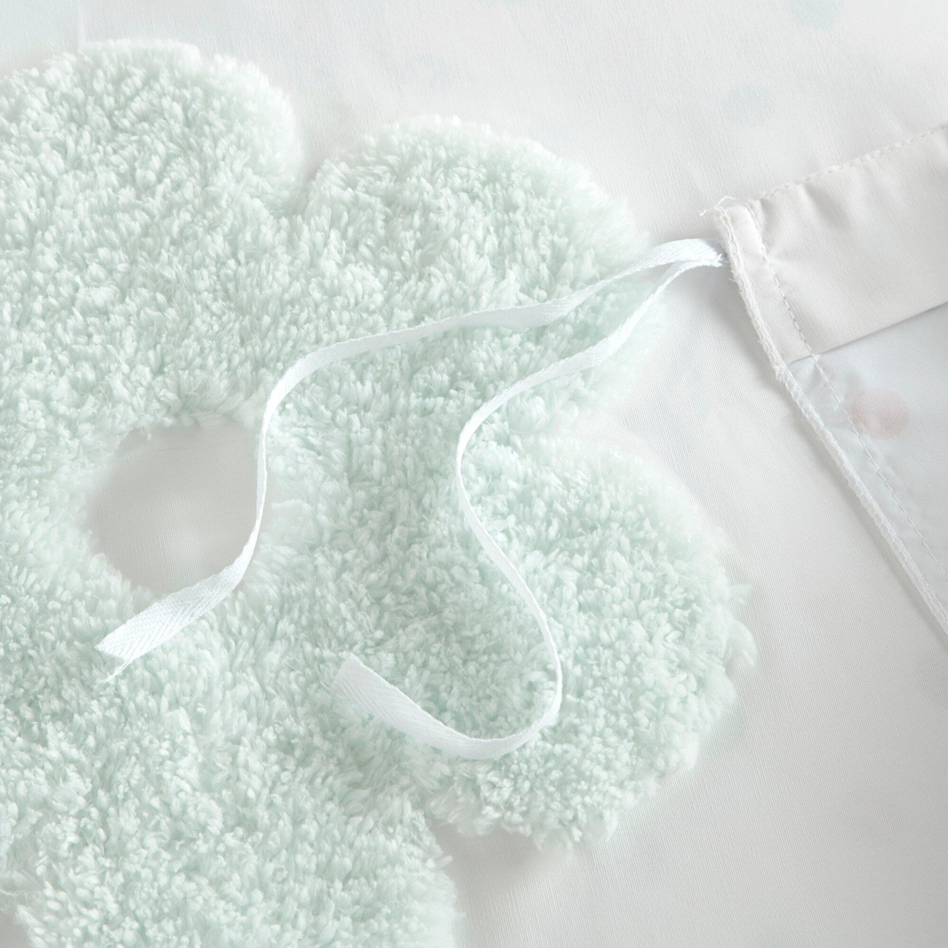 The Intelligent Design Kids duvet cover set features a charming floral tufted chenille design in purple, pink, and aqua on one side and a coordinating polka dot reverse on the other, giving your child two fun options to style their bed.