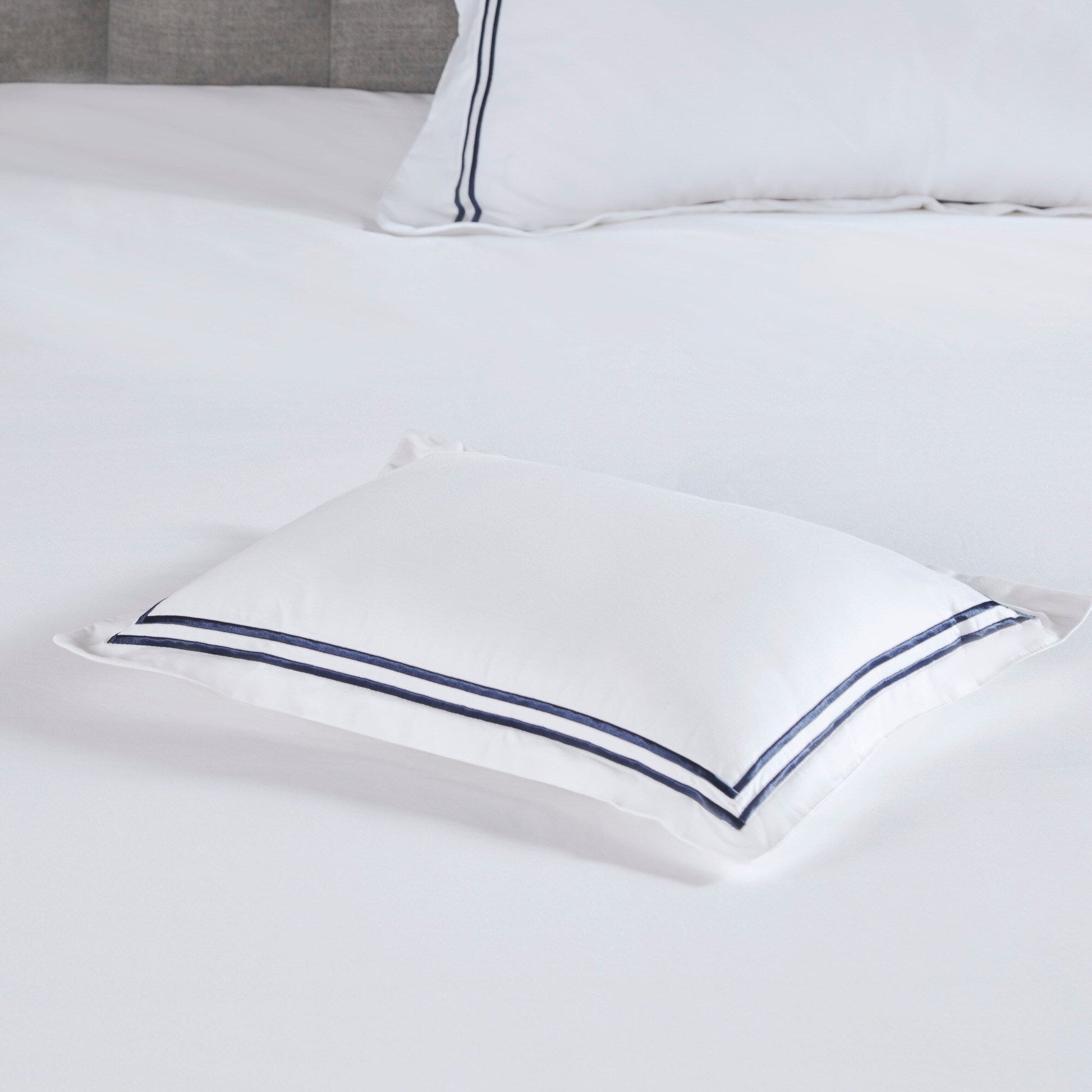 - Taie d'oreiller : satin de coton 500 fils, face et dos brodés, bride de 2 pouces, fermeture à glissière