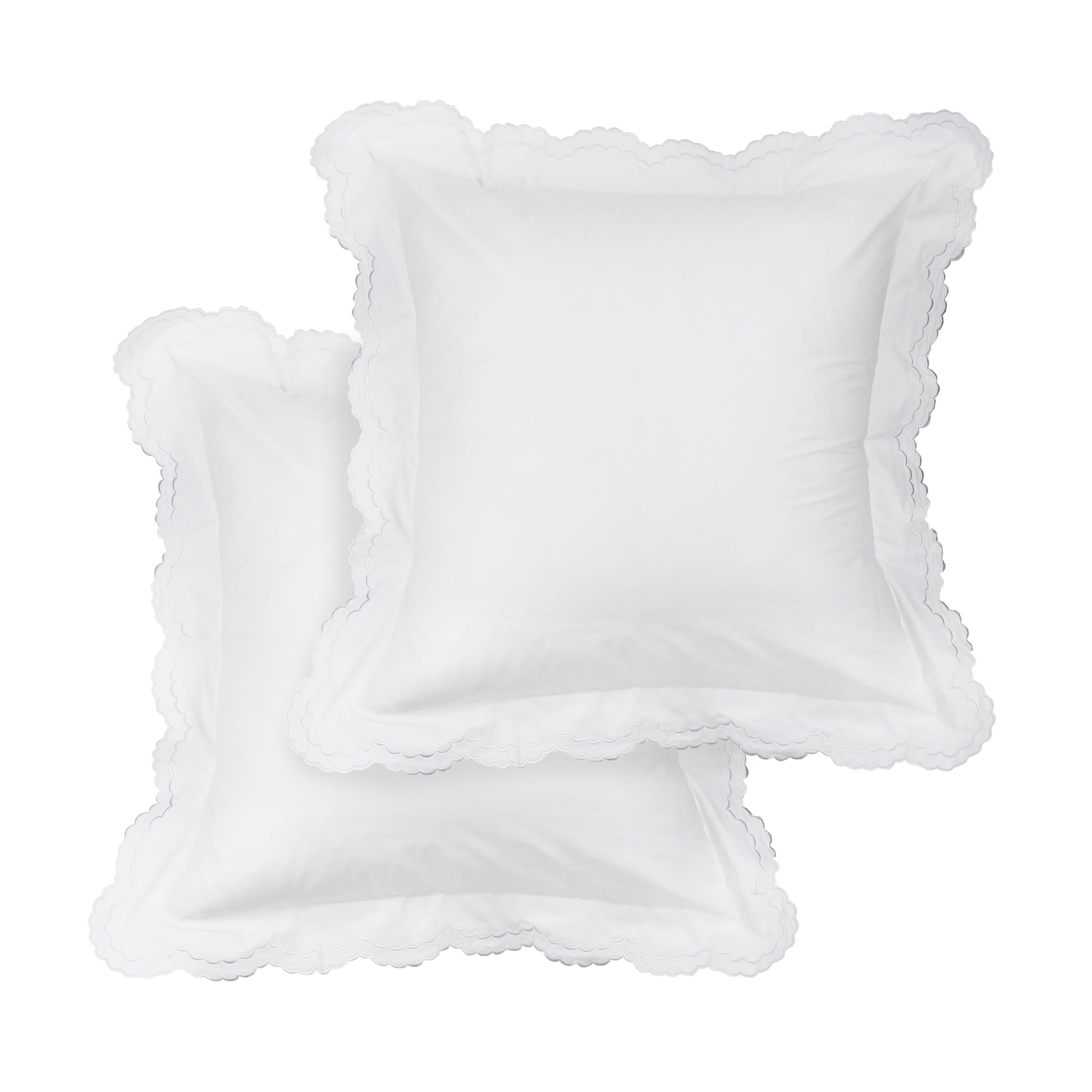 Embroidered Percale Crisp Cotton Double Scallopier...