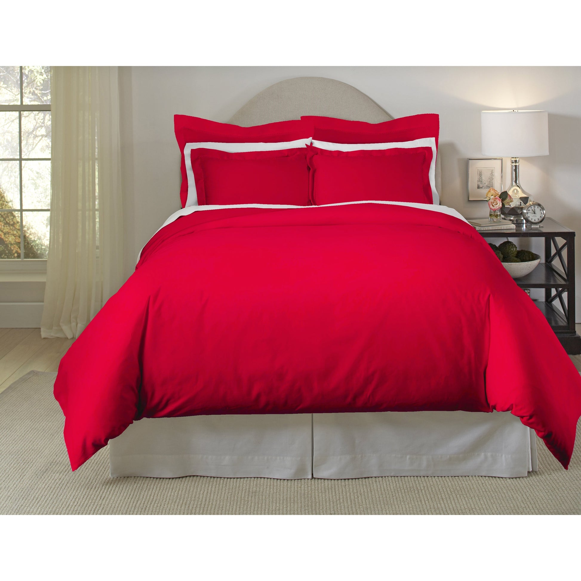 Indulge in a luxurious sleeping experience with this deluxe 620 thread count duvet cover set. Made of ultra-soft, 100-percent long staple cotton, this silky set adds style to your bedding with its solid color pattern, which comes in several attractive colors. The zip closure and corner ties keep your duvet securely in place and make it easy to remove as needed. This contemporary-style set includes one duvet cover and two pillow shams, and is conveniently machine washable for easy care.