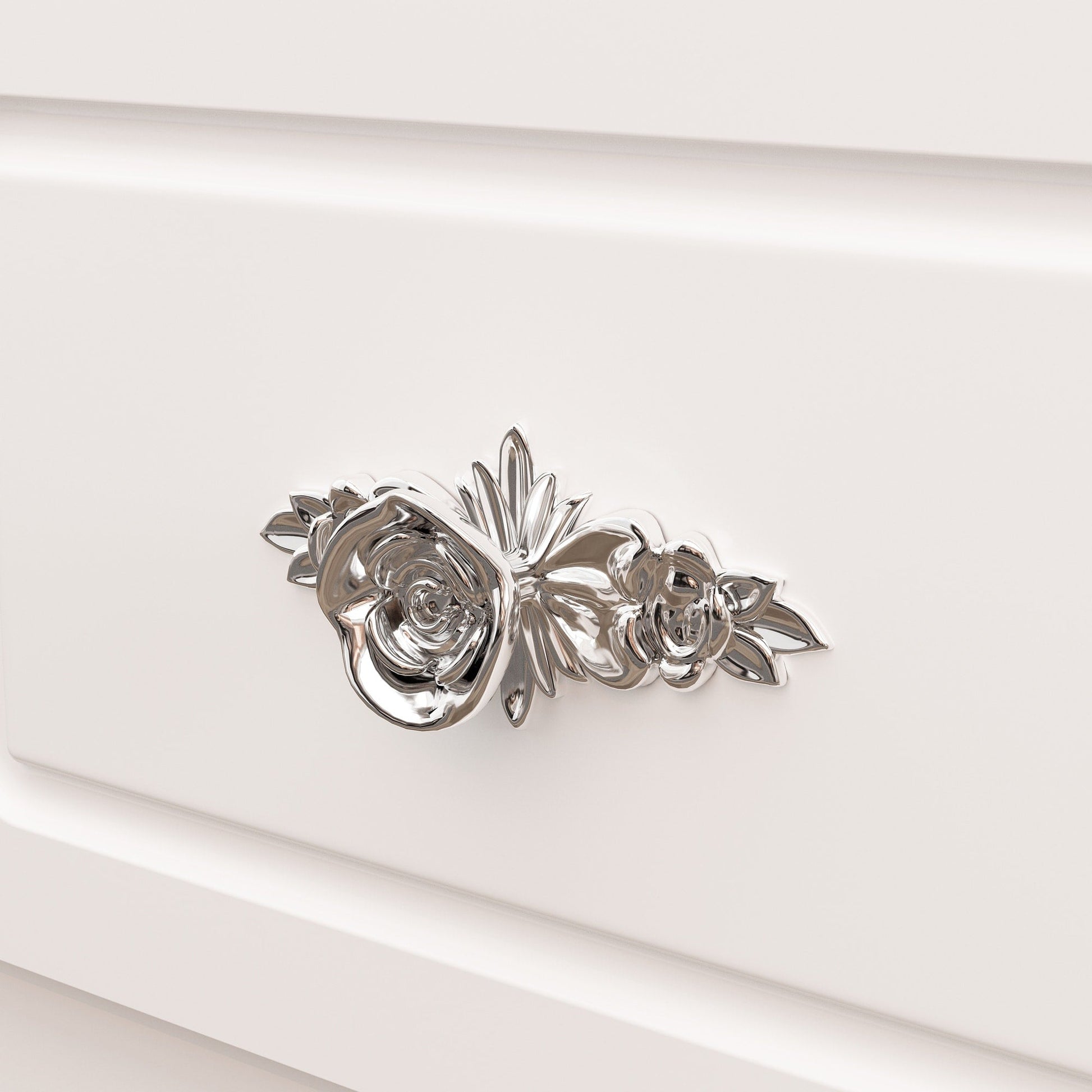 Poignées : Accentuées de poignées en métal argenté or rose, ajoutant une touche de sophistication.