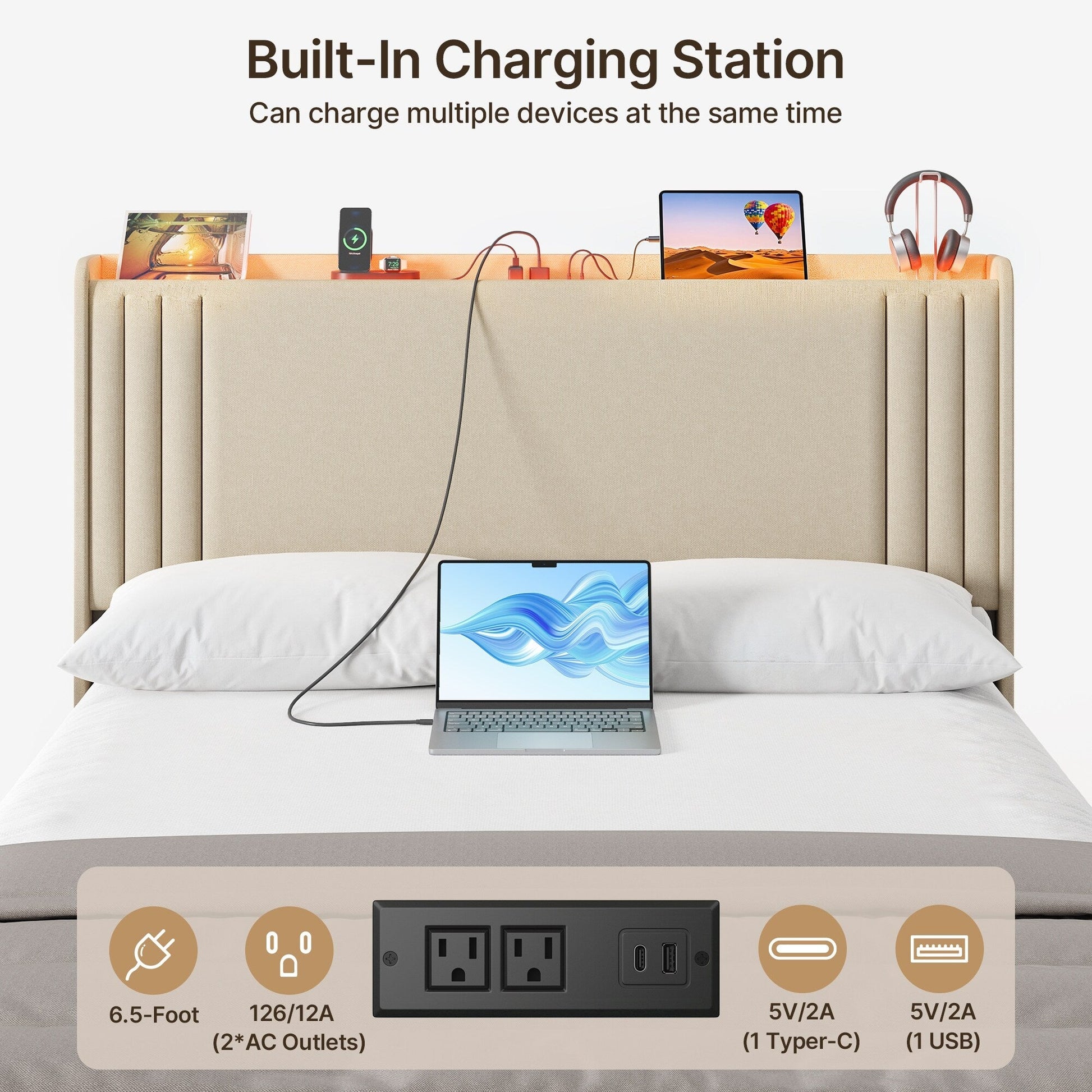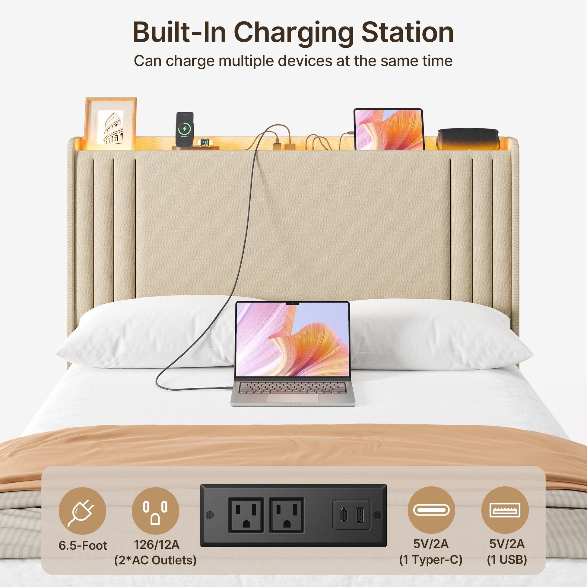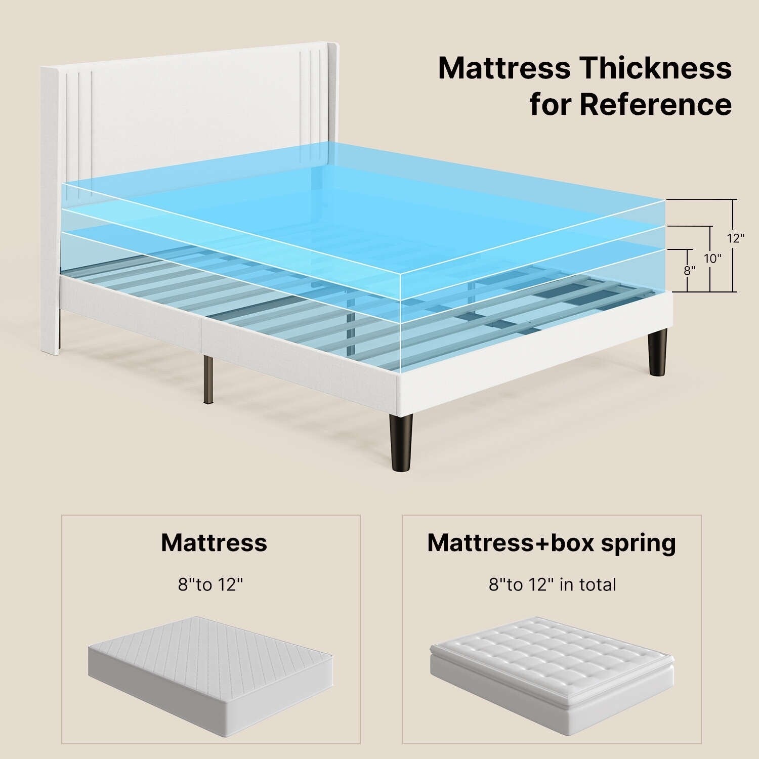 Lit Queen/Full rembourré à canaux verticaux avec tête...