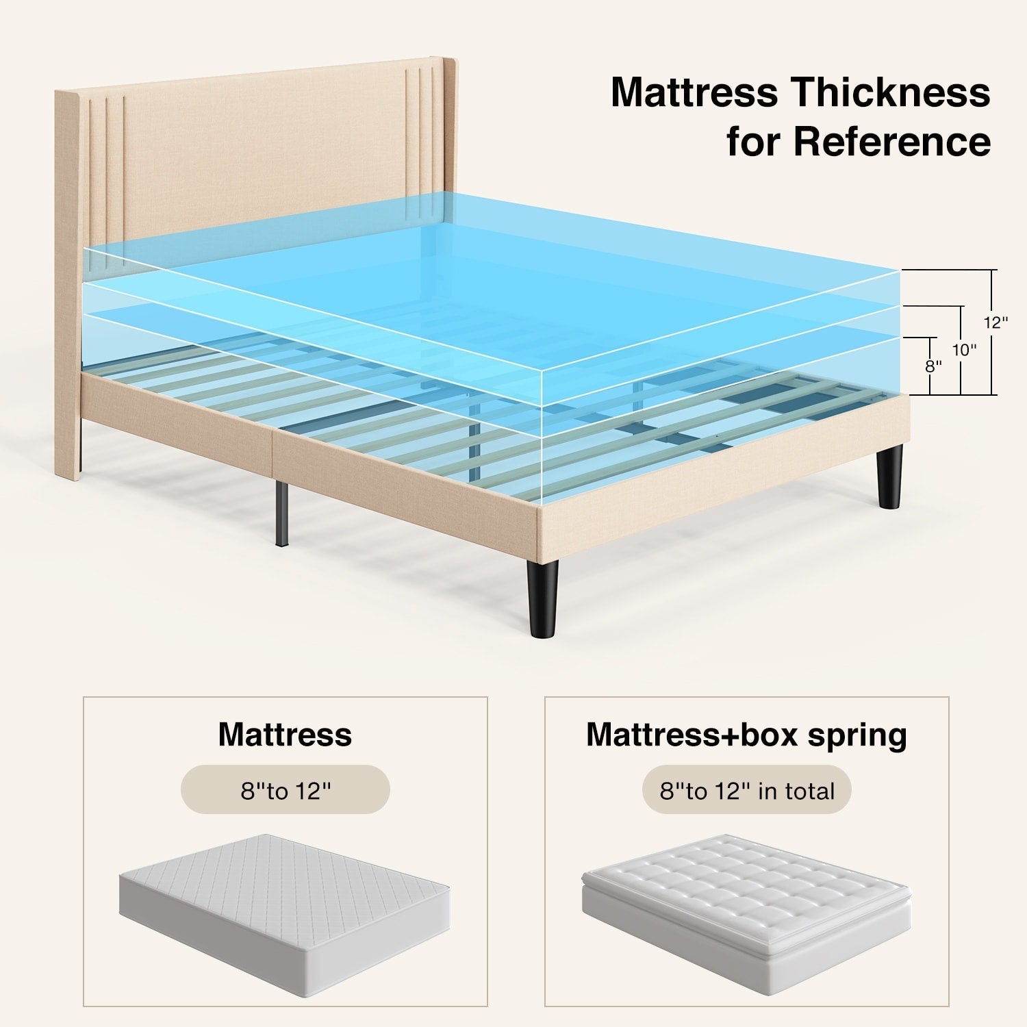 Lit Queen/Full rembourré à canaux verticaux avec tête de lit à oreilles