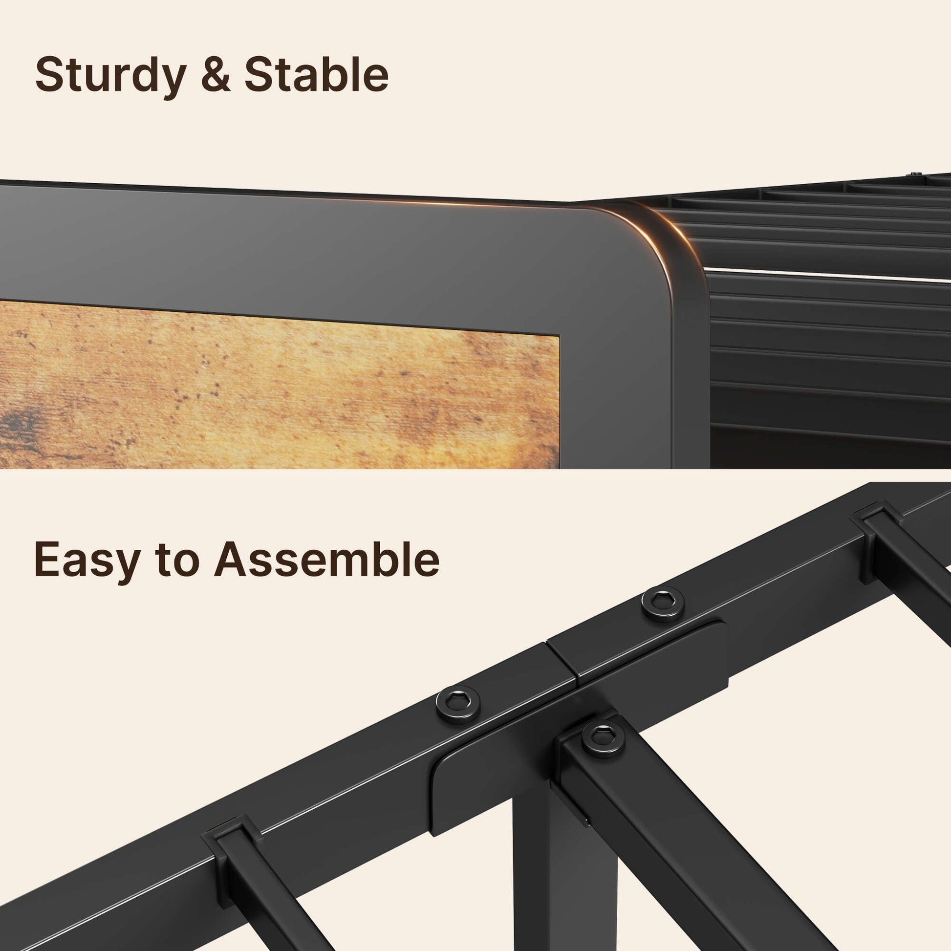 • Assemblage facile : simple à assembler avec tous les outils nécessaires inclus, ce cadre de lit offre un processus d'installation fluide, afin que vous puissiez profiter de votre nouveau lit en un rien de temps.