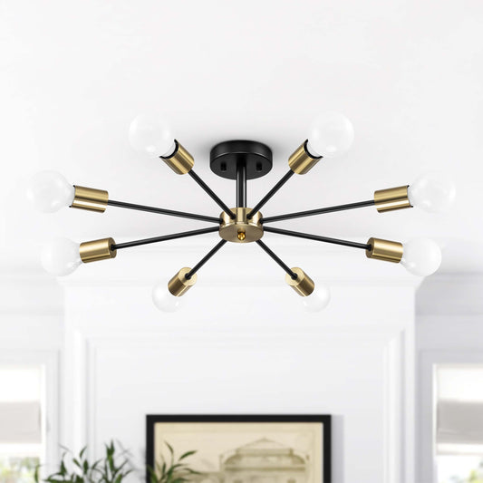 Black/ Gold Sputnik Semi Flush Mount Lamp Close to Ceiling Light Fixture for Living Room/ Kitchen/ Office/ Bedroom/ Foyer