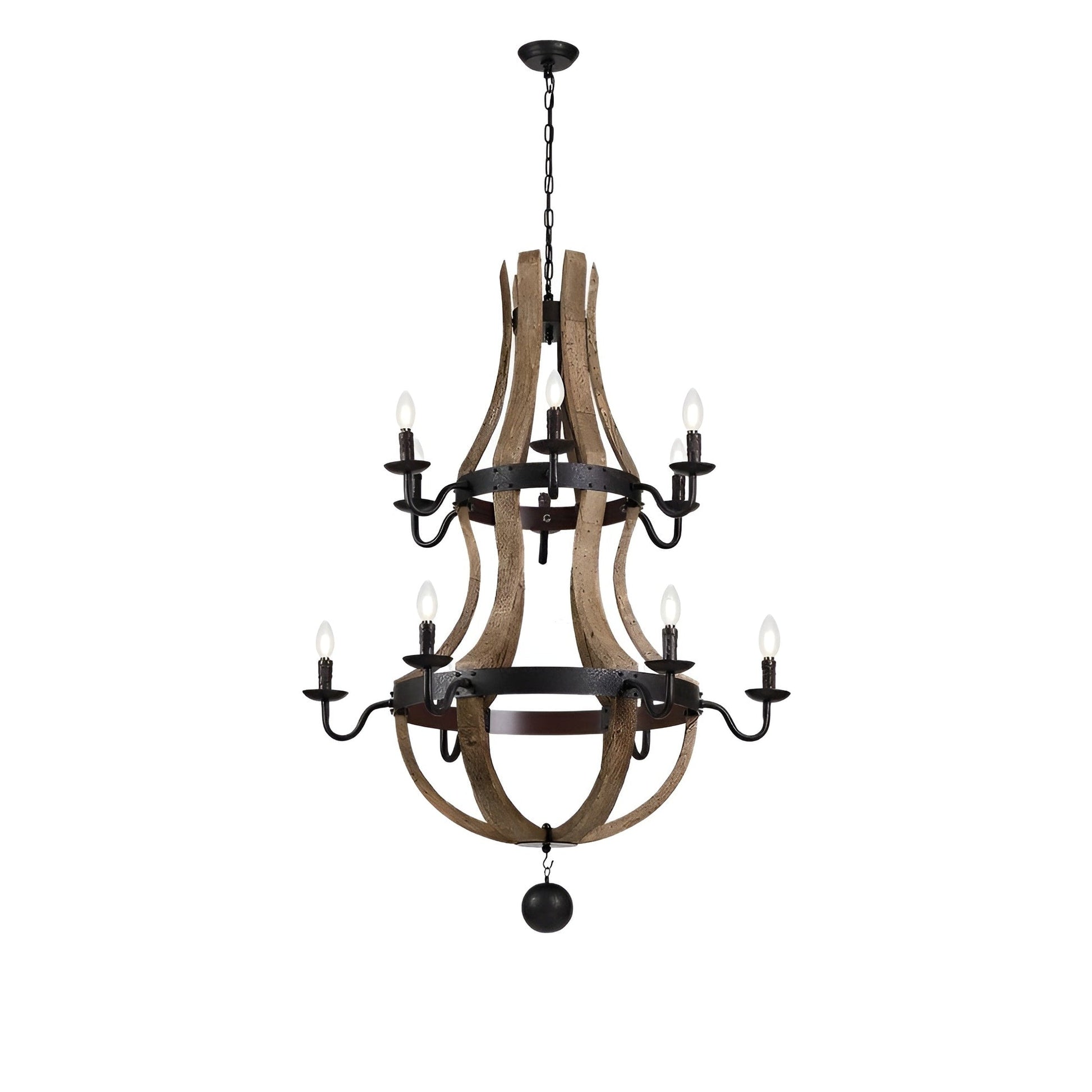 Lustre à 12 lumières de style campagnard français à deux niveaux en forme de tonneau à vin