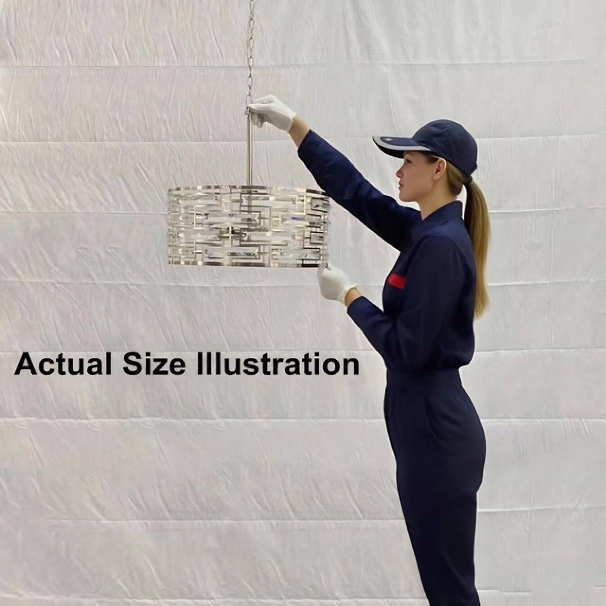 • Luminaire : 20 pouces de diamètre x 18 pouces H ; Abat-jour : 20 pouces de diamètre x 8,5 pouces H ; Plaque de plafond : 5,1 pouces de diamètre x 1 pouce H ; Hauteur de suspension maximale (du plafond au bas du luminaire) : 59,4 pouces, qui peut être raccourcie.