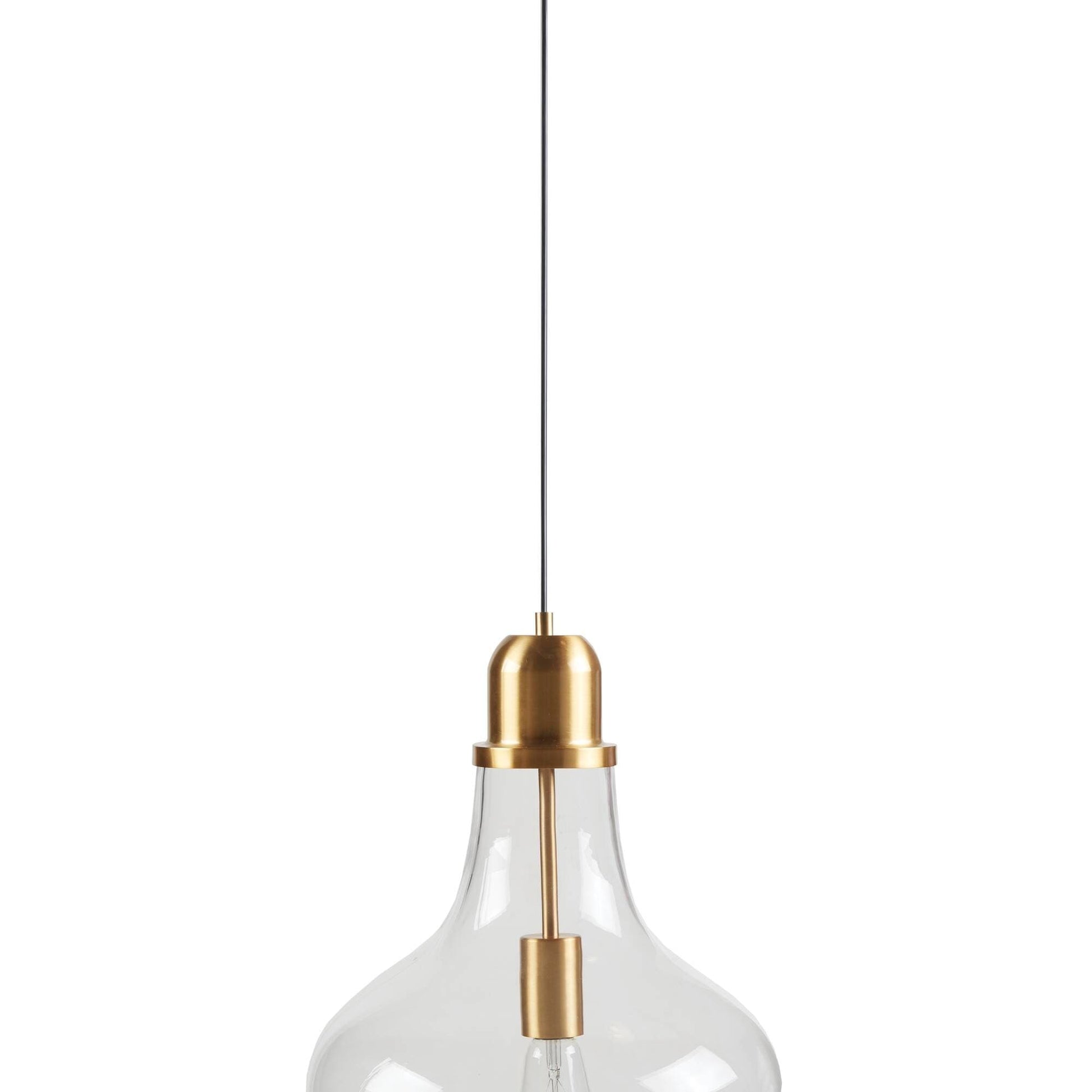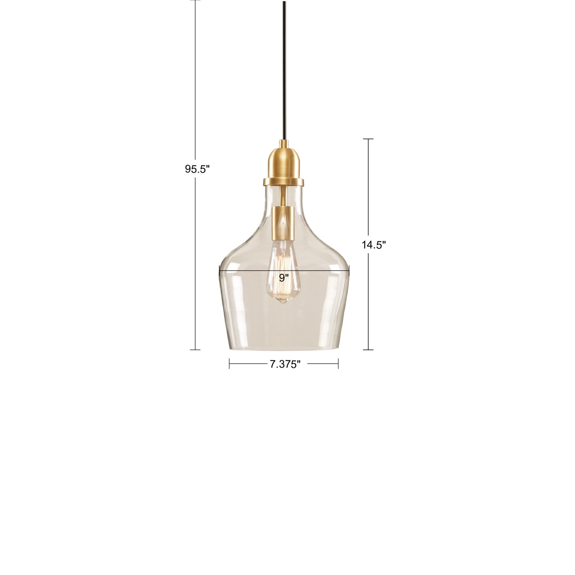 Illuminate your space with this 9' bell-shaped hanging glass pendant light. Featuring a clear hand-blown glass shade and gold metal fixture, it's perfect for task lighting in kitchens, dining areas, or countertops.