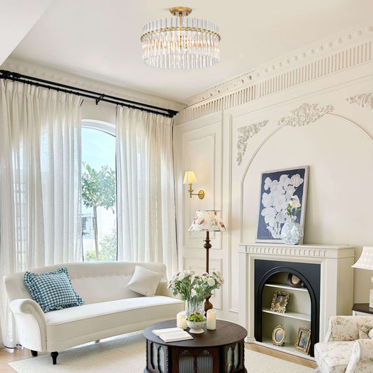 Lustre à abat-jour tambour Anita avec prisme en verre transparent