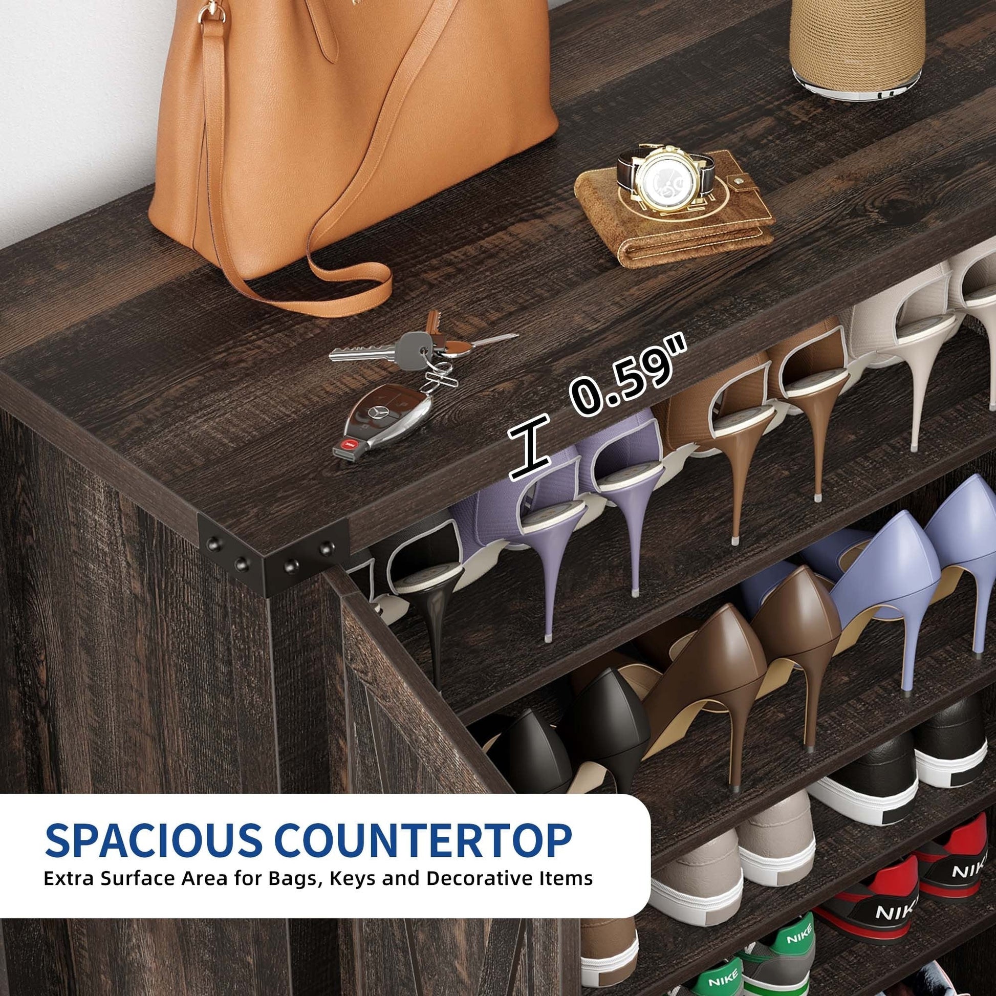 Organisez votre espace avec notre spacieux meuble à chaussures. Avec ses 5 étagères pouvant accueillir 15 à 20 paires de chaussures et son plateau pratique pour les petits objets, il est indispensable à toute maison. Son élégant motif en X lui confère un charme rustique, tandis que ses 1re et 3e étagères réglables accueillent tous types de chaussures. Fabriqué en MDF durable avec des pieds en bois robustes, il est conçu pour une stabilité et une longévité accrues. N'oubliez pas d'installer le kit anti-basculement inclus pour plus de sécurité.