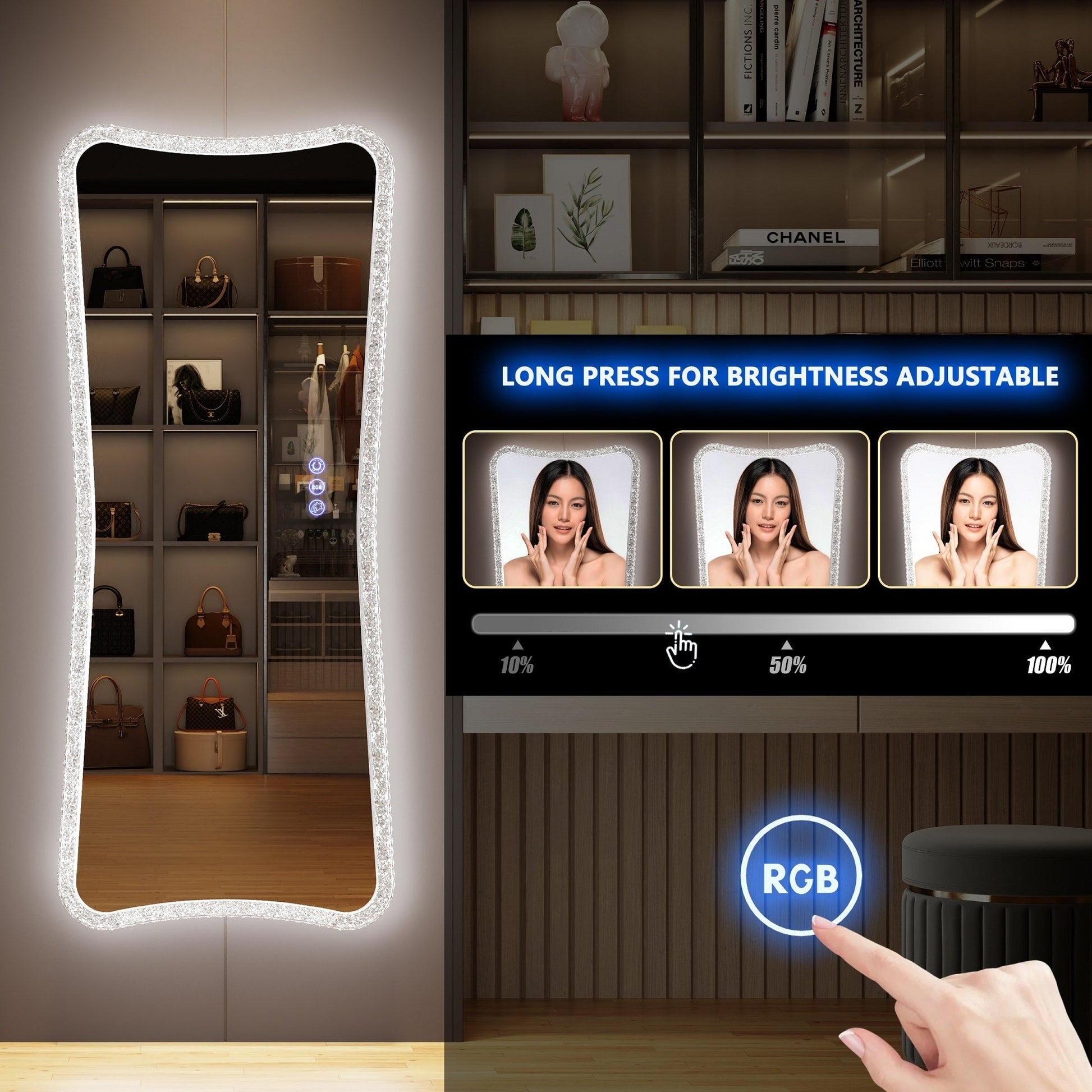 - Le miroir pleine longueur avec des lumières entourées d'une bande lumineuse LED haute luminosité d'une durée de vie de 50 000 heures, avec 7 modes d'éclairage dynamiques et 7 modes d'éclairage statiques, avec une luminosité réglable de 0 % à 100 % peut répondre à vos besoins de maquillage personnels.