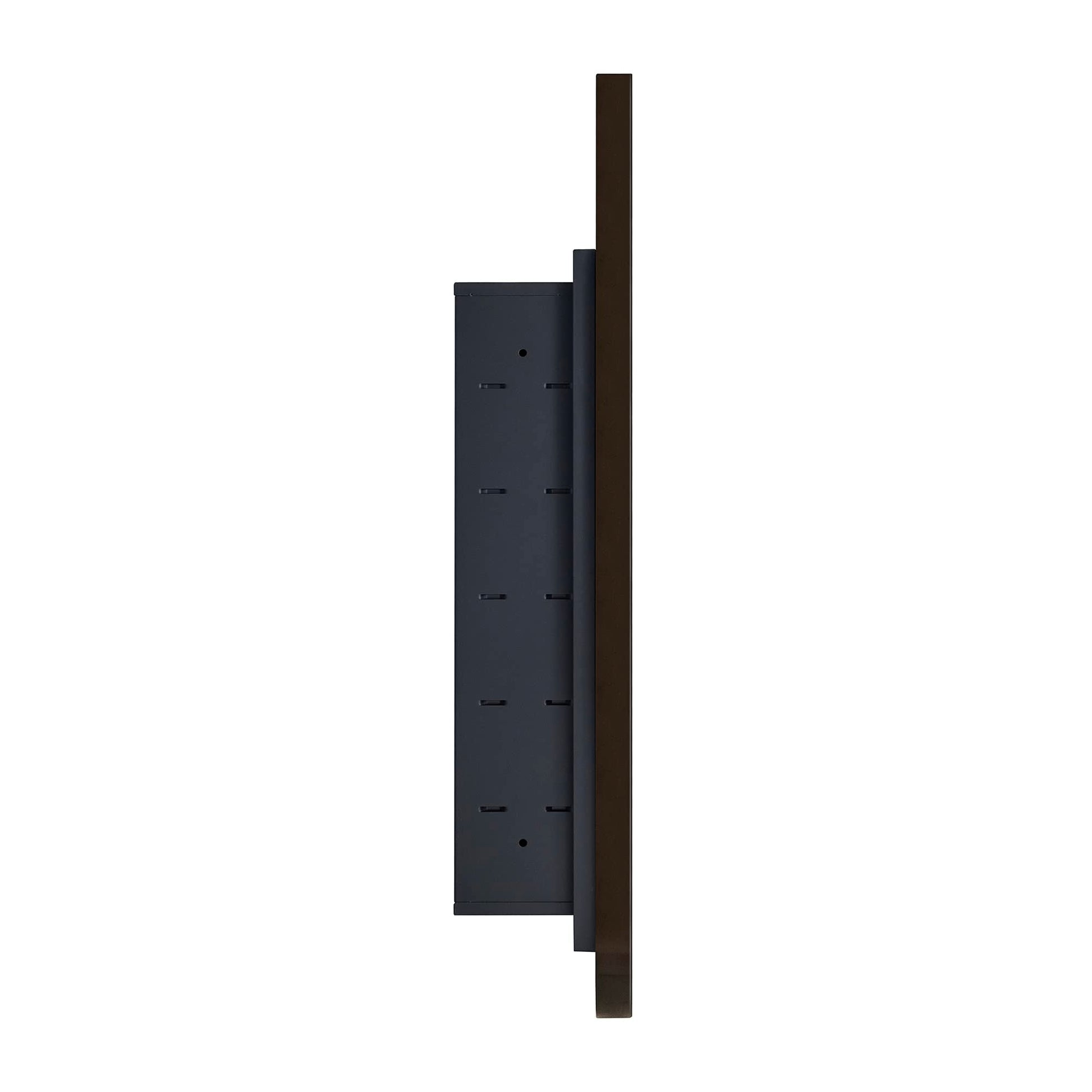 - Armoires à pharmacie cintrées à cadre métallique : portes en métal haut de gamme, finition noir mat. Charnières à fermeture automatique.