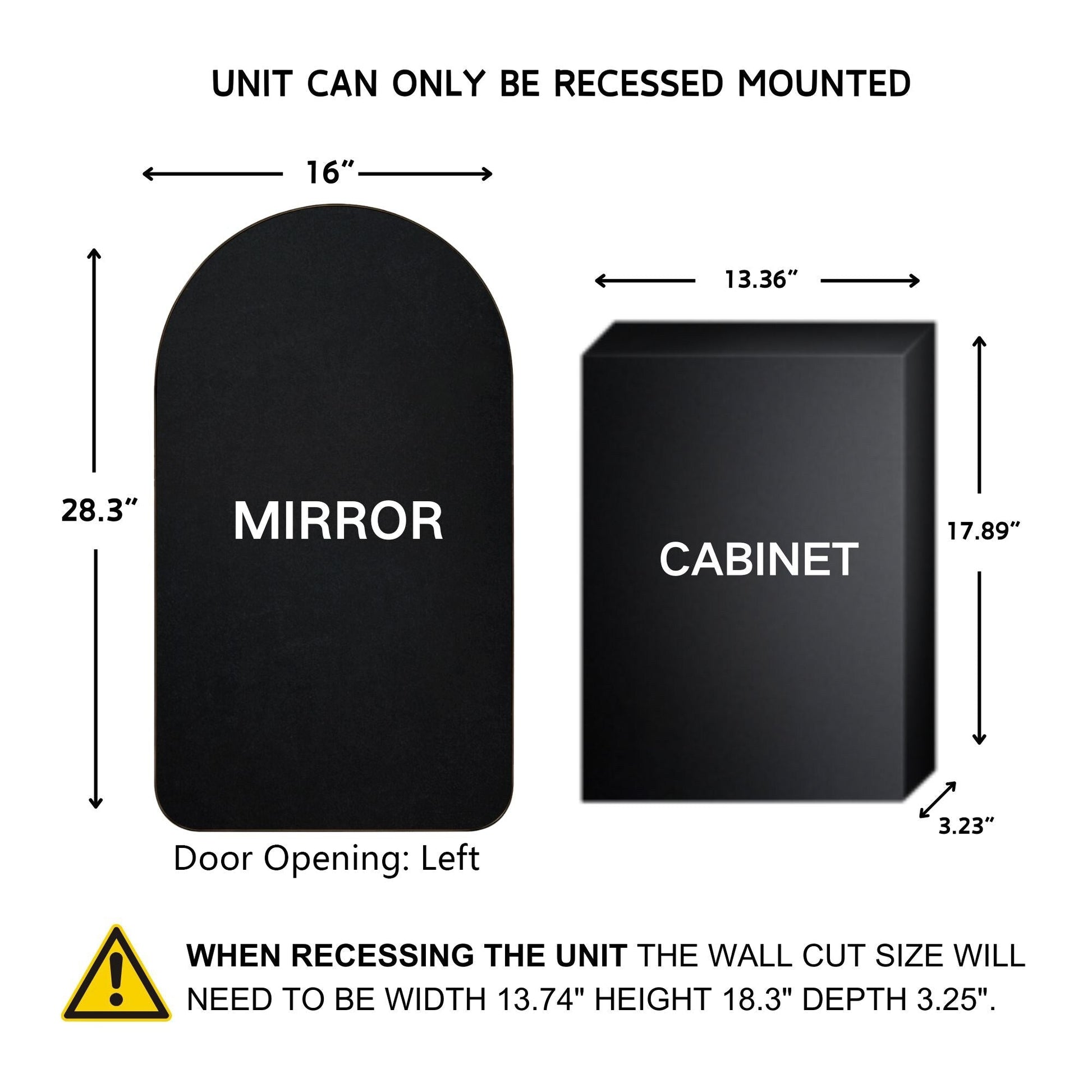 - Dimensions globales : 16' de large x 4,96' de profondeur x 28,3' de haut ; découpe murale : 13,36' de large x 17,89' de haut ; les dimensions détaillées peuvent être trouvées dans la page de description du produit