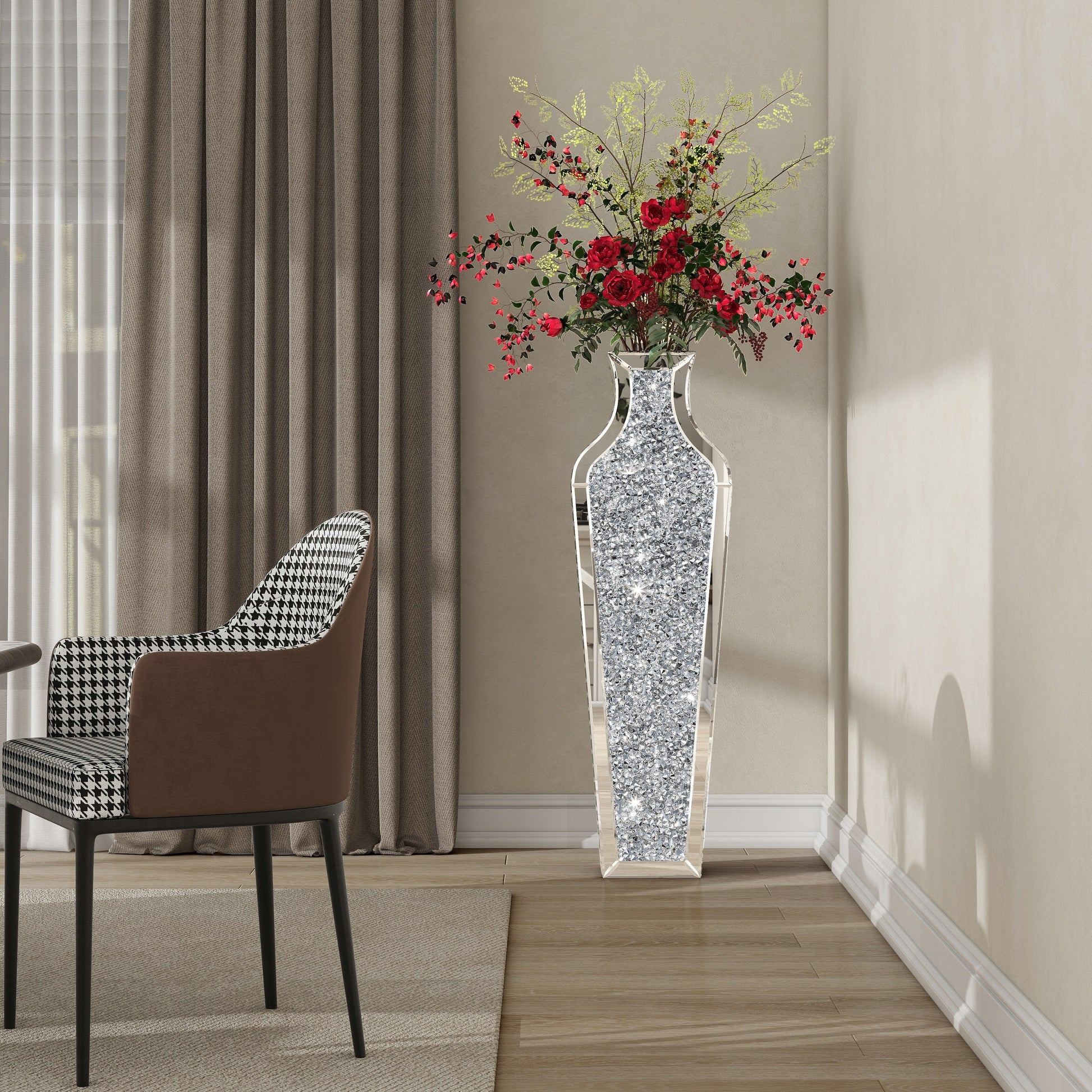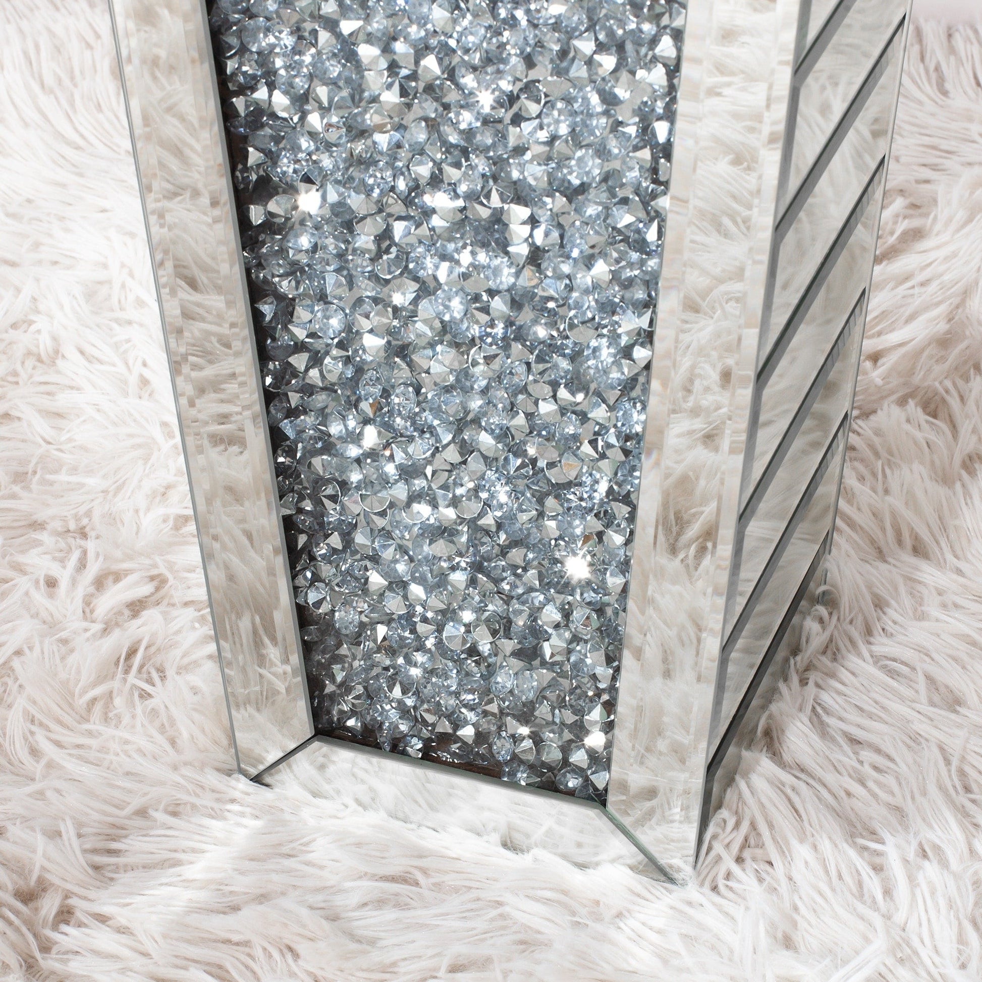 - Design glamour : un côté du vase miroir est incrusté de strass brillants. Votre intérieur paraît plus lumineux et spacieux.