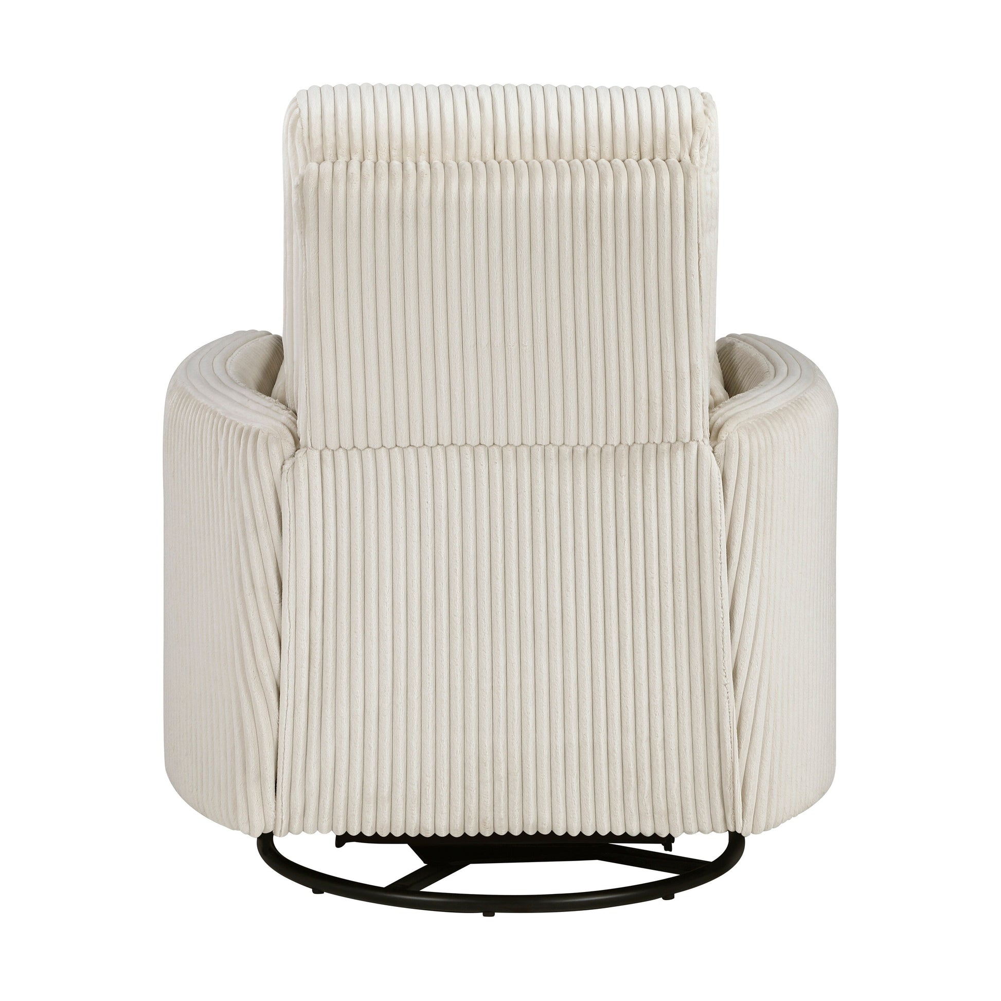 Détendez-vous avec style grâce à ce fauteuil inclinable pivotant, élégamment revêtu d'un luxueux velours côtelé. Conçu pour un confort durable, il est doté de coussins de dossier et d'assise fixes et d'un mécanisme d'inclinaison pratique à poignée pour une relaxation sans effort. Appréciez la polyvalence d'une rotation à 360 degrés et d'un doux mouvement de glissement. Deux coussins assortis sont inclus, ajoutant confort et charme à votre espace. Cette collection est disponible en beige, gris et taupe.