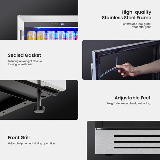 Réfrigérateur à boissons de 24 pouces, 140 canettes, pour boissons gazeuses et vins - 24 pouces