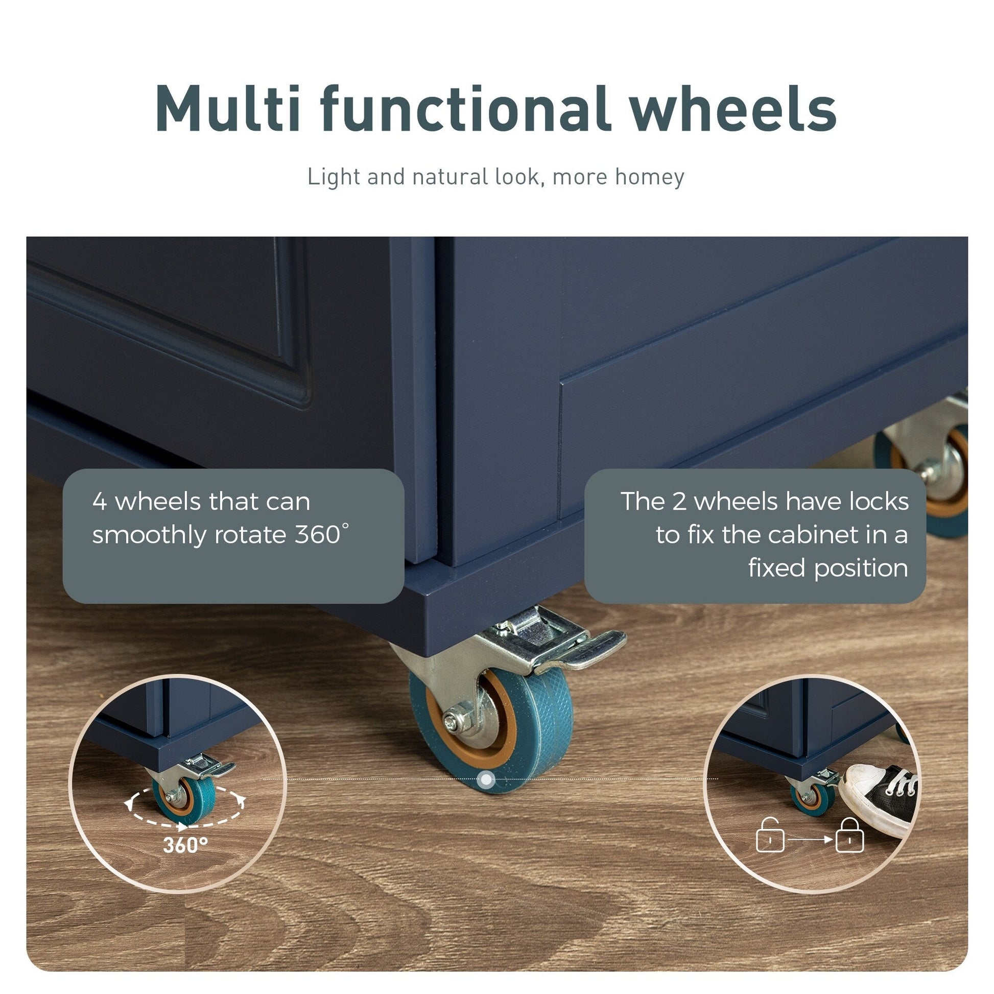 Desserte de cuisine Sophia & William avec abattant et plateau en bois d'hévéa, chariot de cuisine roulant avec grand meuble de rangement