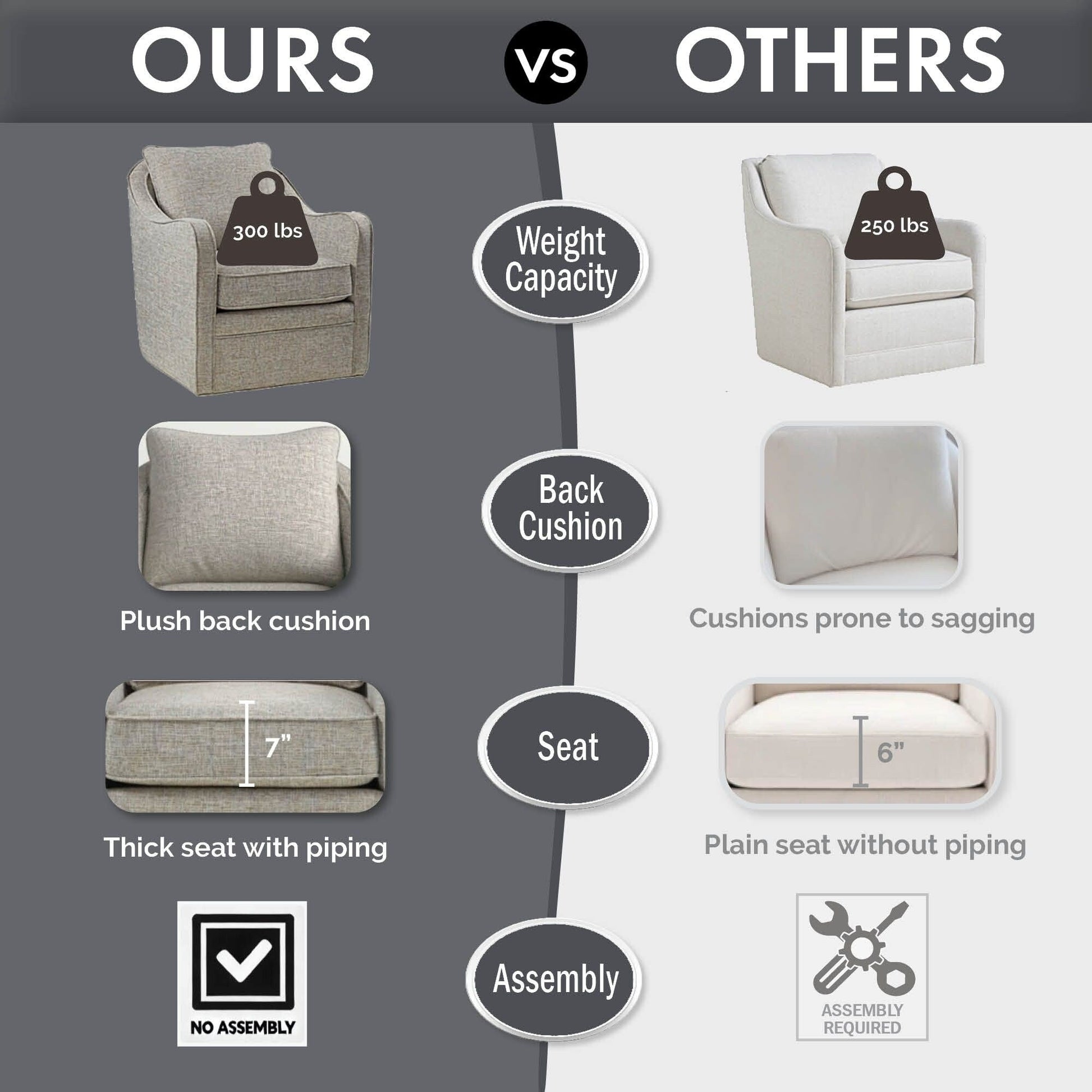 - Smooth 360° swivel allows for effortless movement, while the high-density foam seat and loose back cushion provide superior comfort and support