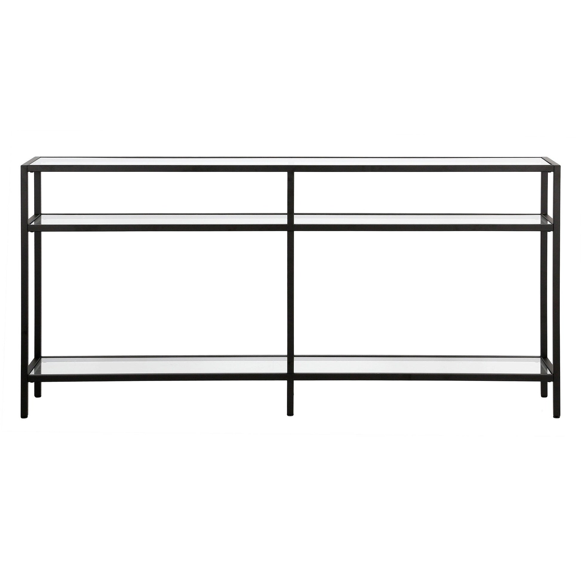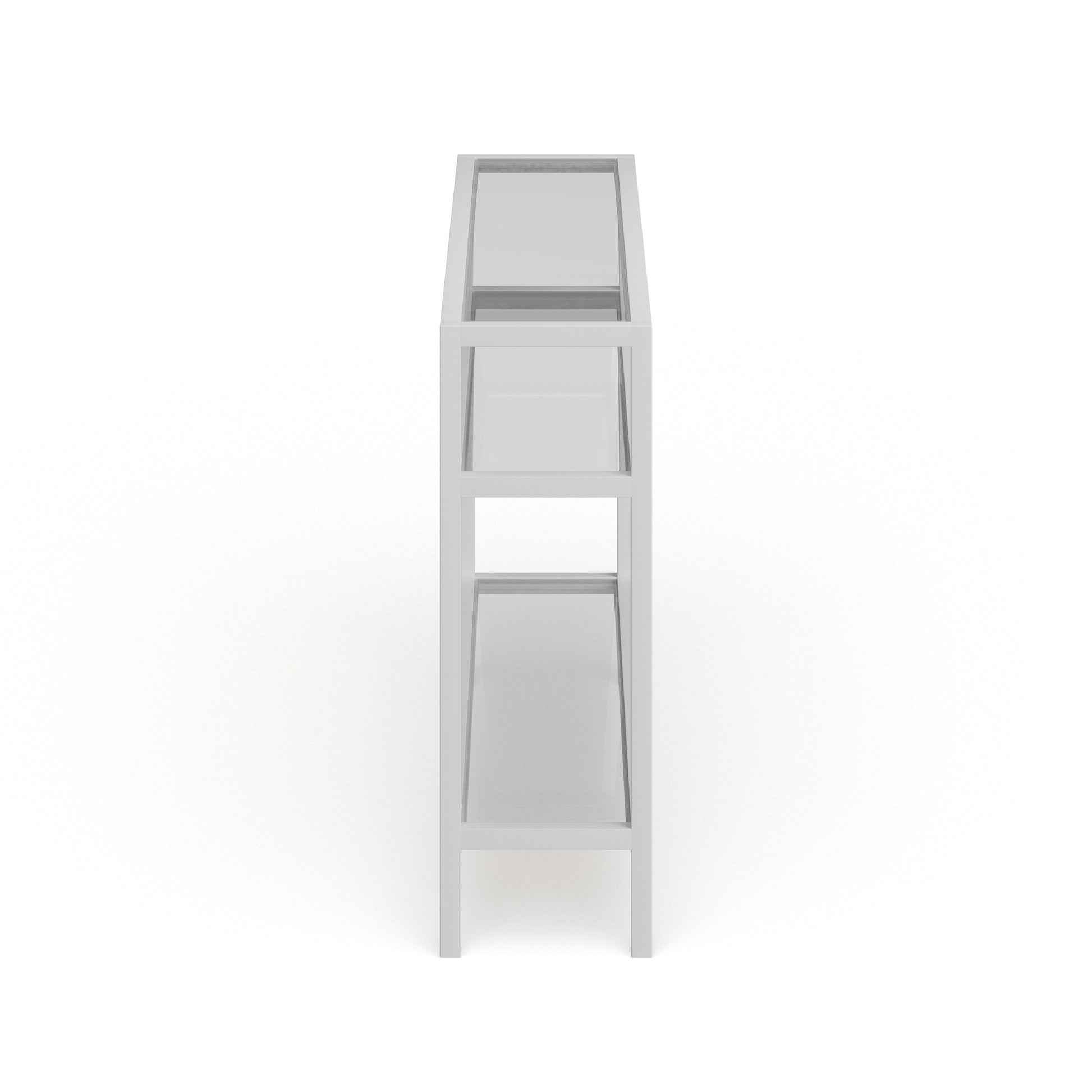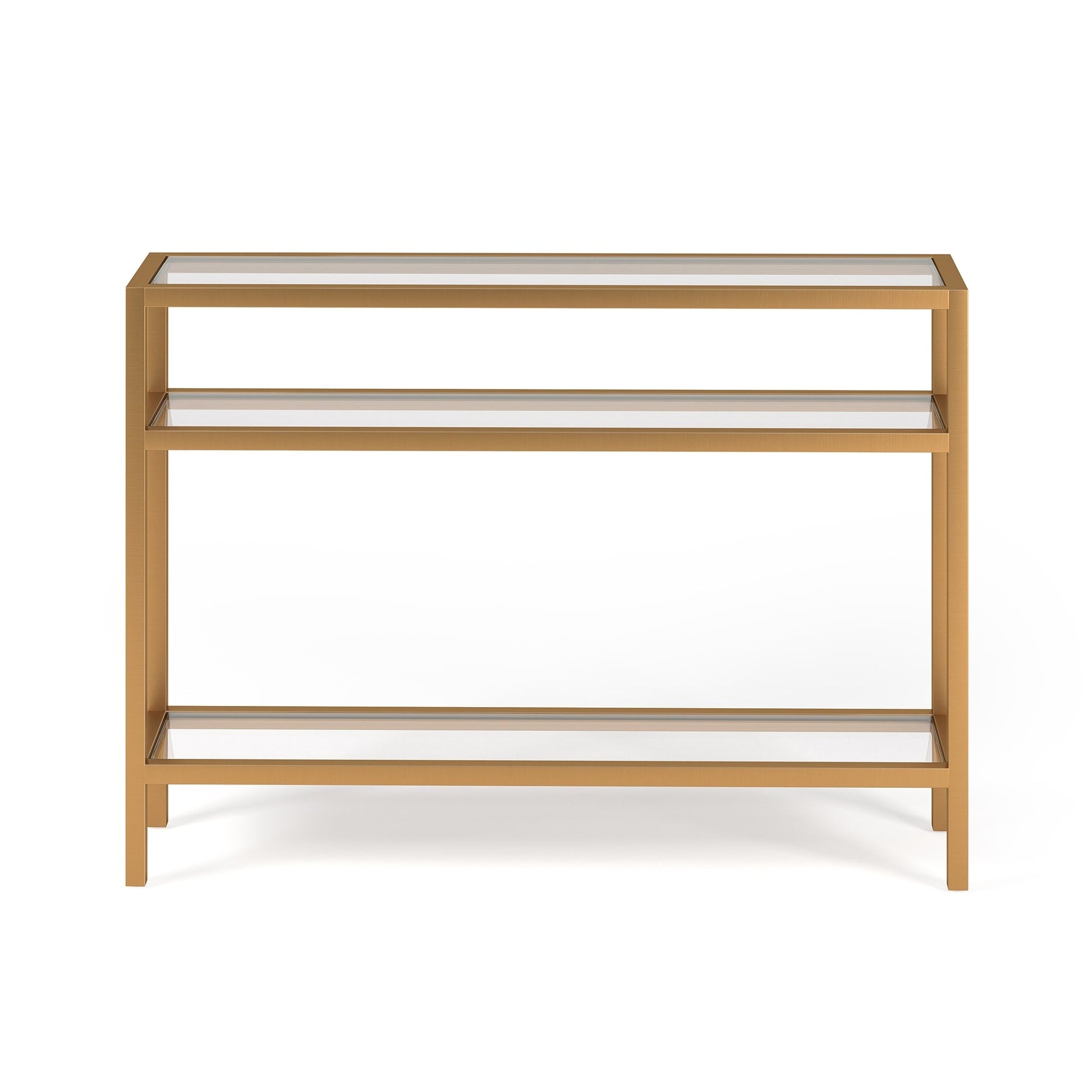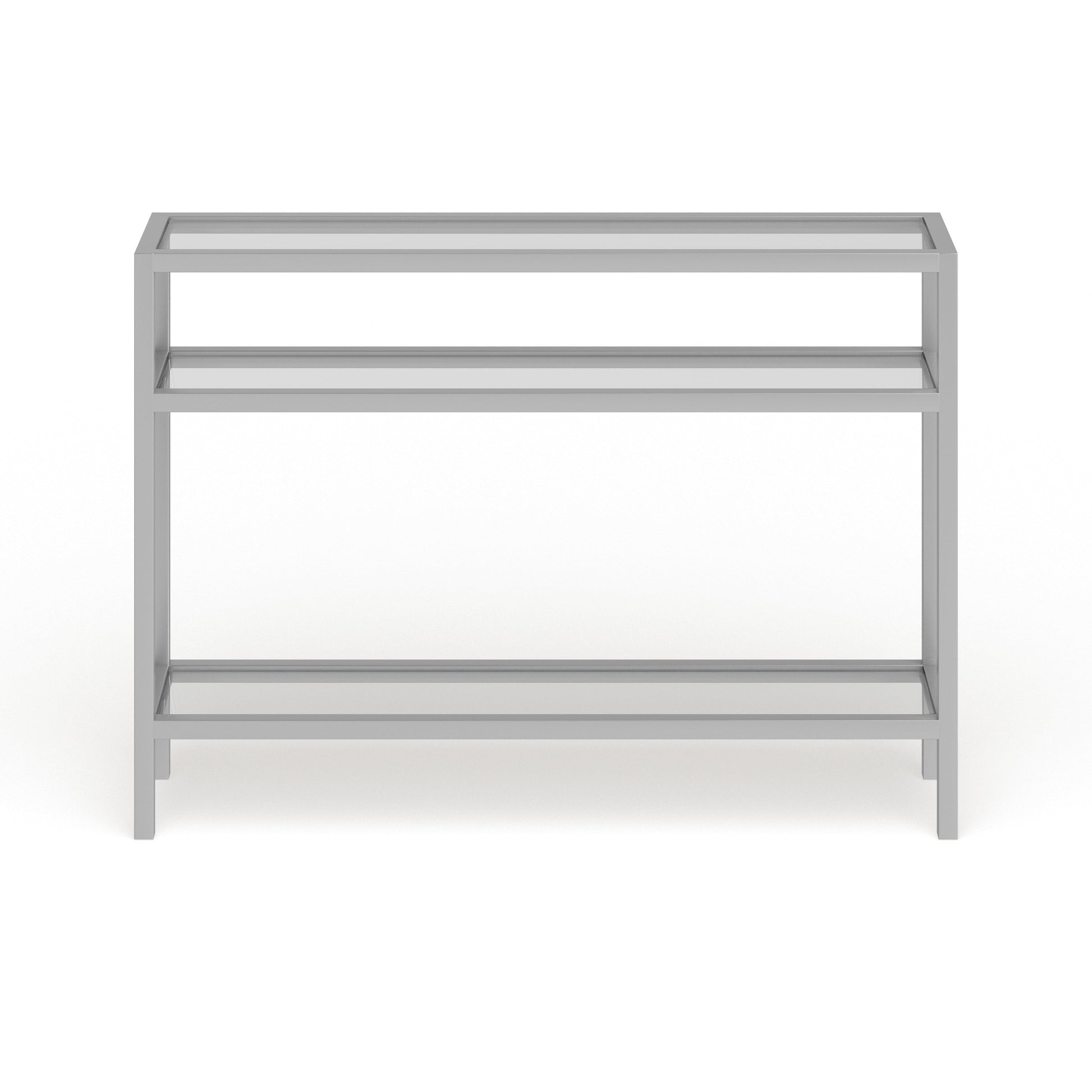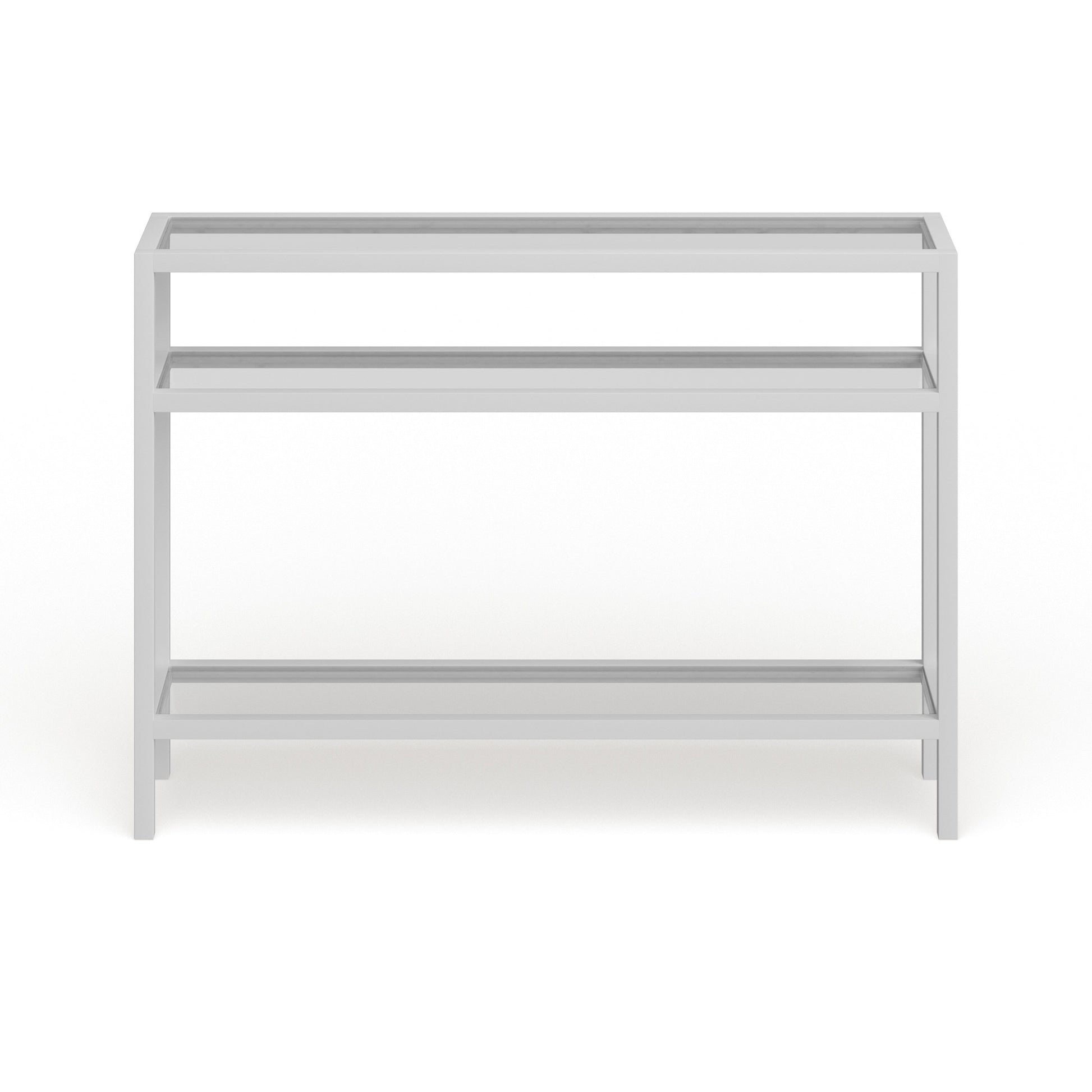 Apportez une touche d'élégance à votre intérieur avec la console Sivil. Sa structure robuste en acier est disponible en bronze noirci, laiton doré, nickel satiné ou blanc, s'harmonisant ainsi avec tous les styles de décoration. Les plateaux et étagères en verre transparent ajoutent une note contemporaine à votre intérieur.