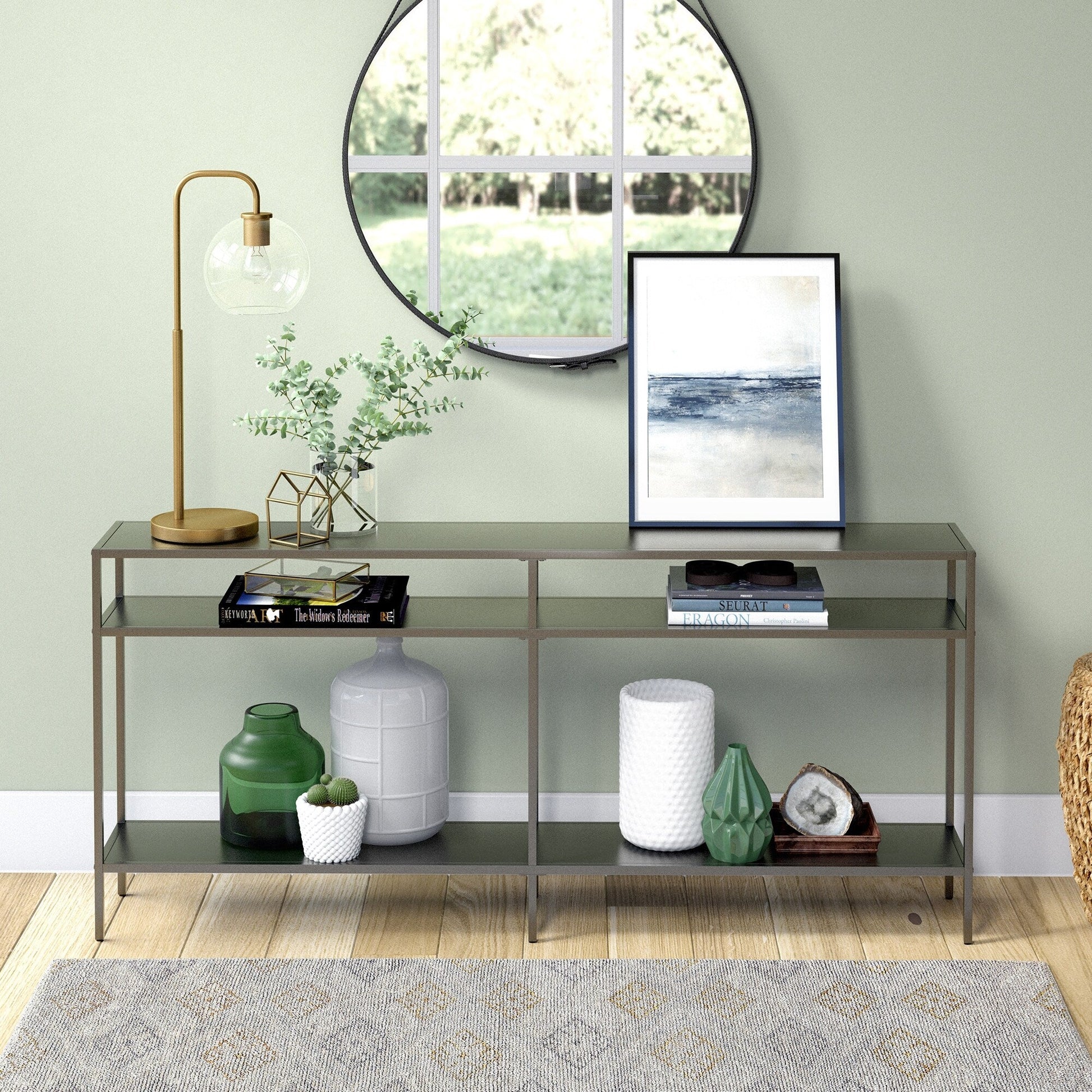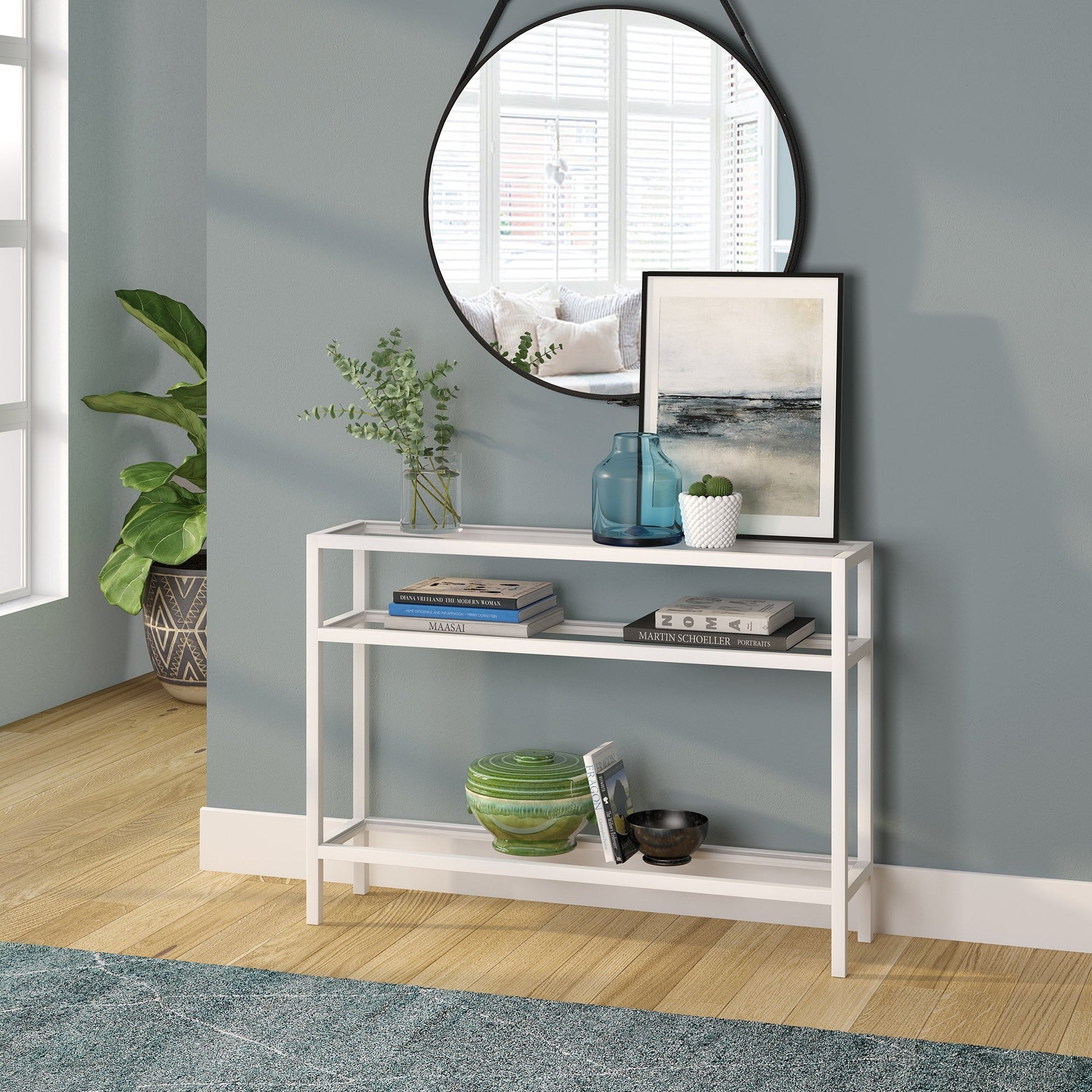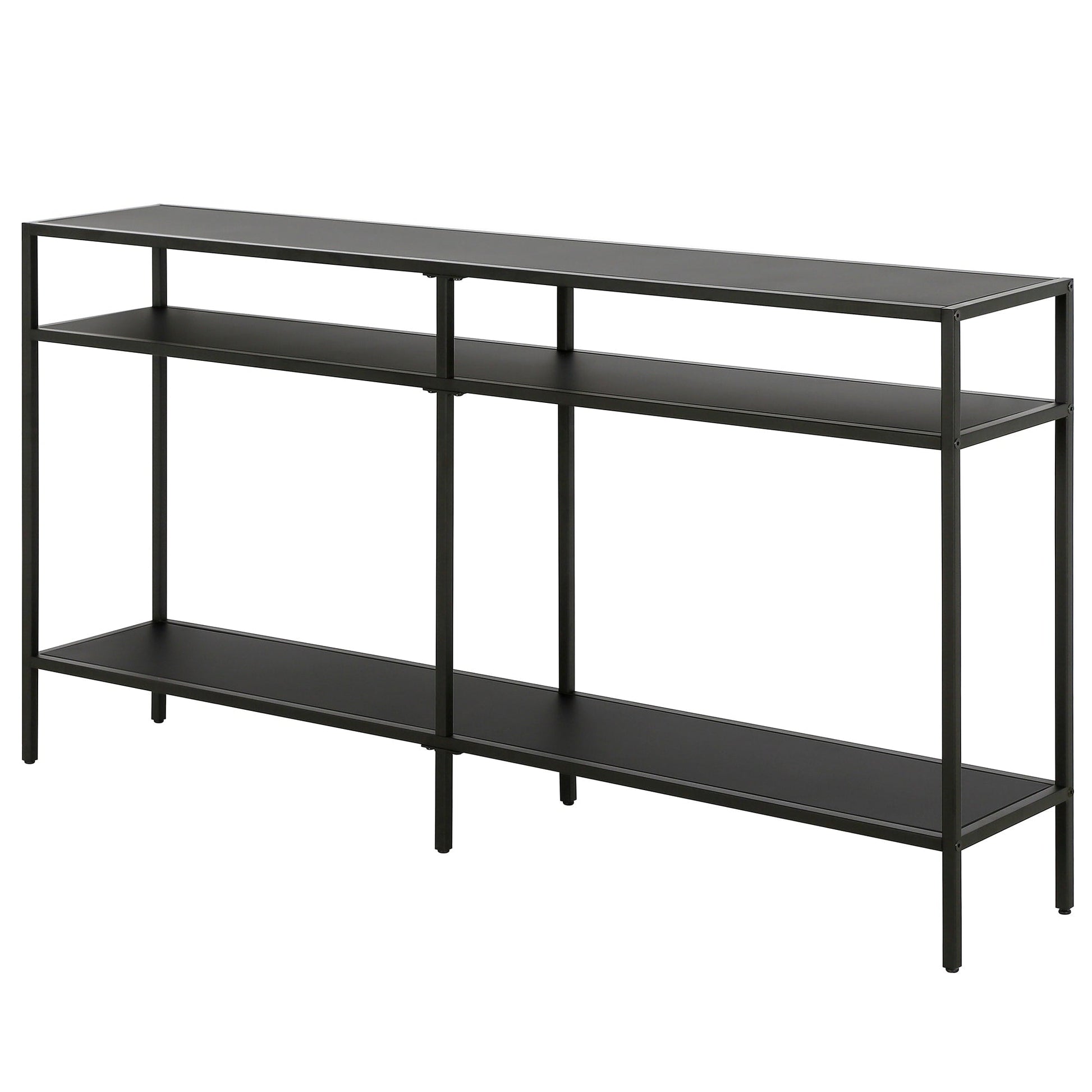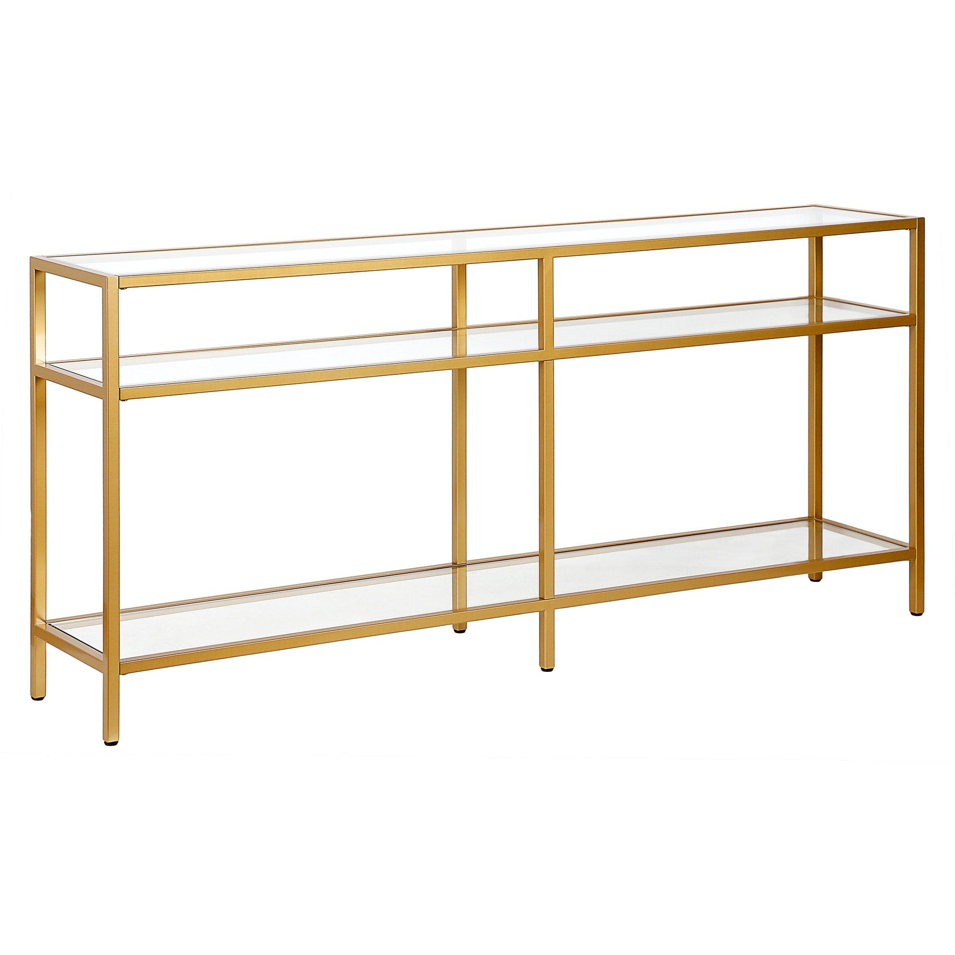 Apportez une touche d'élégance à votre intérieur avec la console Sivil. Sa structure robuste en acier est disponible en bronze noirci, laiton doré, nickel satiné ou blanc, s'harmonisant ainsi avec tous les styles de décoration. Les plateaux et étagères en verre transparent ajoutent une note contemporaine à votre intérieur.