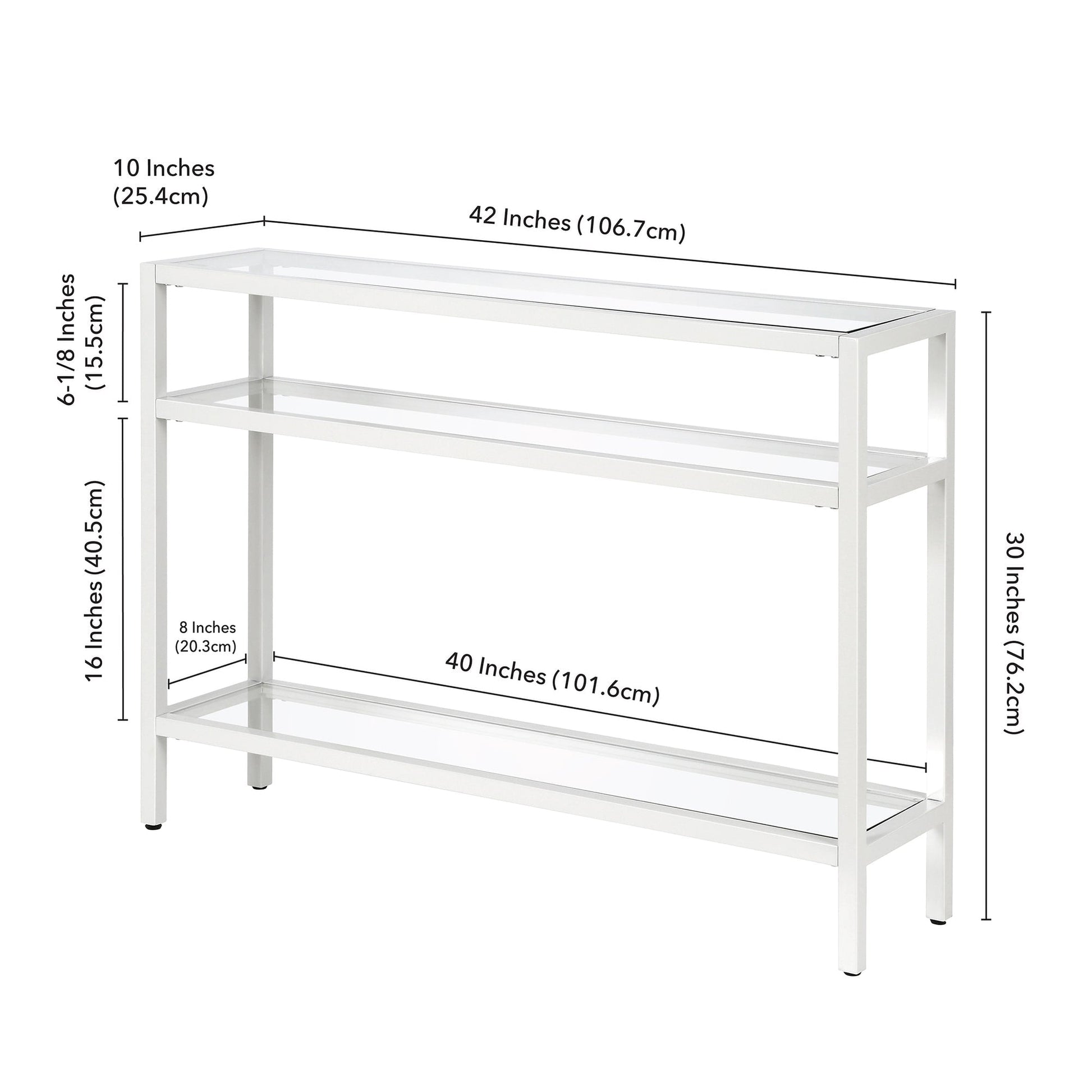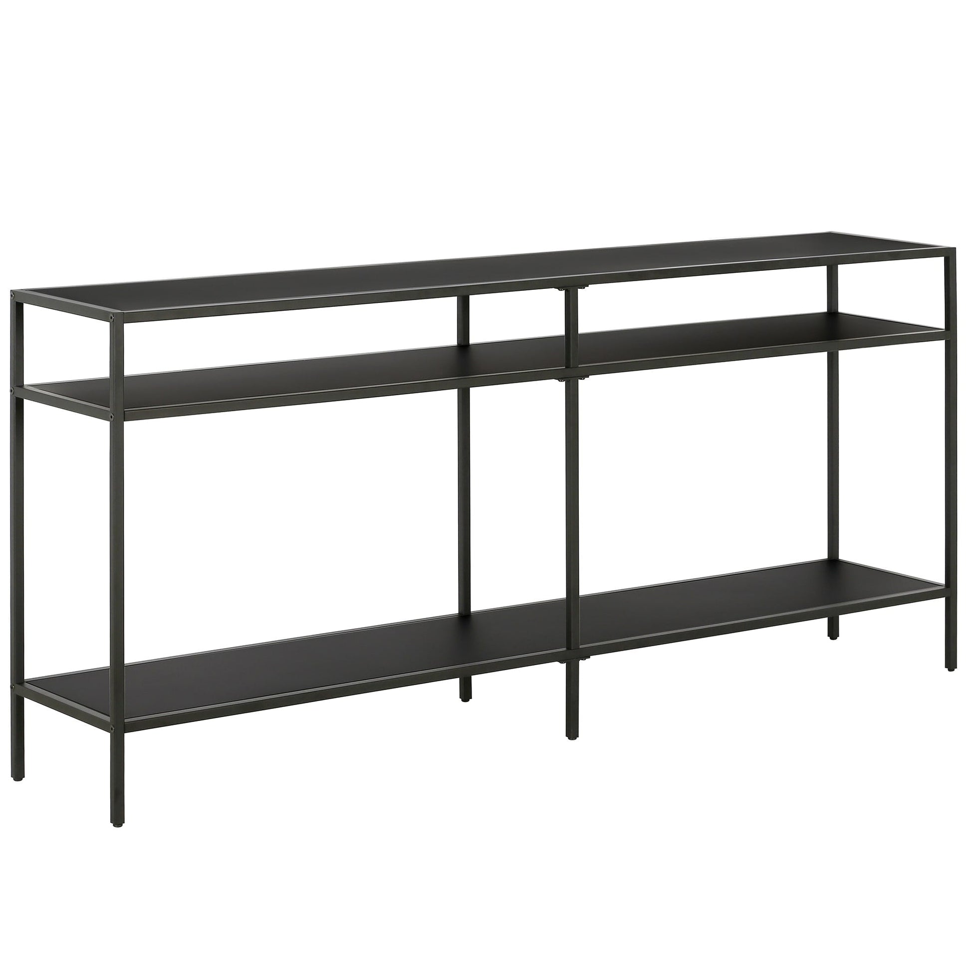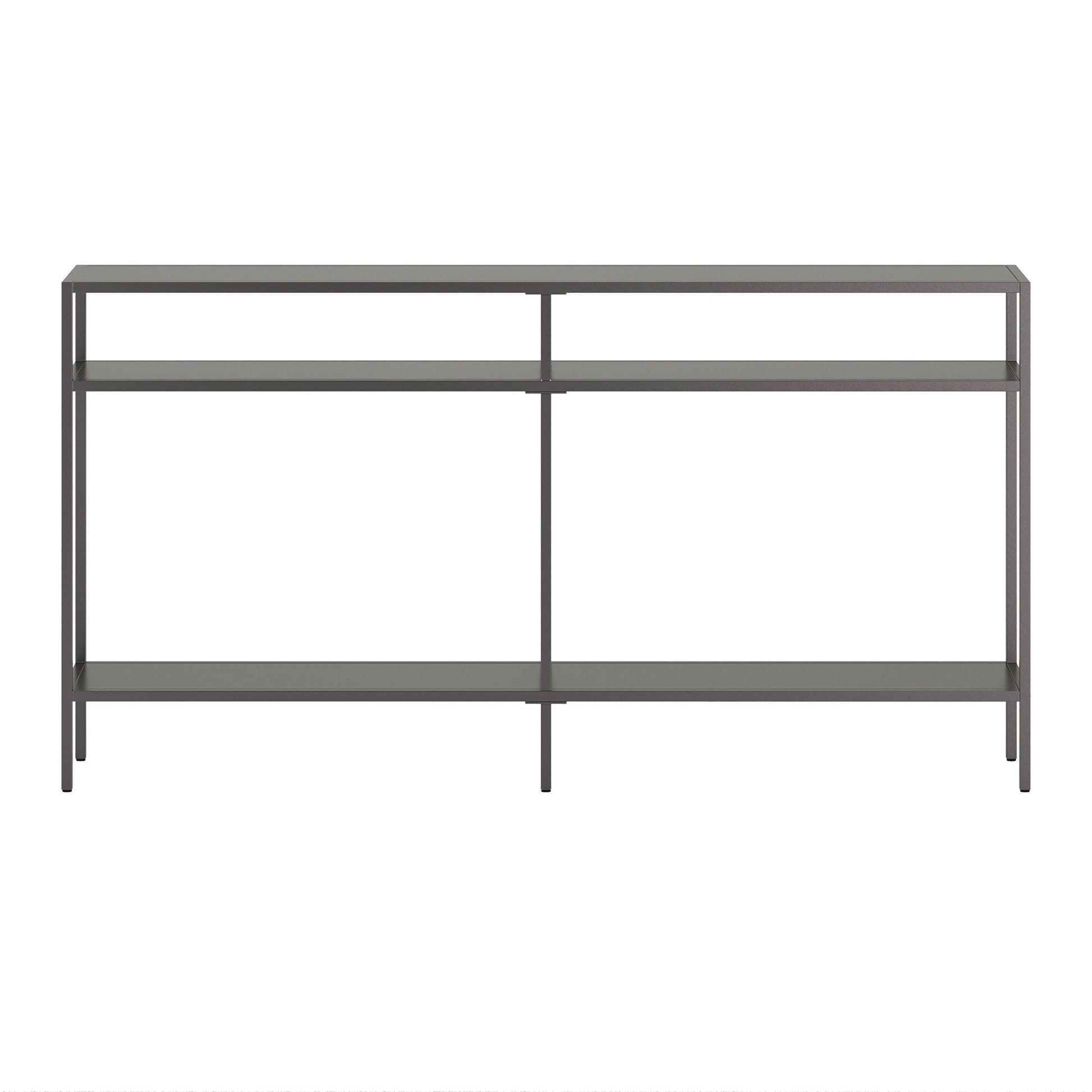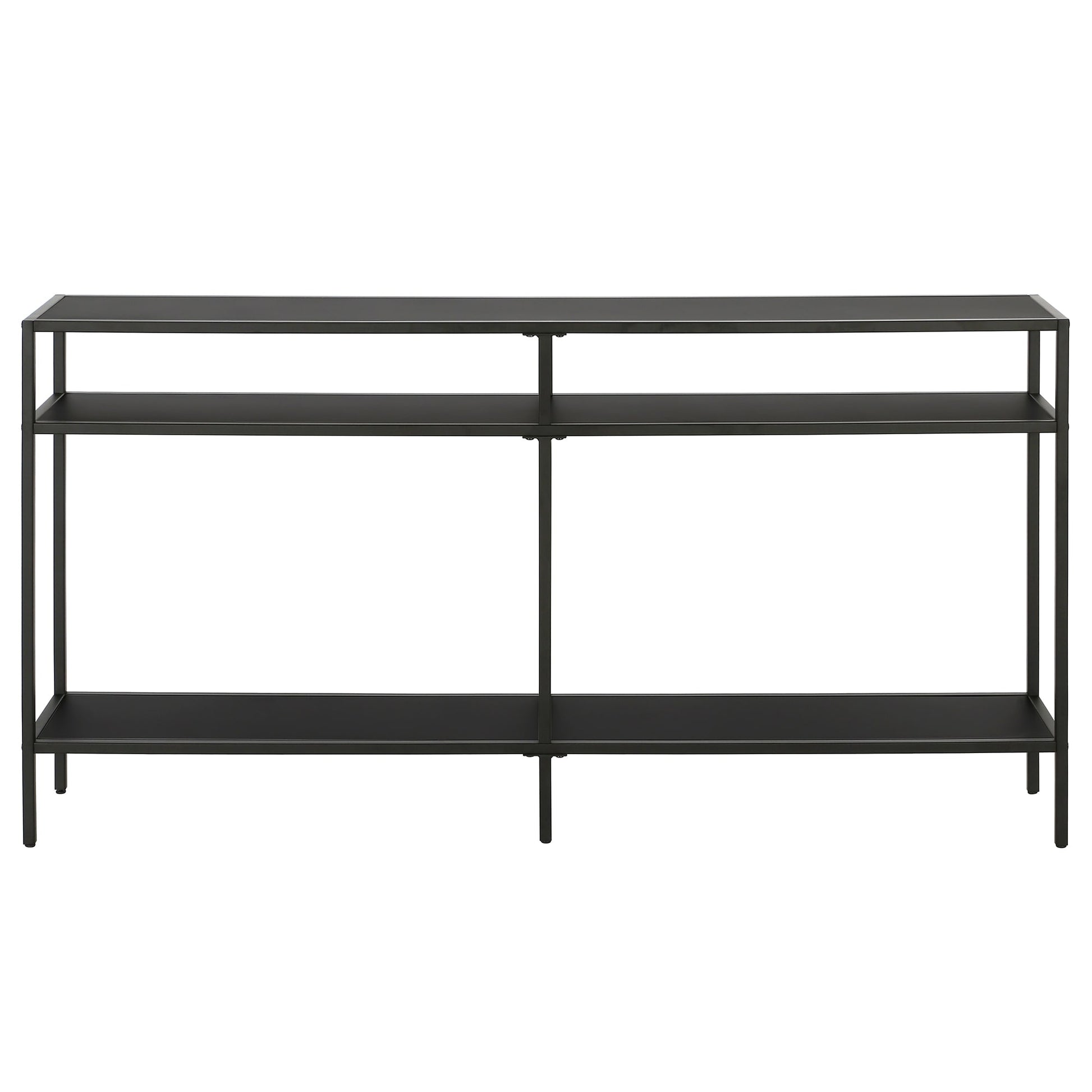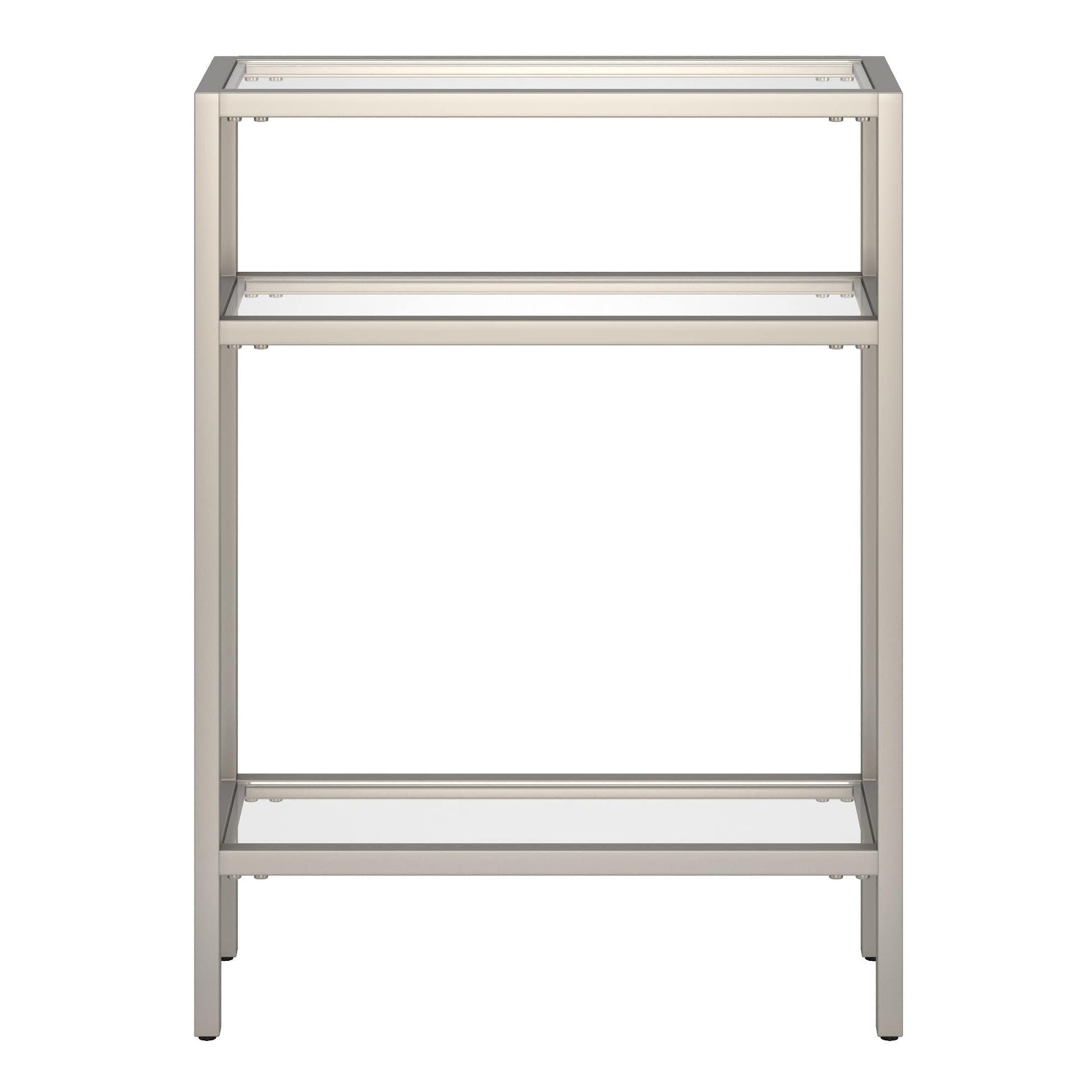 Apportez une touche d'élégance à votre intérieur avec la console Sivil. Sa structure robuste en acier est disponible en bronze noirci, laiton doré, nickel satiné ou blanc, s'harmonisant ainsi avec tous les styles de décoration. Les plateaux et étagères en verre transparent ajoutent une note contemporaine à votre intérieur.