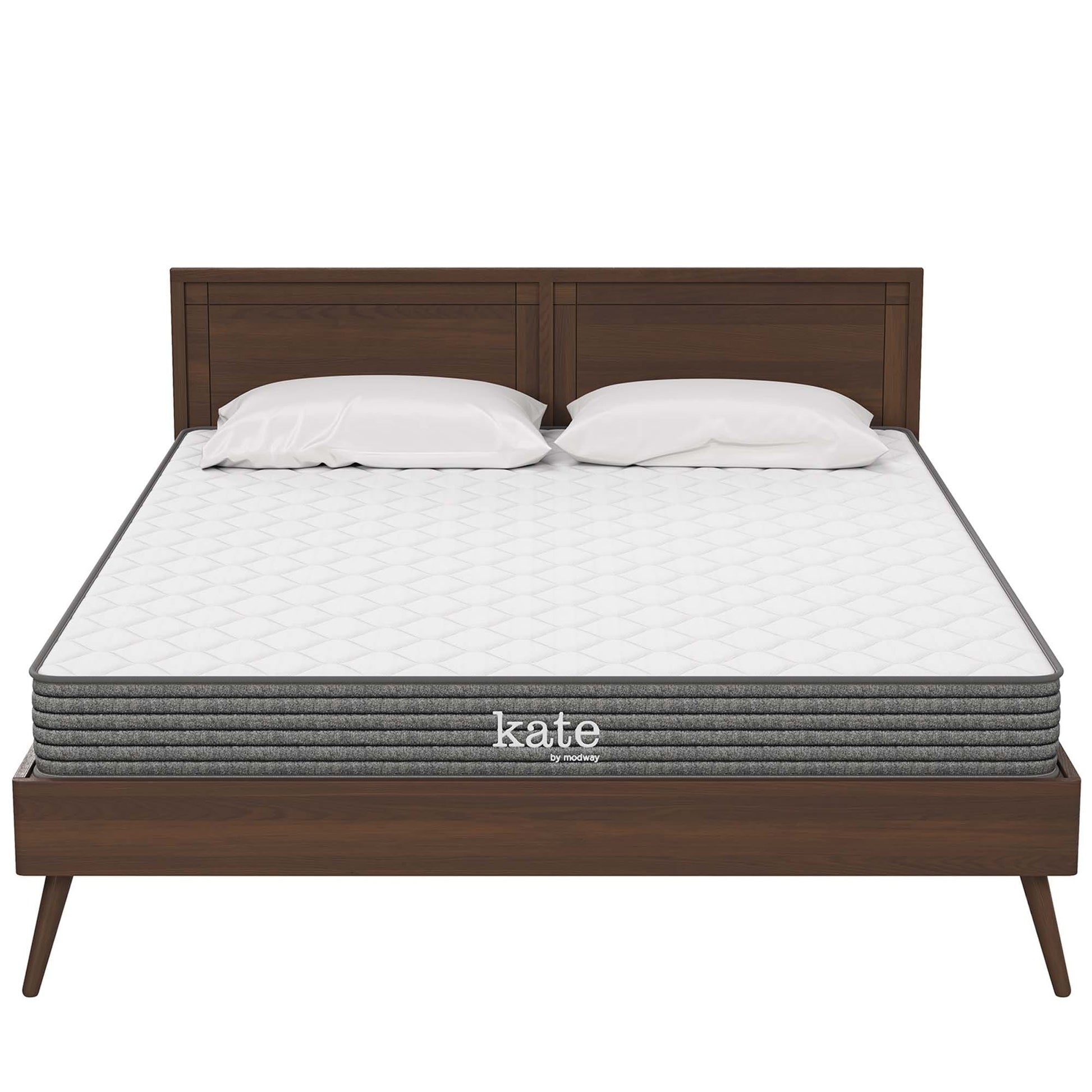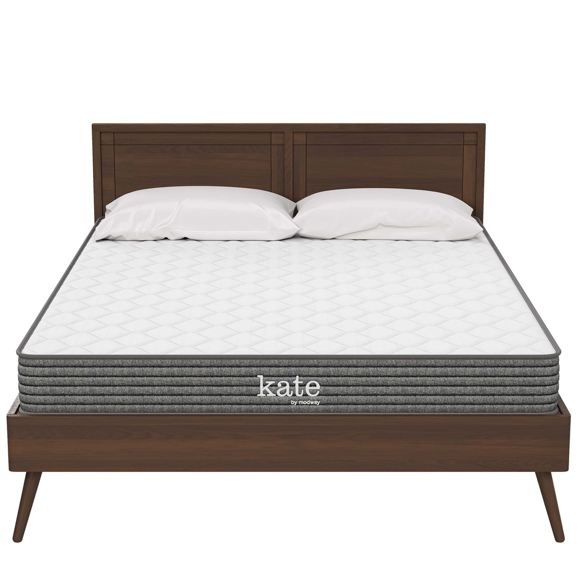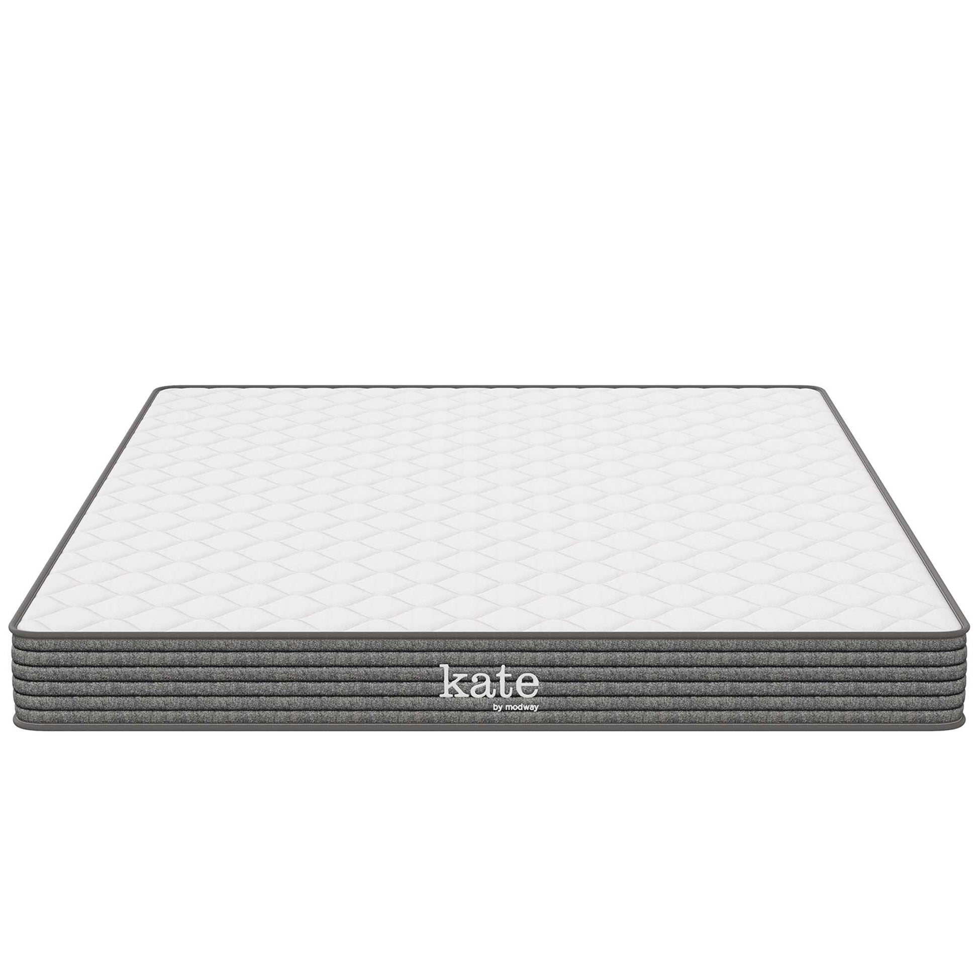 Get a good night's sleep with the Kate Mattress, designed with comfort in mind. Featuring a spring system that combines the classic buoyancy of steel springs with a luxurious cushioning foam layer, this mattress is supportive and plush. Enhancing comfort, Kate boasts two felt liners, one placed above the springs and one below, to evenly distribute weight and relieve pressure on hips, back, and shoulders. Complete with a gray fabric fire-resistant barrier that has been tested to ensure it meets safety standards, the Kate Mattress is perfect for all bedrooms. Shipped conveniently compressed and rolled within a portable box for straightforward delivery and setup, it typically takes 2 to 3 hours for the mattress to fully expand. This mattress comes backed by a 10-year warranty. Box spring or foundation is optional.
