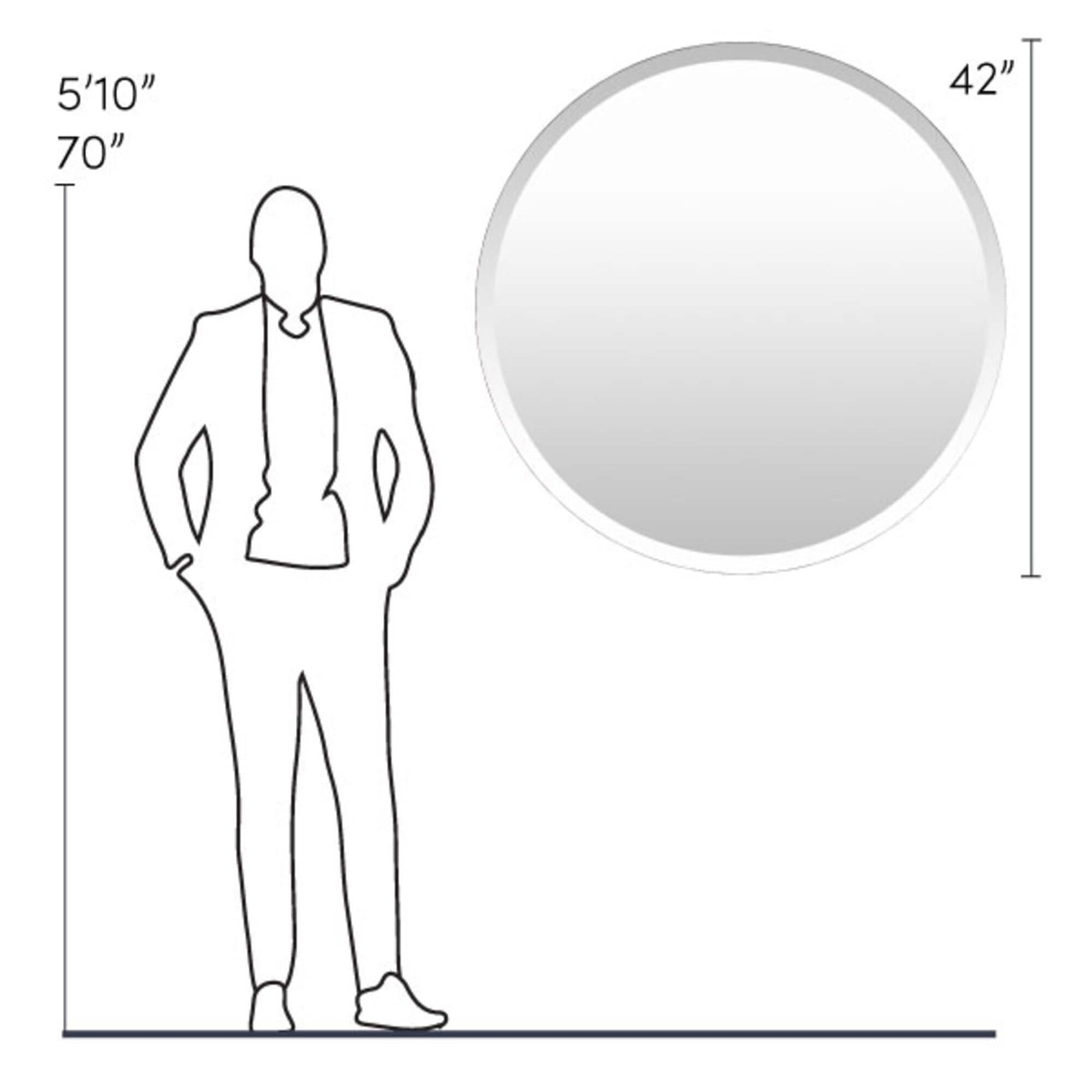 The familiar circle silhouette of the Mei Modern Beveled Round Mirror is ideal for contemporary spaces needing a bit of reflection. Simplicity is key to the beauty of this mirror. Beveled glass adds an elegant touch. Made in China. Wipe with a clean cloth.