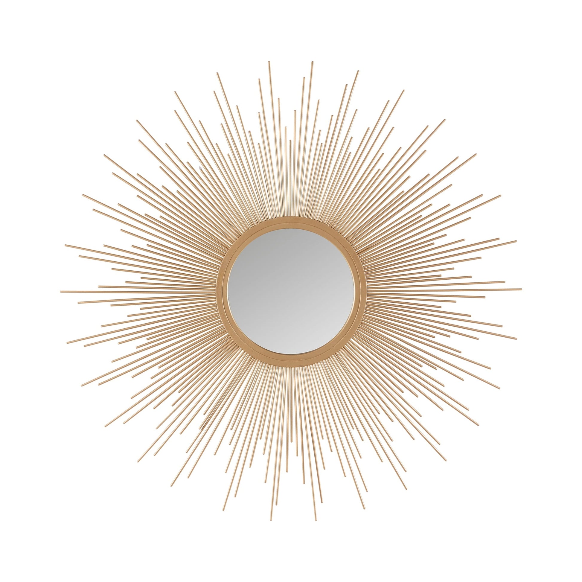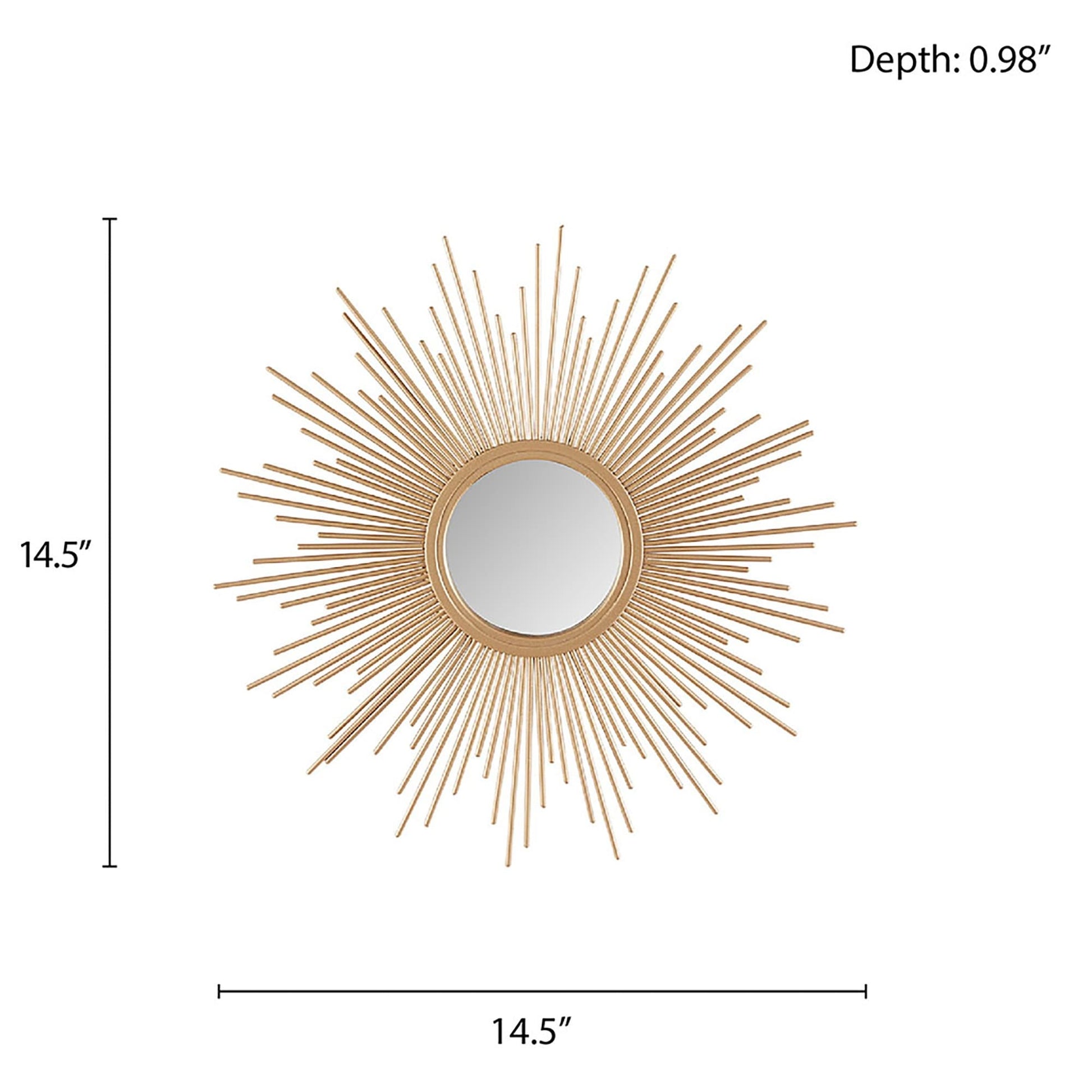 Add a modern and glamorous touch to your space with our Madison Park Sunburst Mirror. A stylized iron frame is featured in a sphere design creating beautiful dimension, while the metal foil adds a rich sheen and luster. The keyhole hanger feature on the reverse of the mirror allows for effortless hanging on your wall. Incorporate this wall mirror into your decor, for the perfect combination of chic luxe and metallic flair. Mirror is sold as a single piece and does not come as a set; Handle with care; Gently wipe clean with a damp cloth