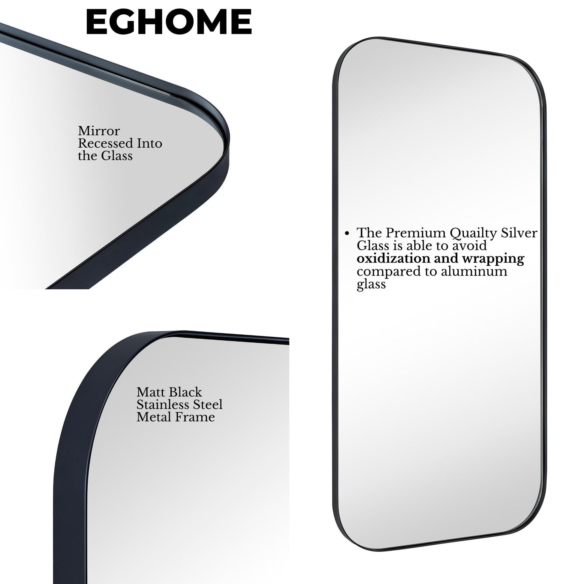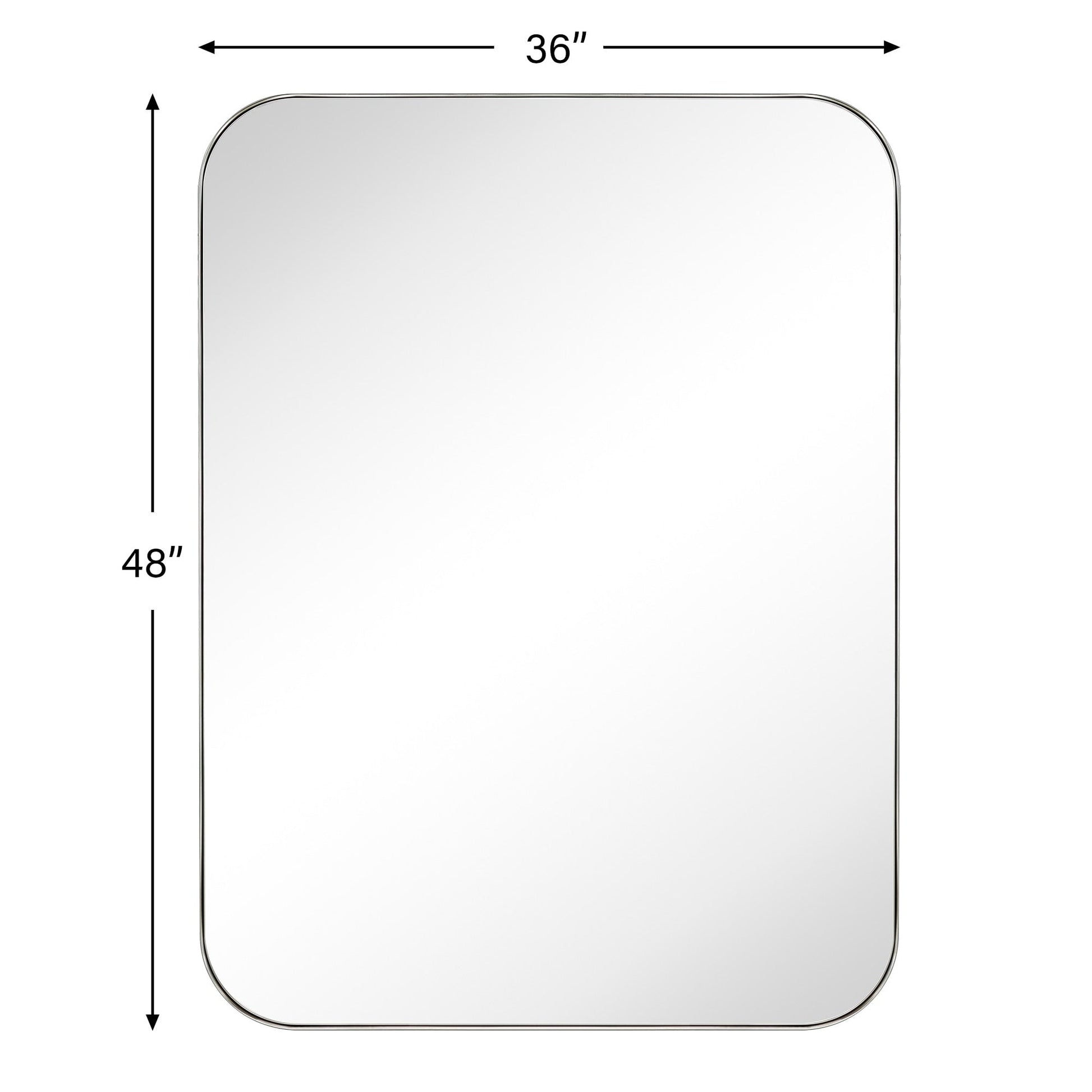 This contemporary and farmhouse style metal rectangle round corner large mirror matches any room and any decor perfectly. With the stainless steel metal framing, it is super safe to hang as a bathroom vanity mirror. Let us enhance the beauty of any room in your home instantly.