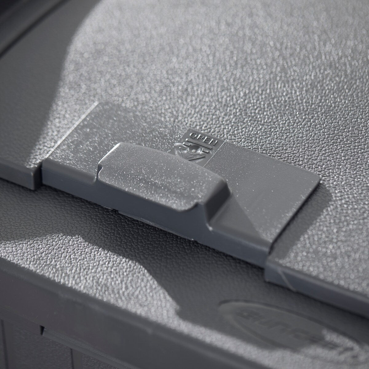 • Built with a secure latching lid to keep the trash inside and protected from the elements and unwanted critters