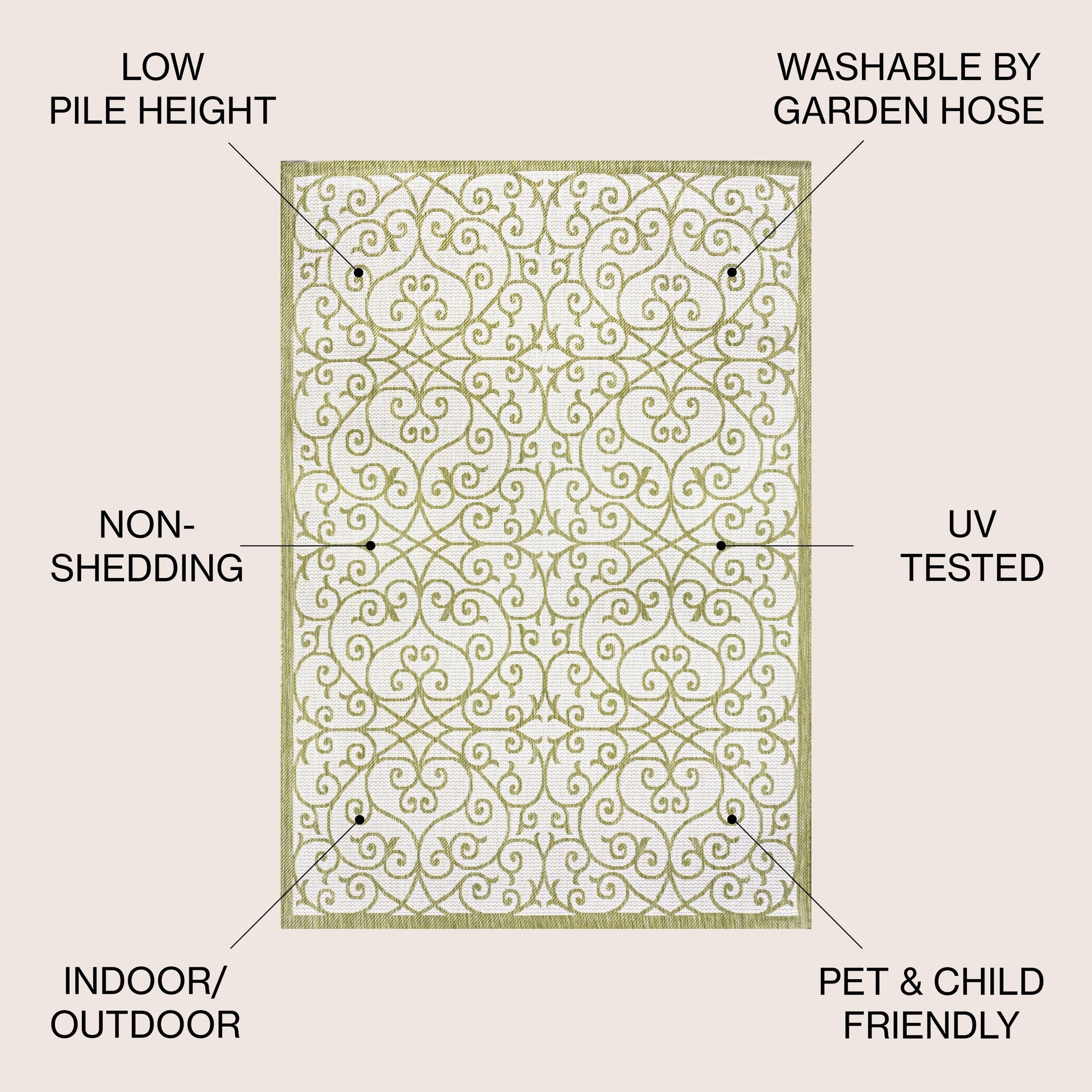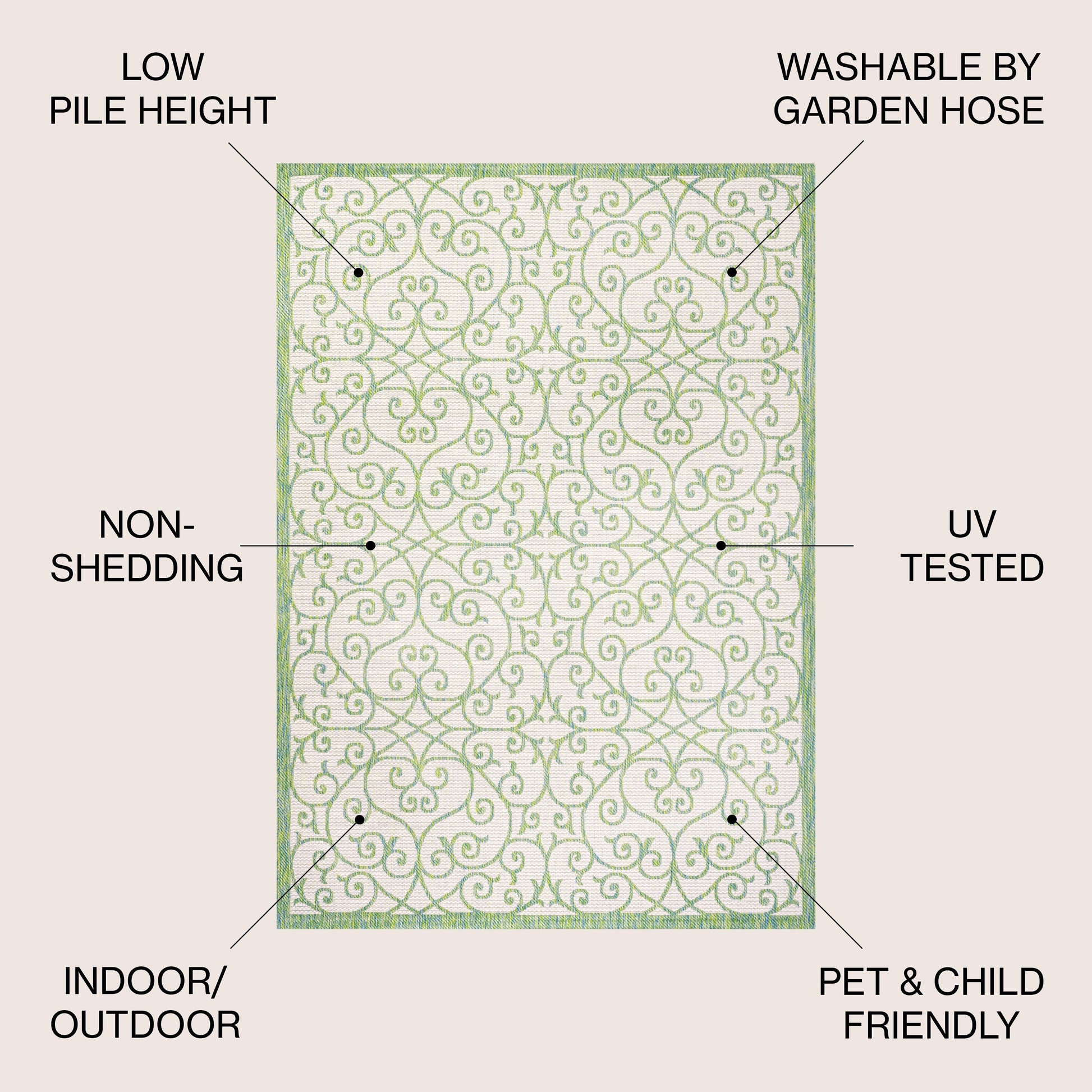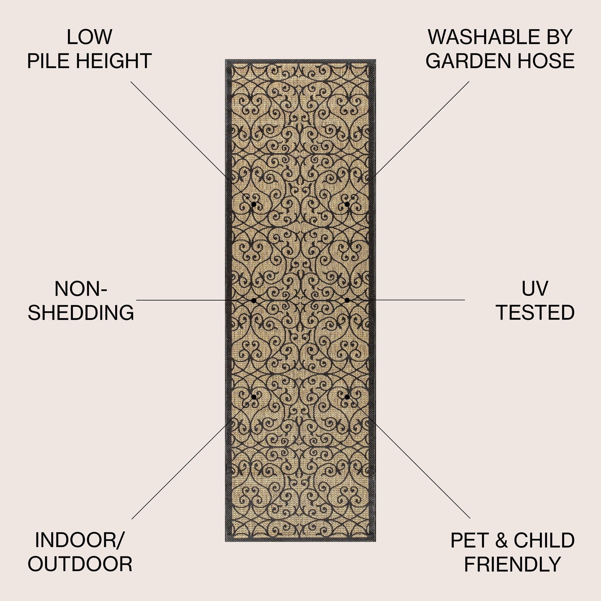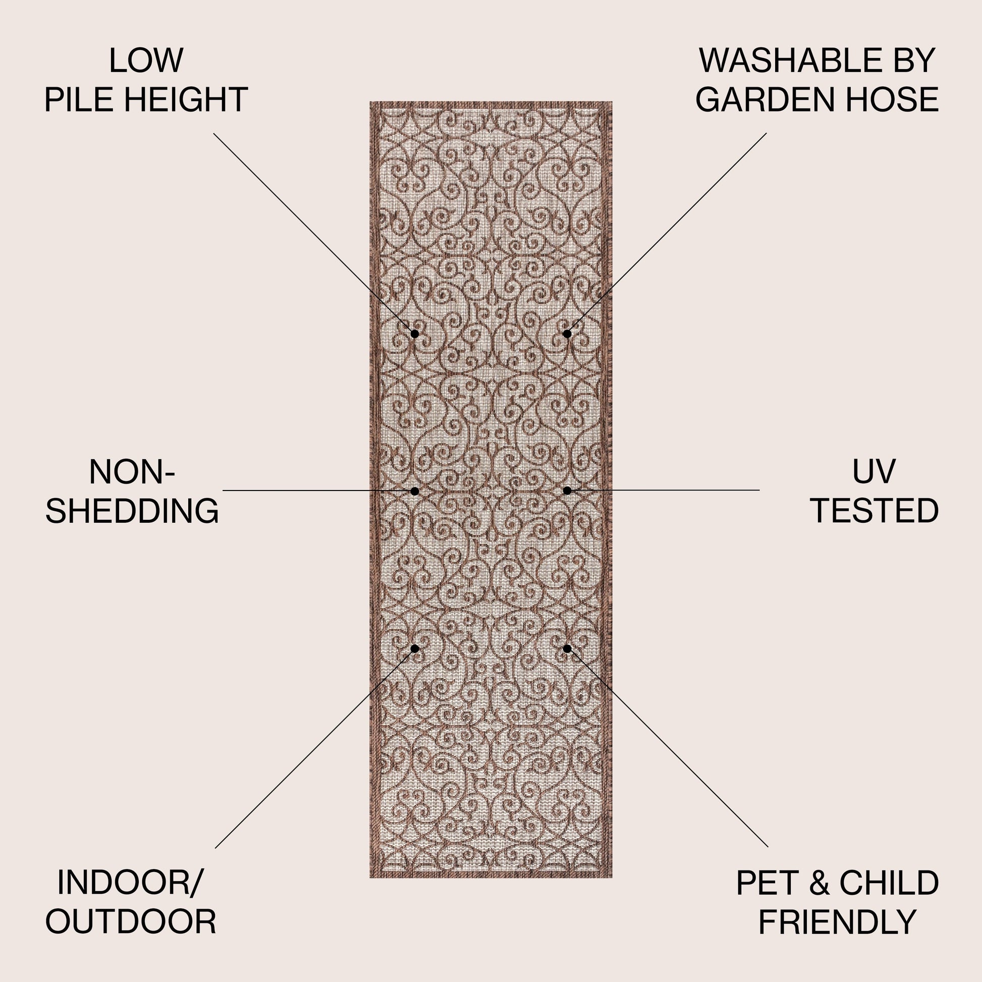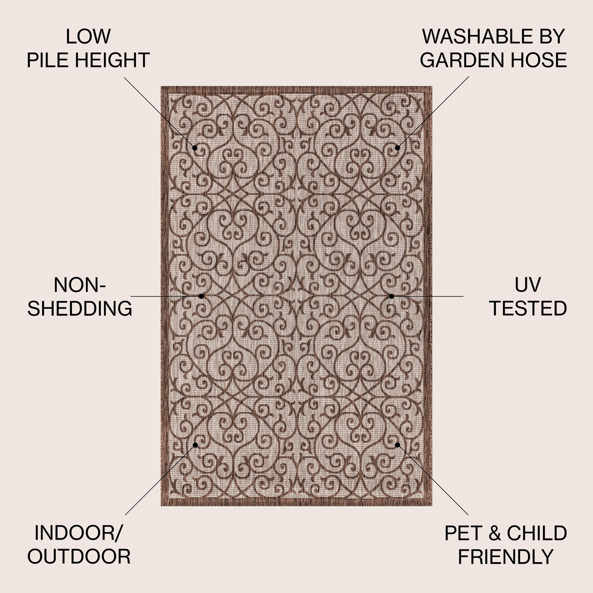 Apportez une touche bohème chic à votre espace extérieur ou intérieur avec le tapis JONATHAN Y Ourika Vintage Filigree Textured Weave. Inspiré du fer forgé espagnol, ce tapis arbore un motif filigrané dans des tons beiges et bruns, rehaussé de motifs noirs pour une ambiance vintage. Fabriqué à 100 % en polypropylène, ce tapis tissé à plat est résistant à l'eau et durable, idéal pour les zones de passage fréquent. Disponible en plusieurs tailles et coloris, il est tissé mécaniquement en Turquie et possède une épaisseur de 4,8 mm.