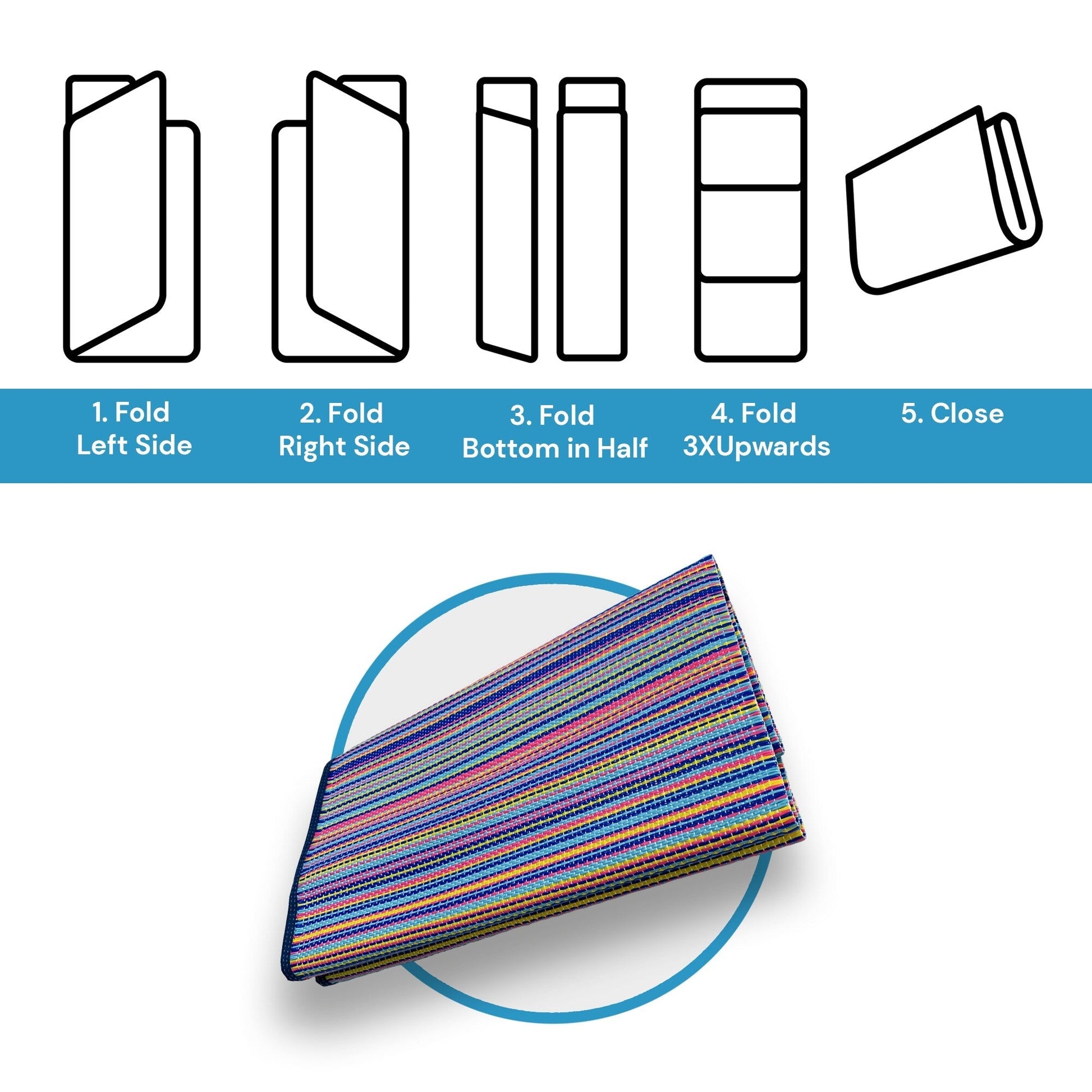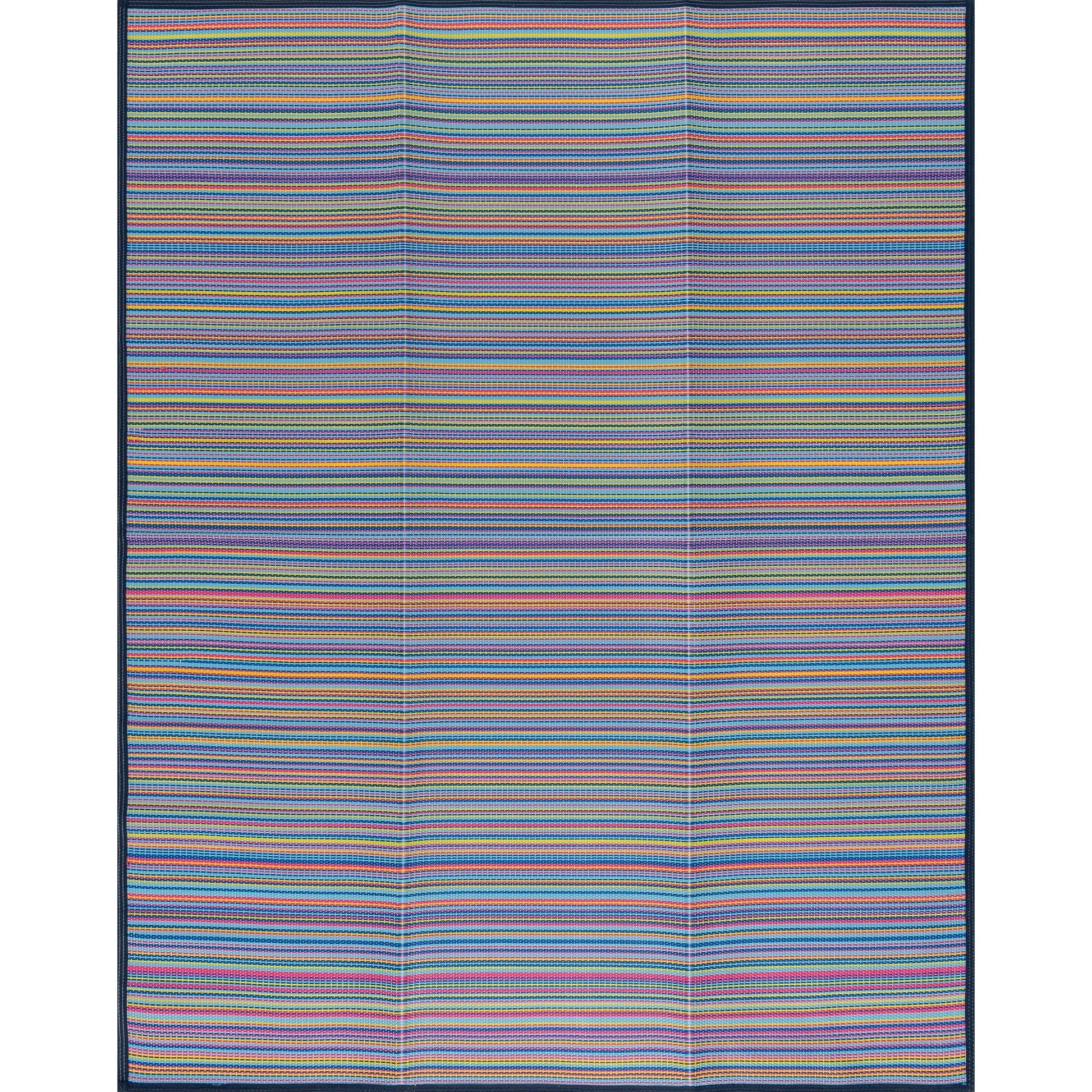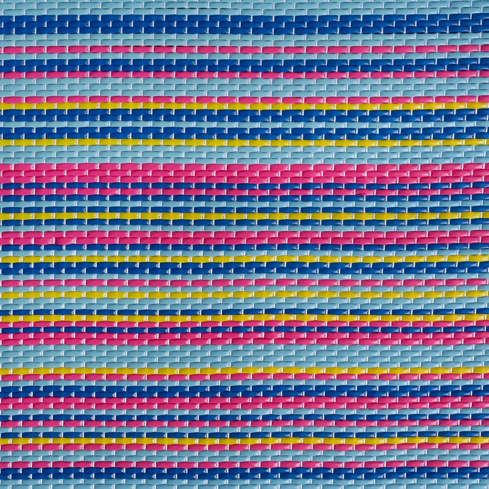 Ce tapis d'extérieur pliable, imperméable et multi-usage est idéal pour toutes vos aventures. Portable et réversible, il est parfait pour la salle de jeux, le sport, la piscine, le camping ou les pique-niques. Son motif à rayures colorées lui confère un charme unique. Naturellement résistant aux taches et sans traitement supplémentaire, il convient aux enfants et aux animaux. Aspirez-le ou secouez-le pour enlever les débris. Nettoyez les taches localement ou lavez-le à l'eau ; rincez-le au jet d'eau. Laissez-le sécher complètement.