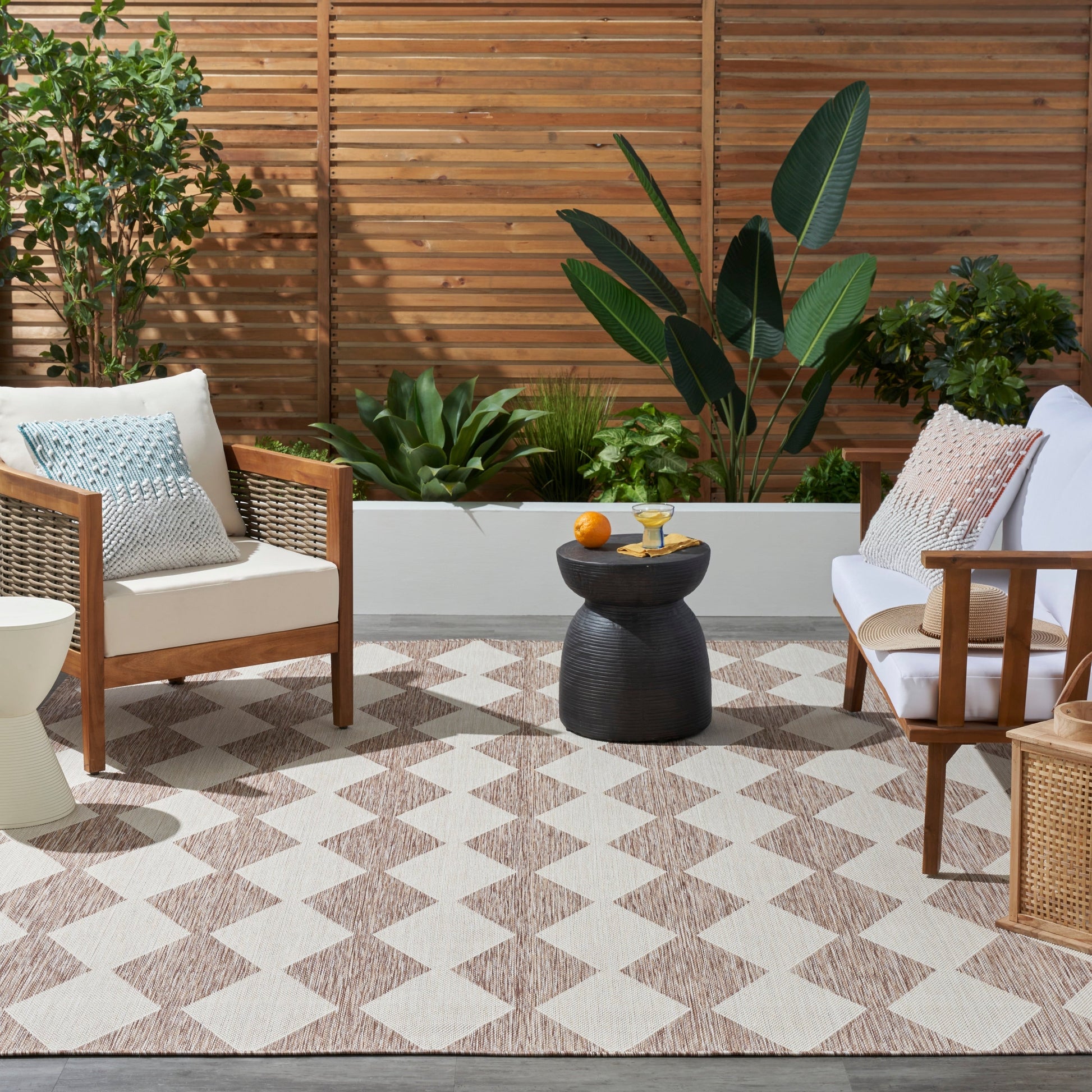 - Checkered diamond outdoor rug adds an instant pop of bold style both in and outside