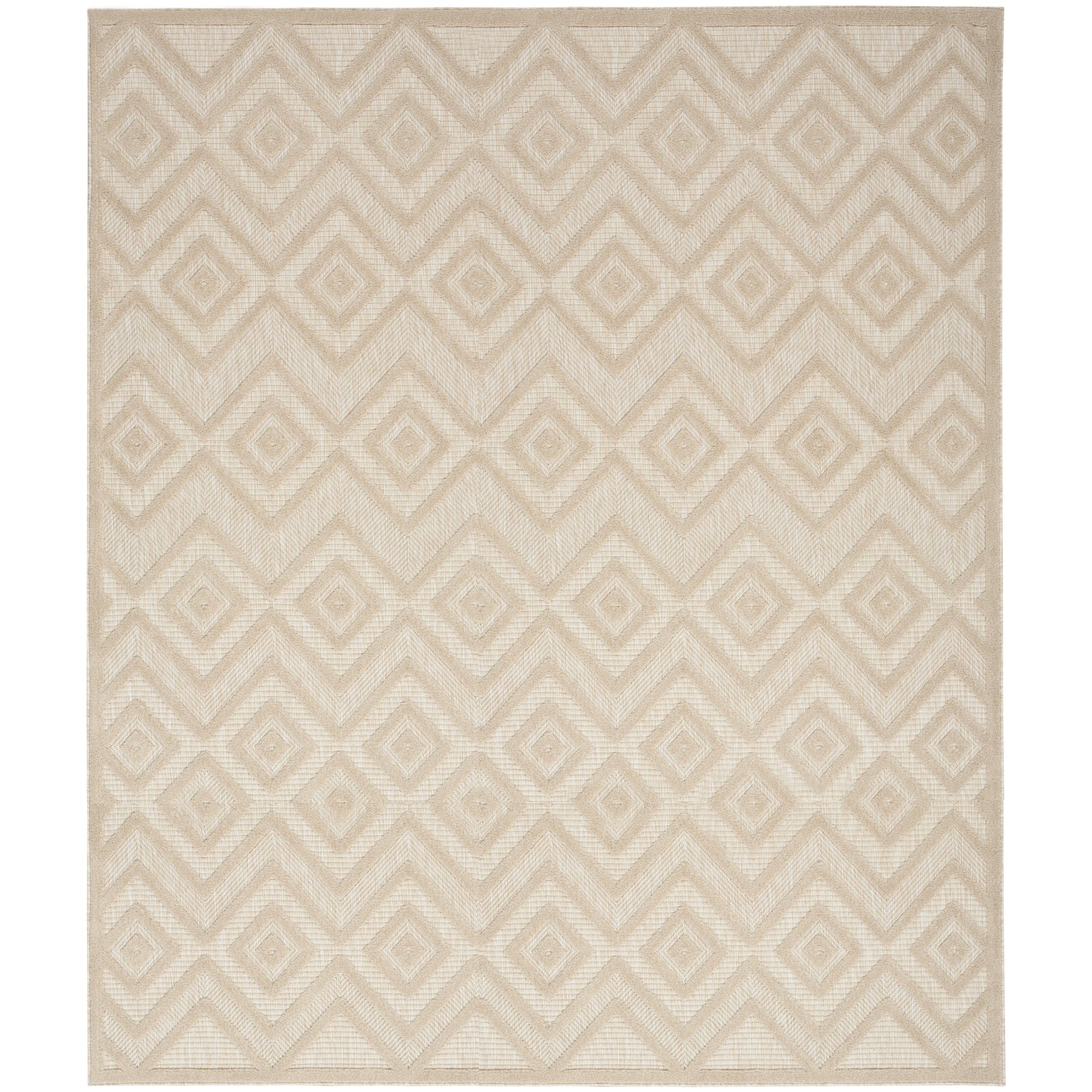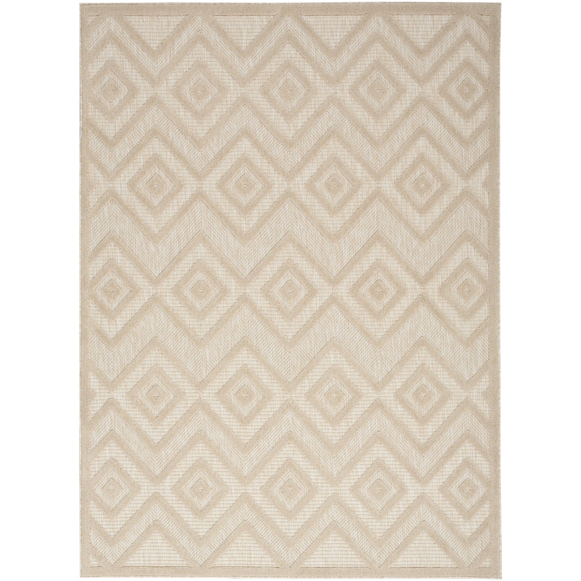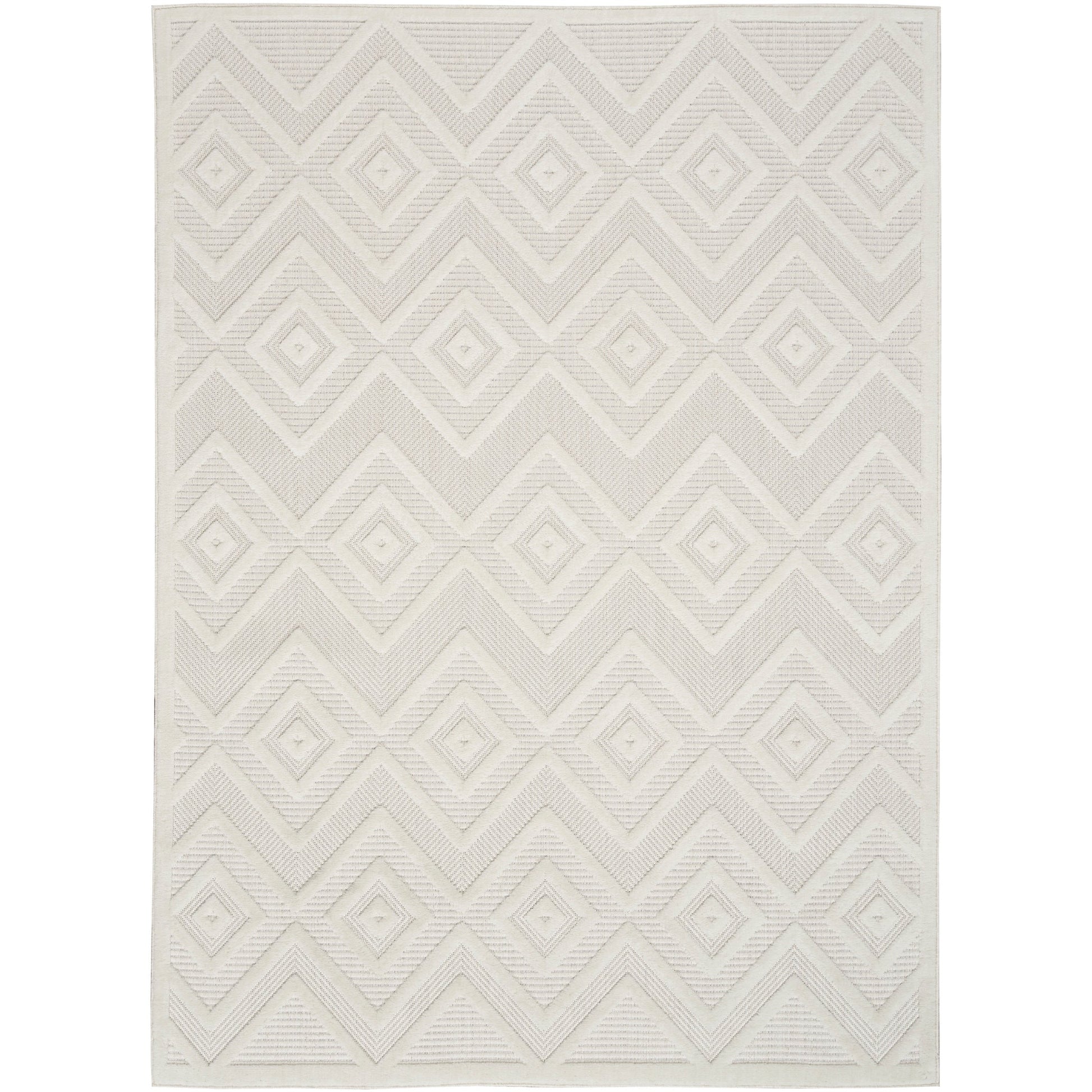 Elevate your indoor or outdoor decor with the contemporary style of the Nourison Versatile Indoor/Outdoor Geometric Flatweave Area Rug. The high-low flatweave texture features raised designs that feel incredibly soft to the touch, adding depth to any space. Made from a durable blend of polypropylene and polyester fibers, this machine-made rug is easy to clean with just a hose rinse and air dry. Its versatile design complements both indoor and outdoor seating arrangements, and it is suitable for all seasons spent outdoors. During extreme weather, bring it indoors. Rug pad recommended.