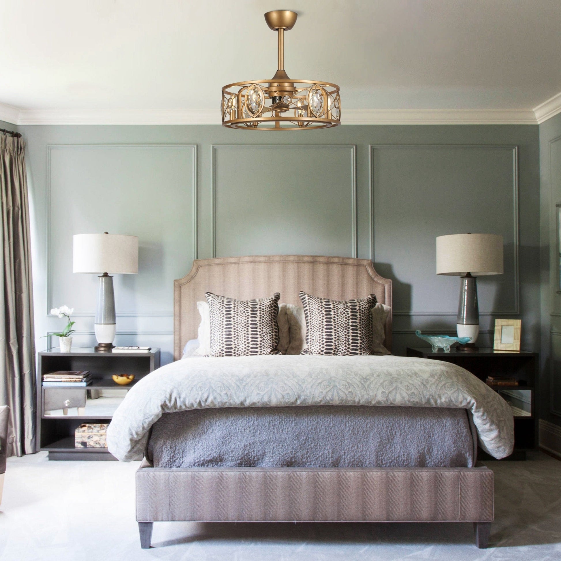 Lustre moderne en cristal avec ventilateur de plafond...