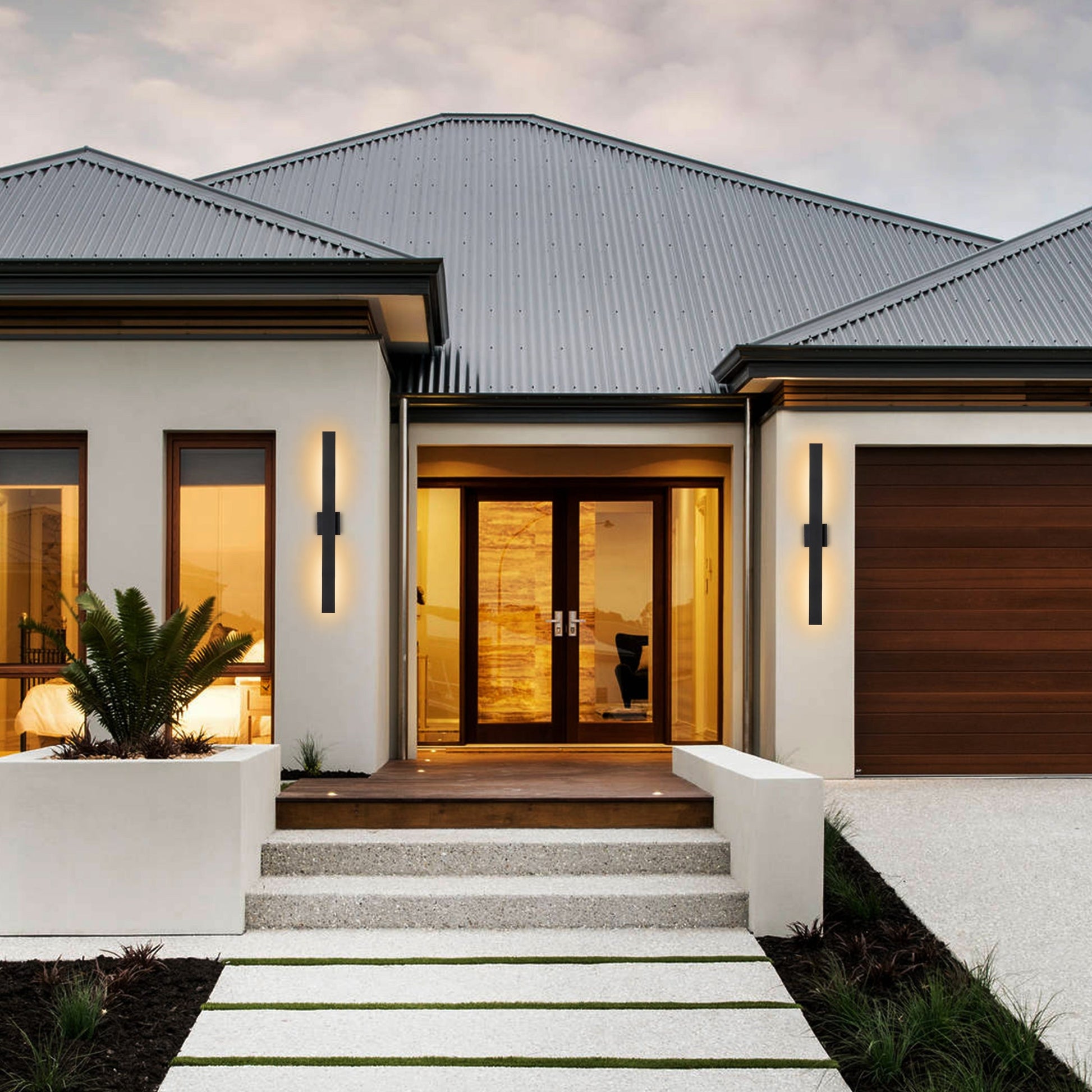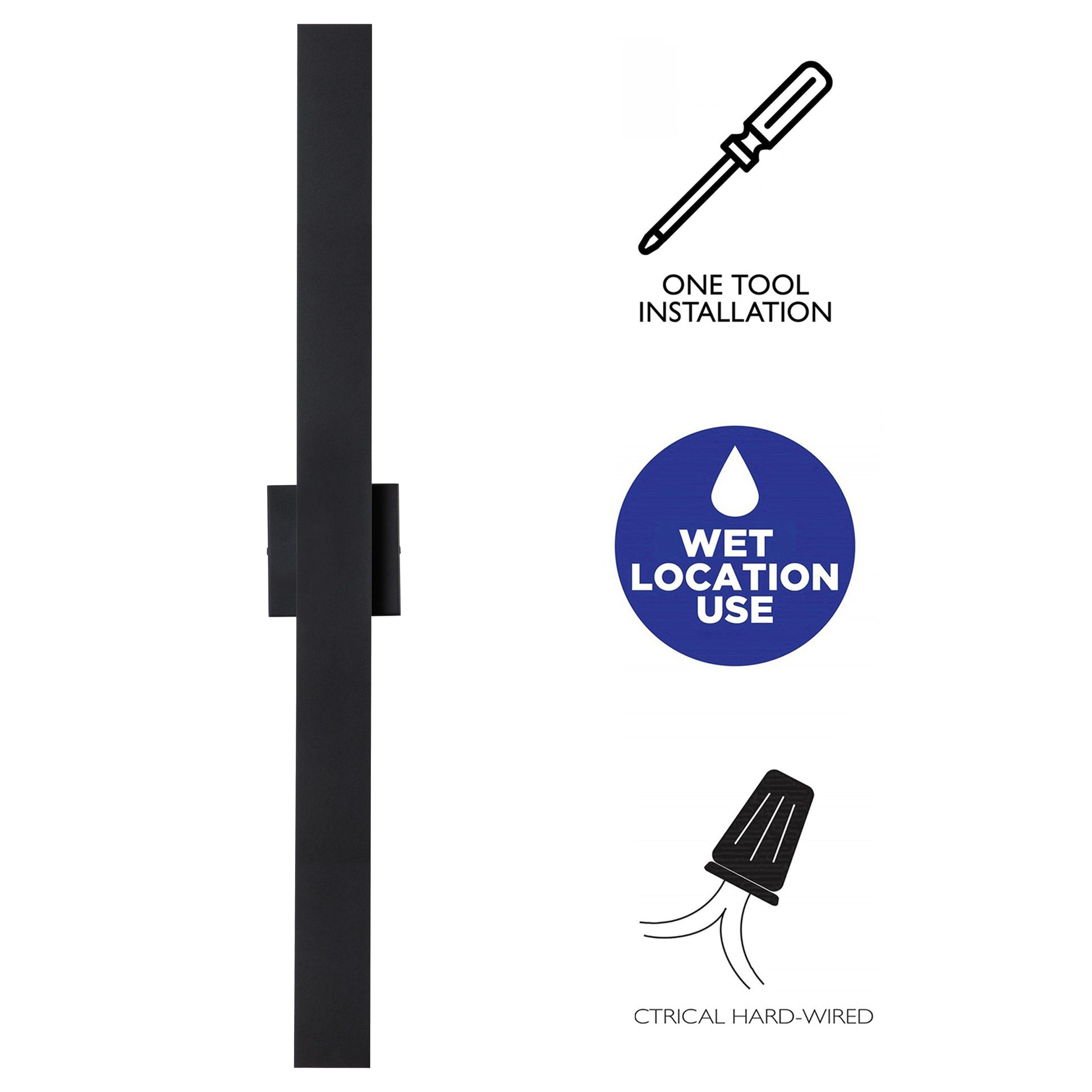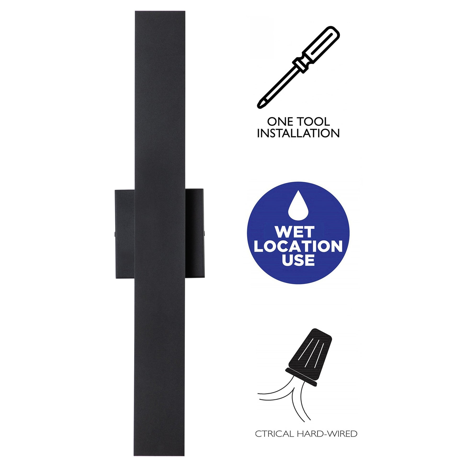 The seamless, unified design of this modern black outdoor wall light elevates minimalism to a new level. Stunning in an ultra-sleek contemporary living space, it features a flat, vertical panel with a black finish that conceals frosted glass diffusers. Delivering exceptional style and energy-efficient illumination, this sconce is perfect for an entryway or bedroom.