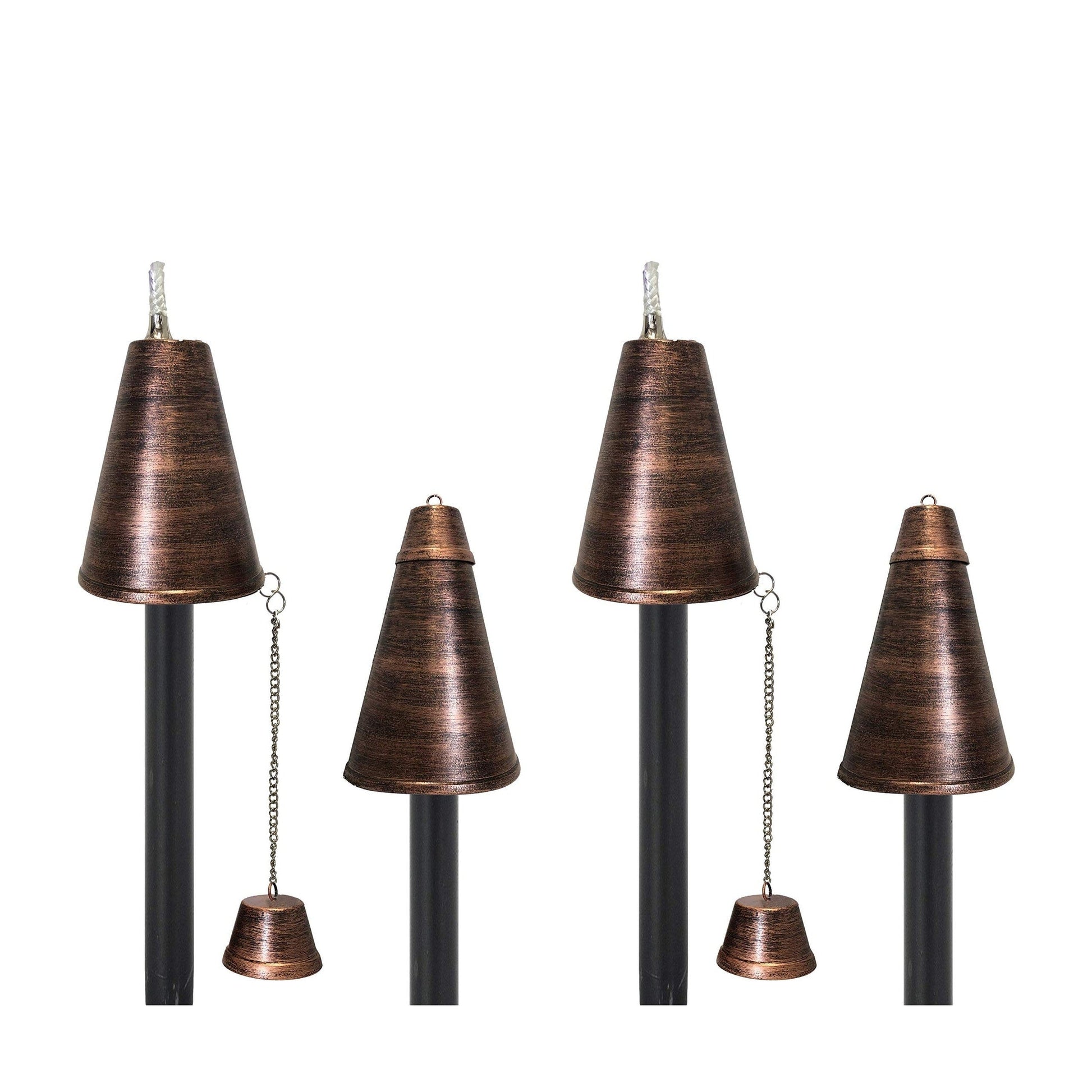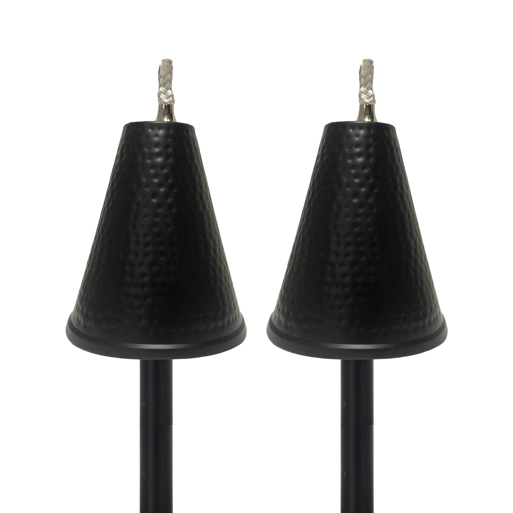 Our tiki-style torches have a 3-piece black steel pole of 54' made to resist the elements, and the included bowl has an easy-to-access fill port with a wing-style cap for safe, mess-free refuel in each bowl, which can hold up to 60 Oz that can burn for more than 40h!
