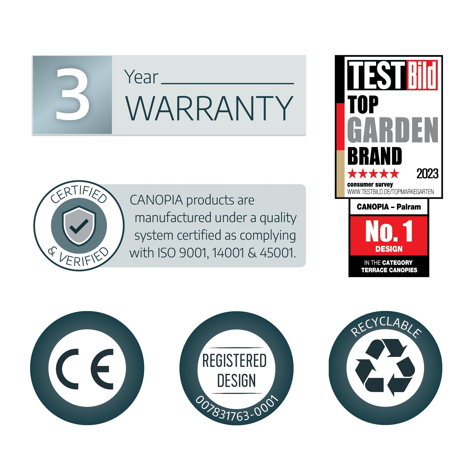 Le store banne Sophia incarne le style moderne et la fonctionnalité. Conçu avec précision, ses lignes épurées et son design minimaliste, son cadre en aluminium gris et ses panneaux transparents, créent un effet visuel saisissant et accueillent vos résidents et invités. Ce store banne aux lignes épurées est doté d'un système de vitrage étanche et sans vis, avec gouttière intégrée dissimulée pour évacuer l'eau de pluie. Les panneaux transparents sont naturellement insensibles aux rayons UV nocifs. Ultra-résistant, ce store banne est facile à installer et conçu pour résister aux intempéries, vous protégeant ainsi, vous, vos biens et votre porte pendant de nombreuses années. Avec le store banne Sophia, vous obtenez la protection dont vous avez besoin, avec le style que vous souhaitez.