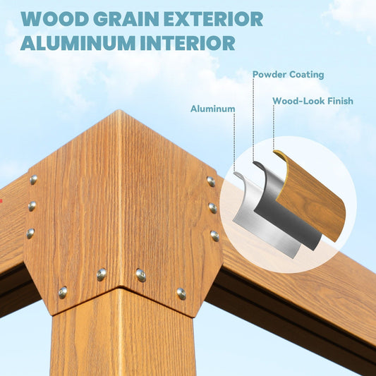 Tonnelle à toit rigide pour jardin – Pergola permanente avec filet, rideaux et double toit, abri extérieur toutes saisons