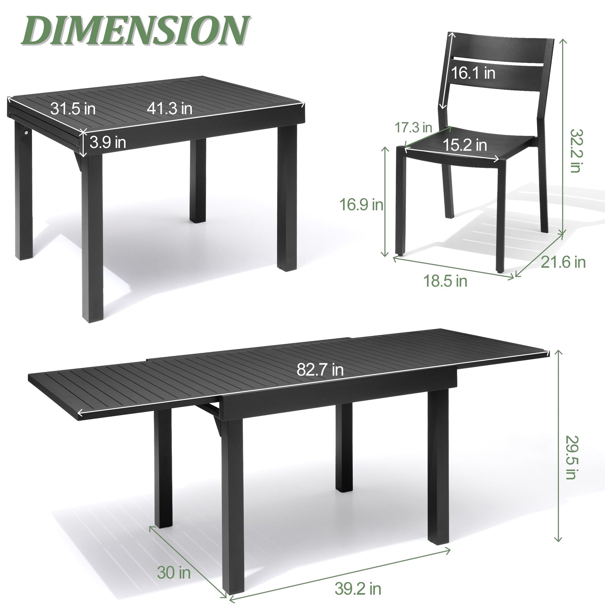 Pellebant 5/7/9-piece Aluminum Outdoor Dining Set Expandable Table and Stackable Chairs