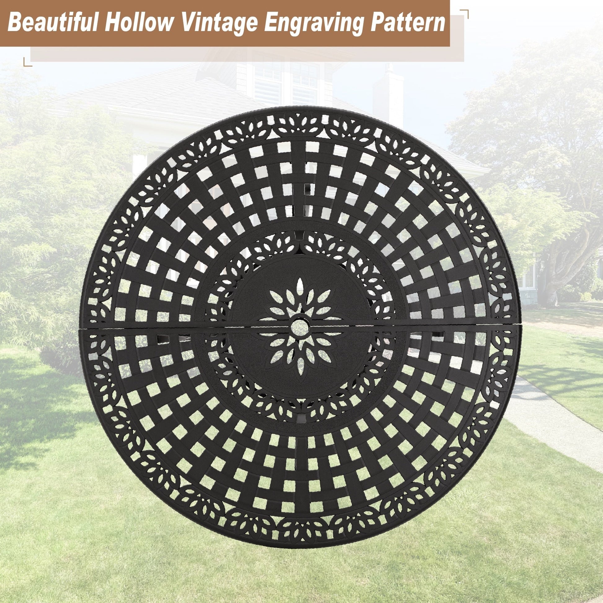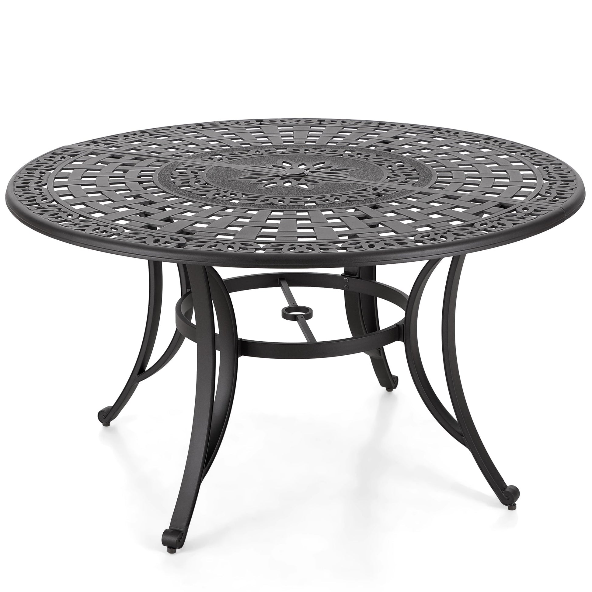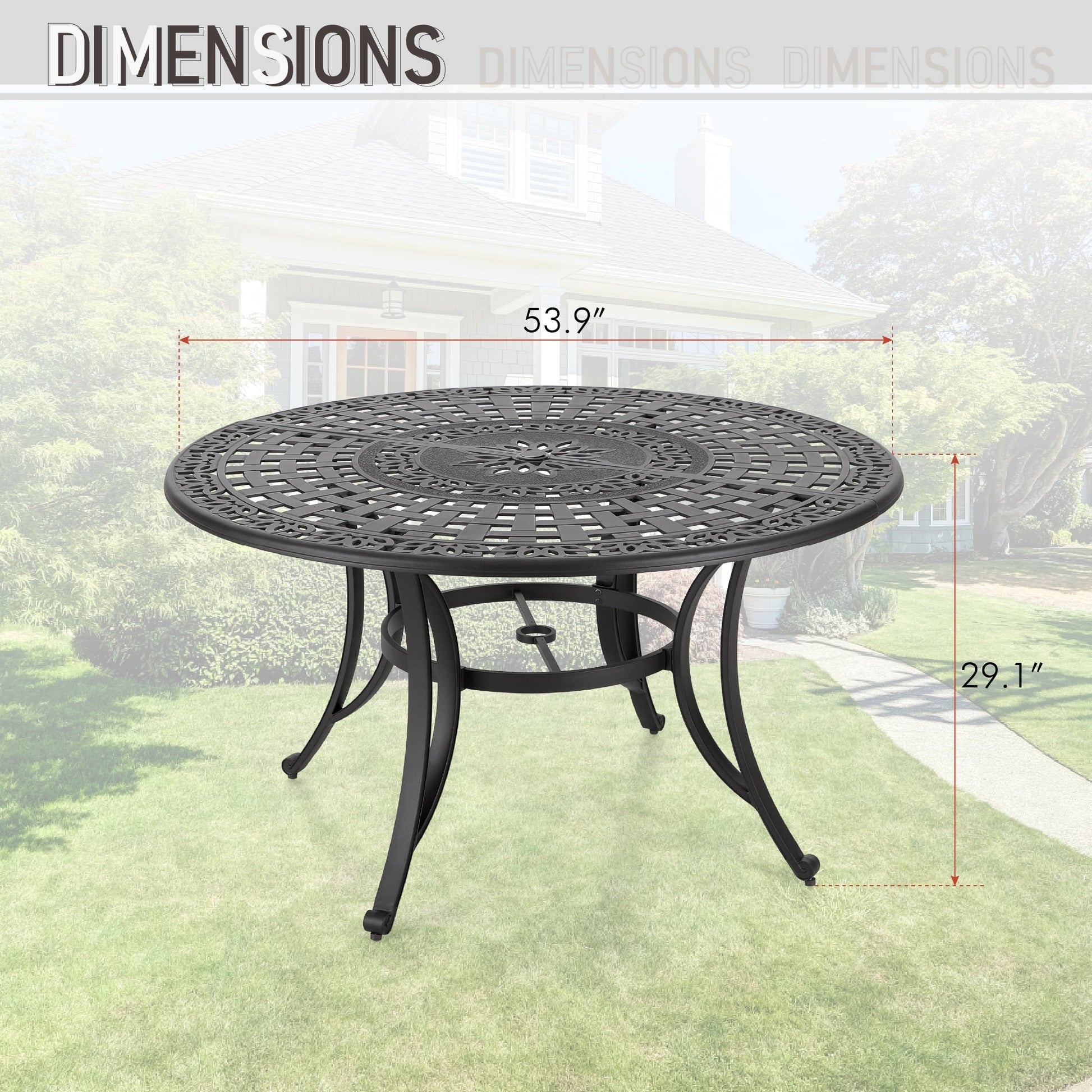 • Trou de parasol de 2,17 pouces au milieu de la table, qui peut s'adapter à la plupart des parasols d'extérieur