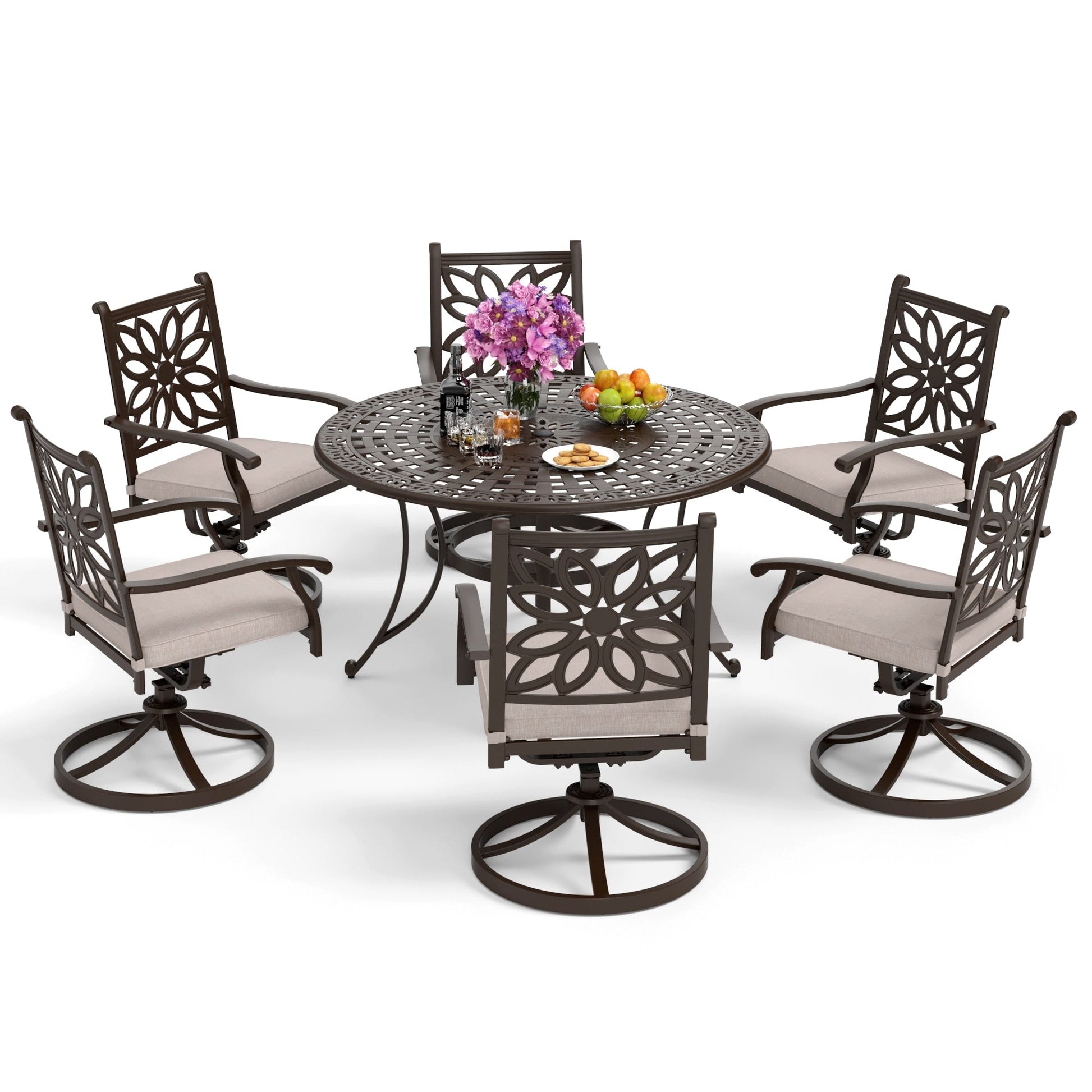 Ensemble de salle à manger/salle à manger de patio en aluminium moulé MAISON ARTS avec table à manger ronde et 6 chaises de patio en aluminium moulé
