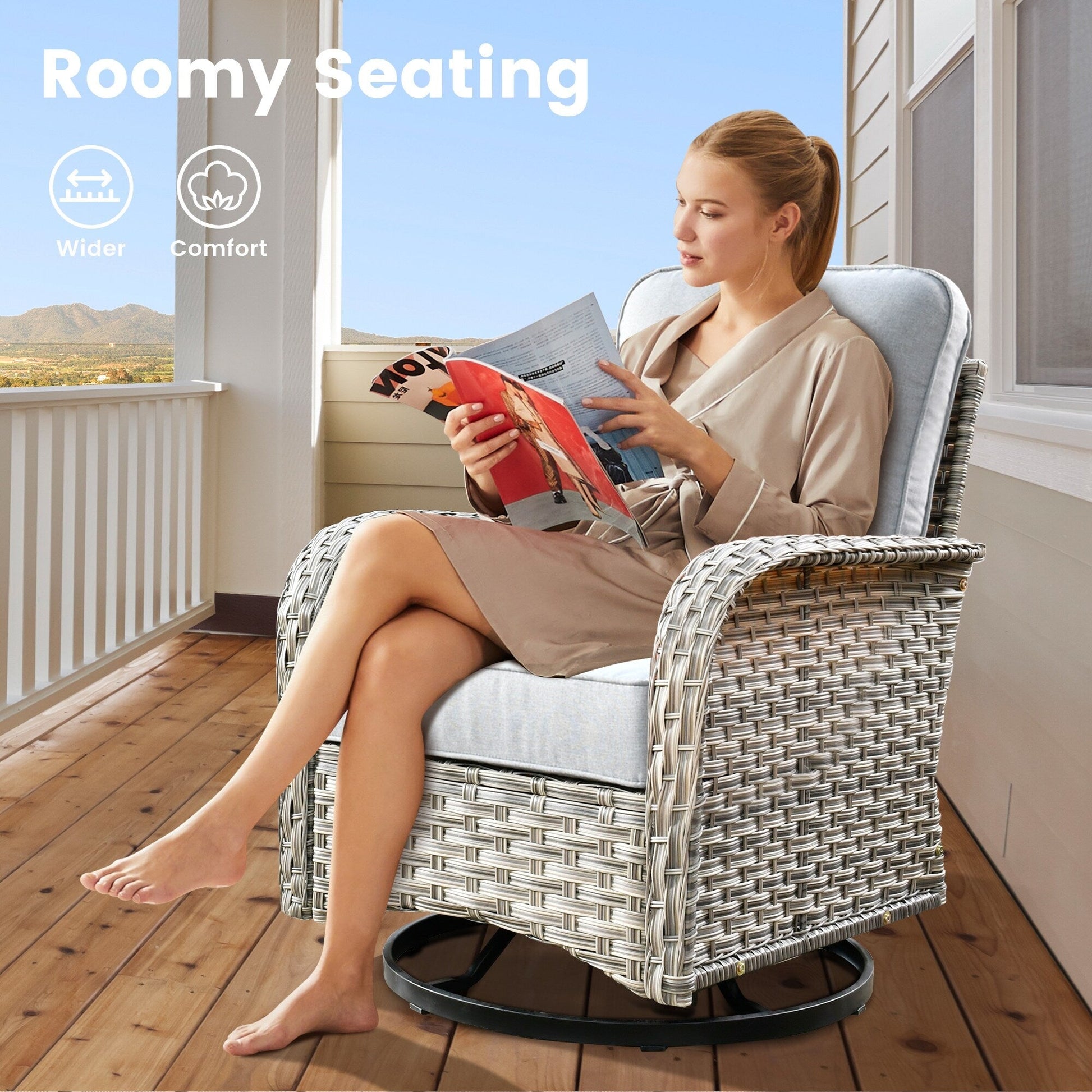OVIOS 9 Pieces Outdoor Wicker Swivel Chair Set With Fire Table