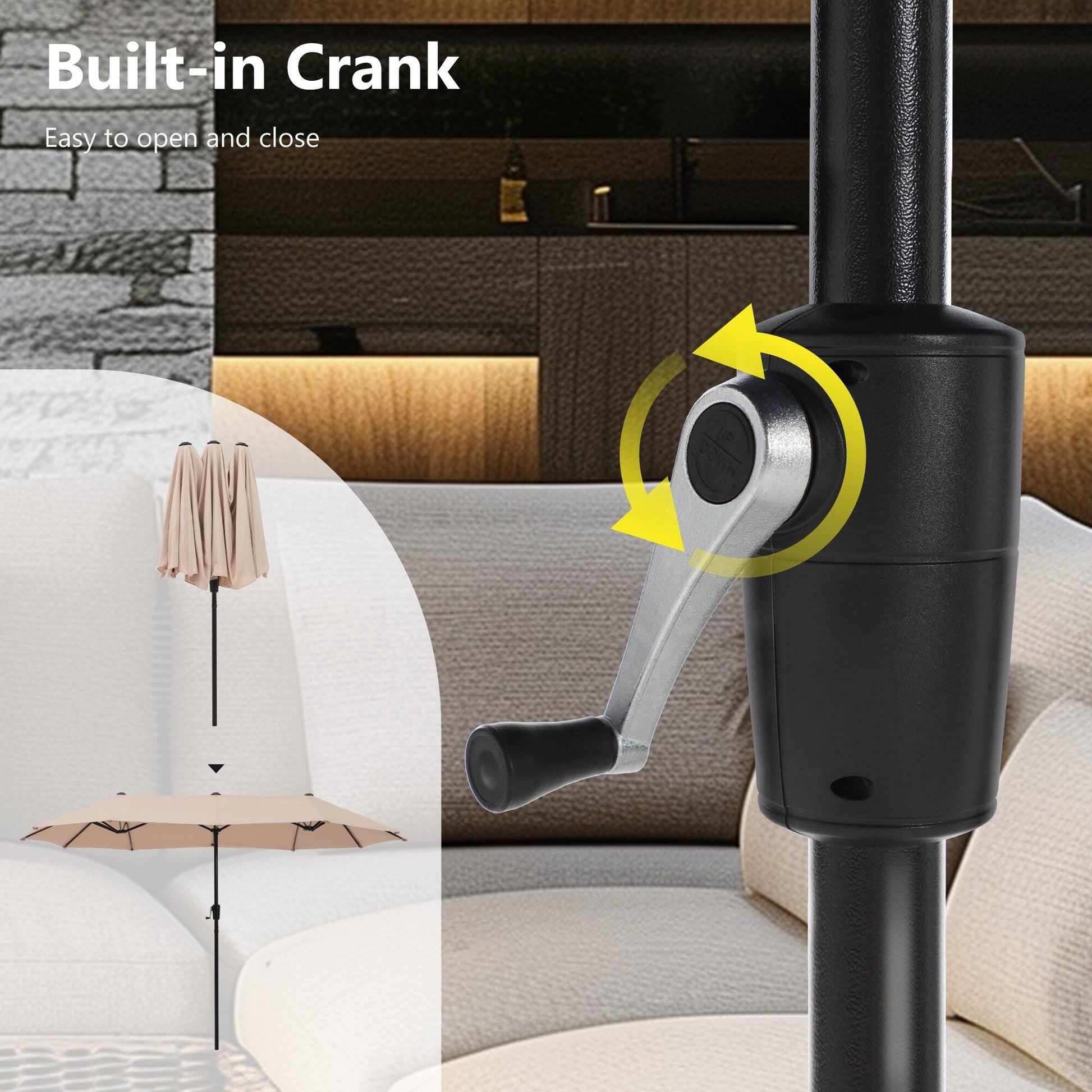 - 13ft double-sided umbrella with 180g polyester fabric canopy and 1.5' aluminum pole
